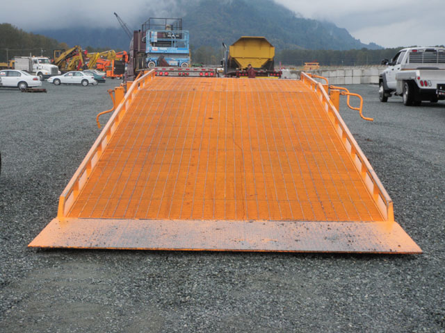 Capacity: the loading dock is portable and engineered for a maximum weight of 60,000 lbs and maximum loading width of 9'6". Anything larger must be moved on a removable gooseneck trailer.