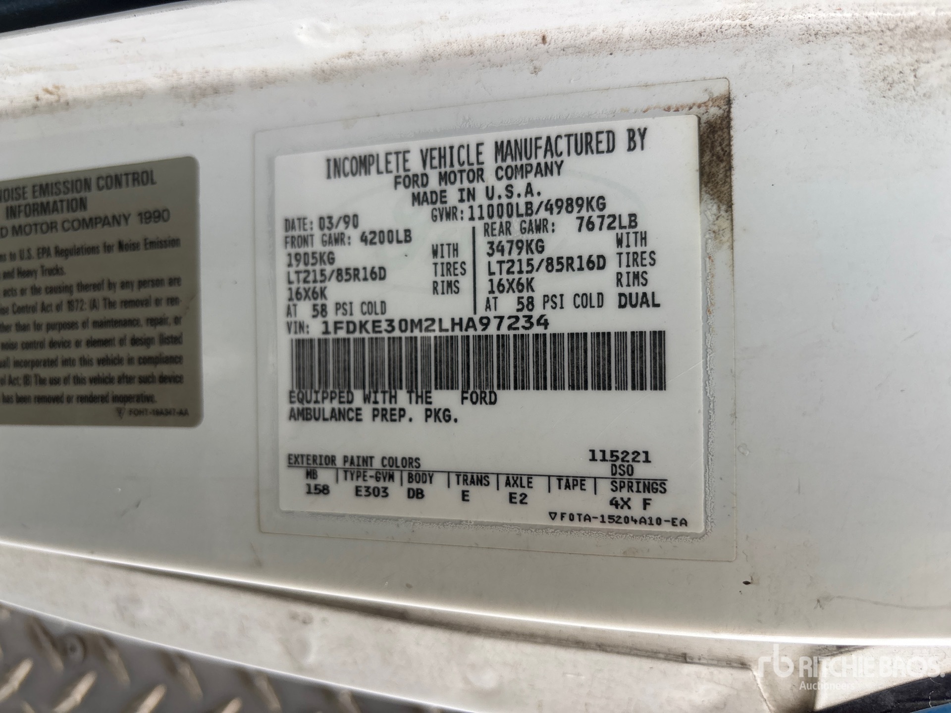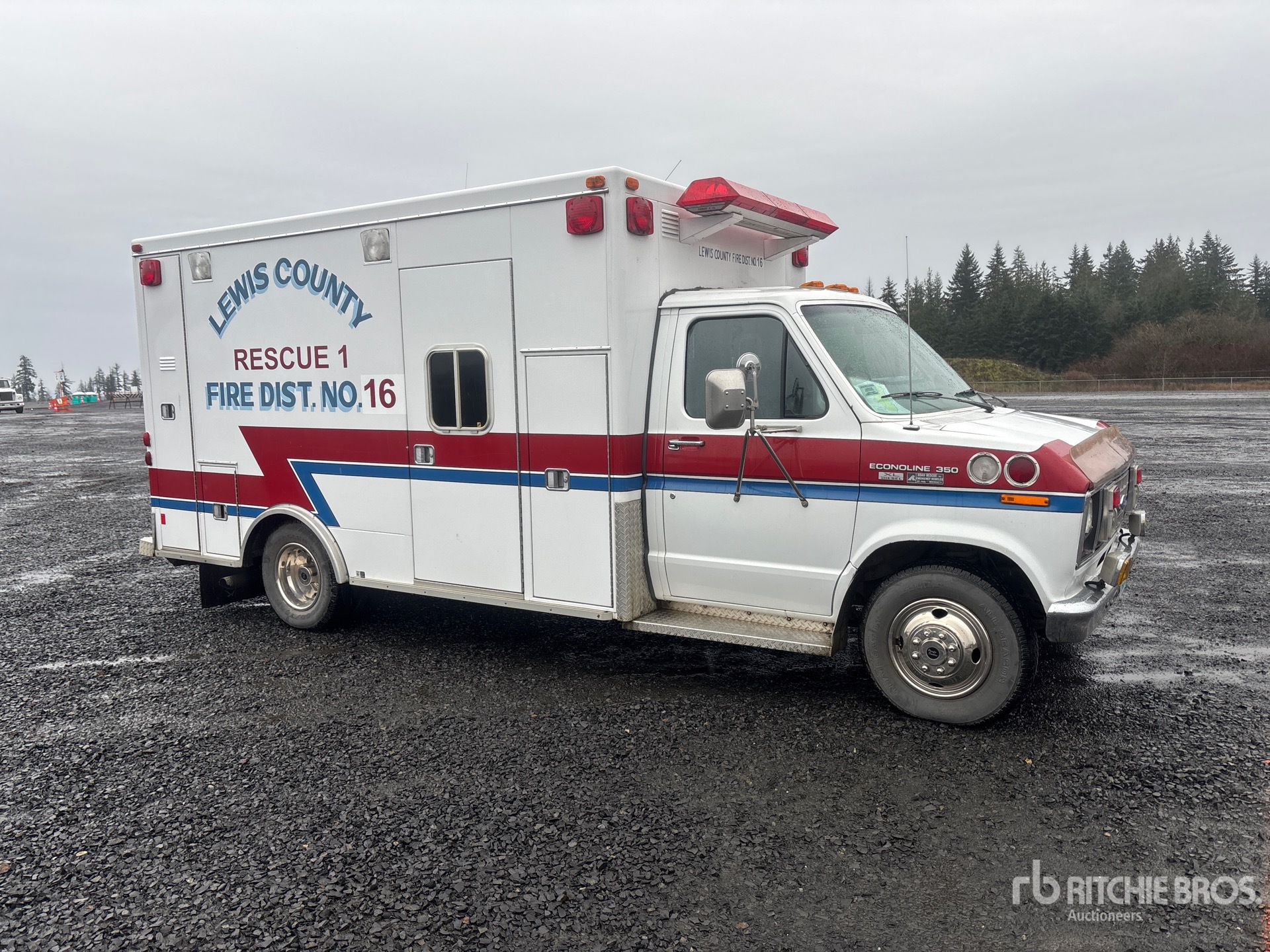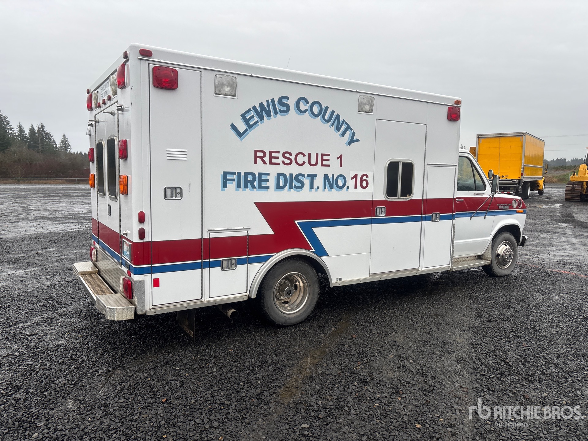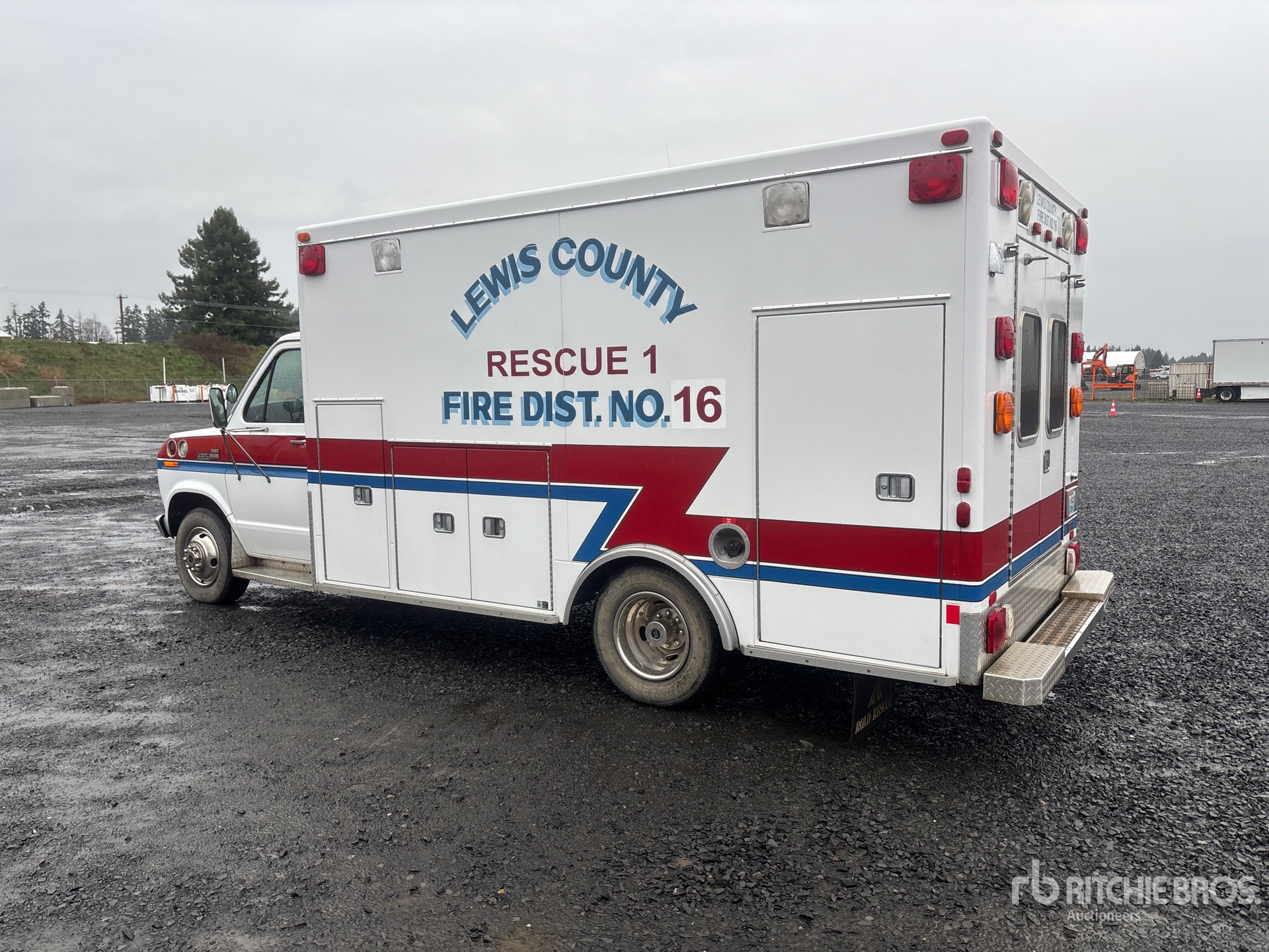 Located in Lane 17 Spot 27, Automatic Transmission, 4200 lb Front Axle, 7672 lb Rears, 11000 lb GVWR, Ford V8 7.3 L Diesel Engine, 215/85R16, Spring Suspension, 158 in Wheelbase, Road Rescue 13 ft 6 in Body