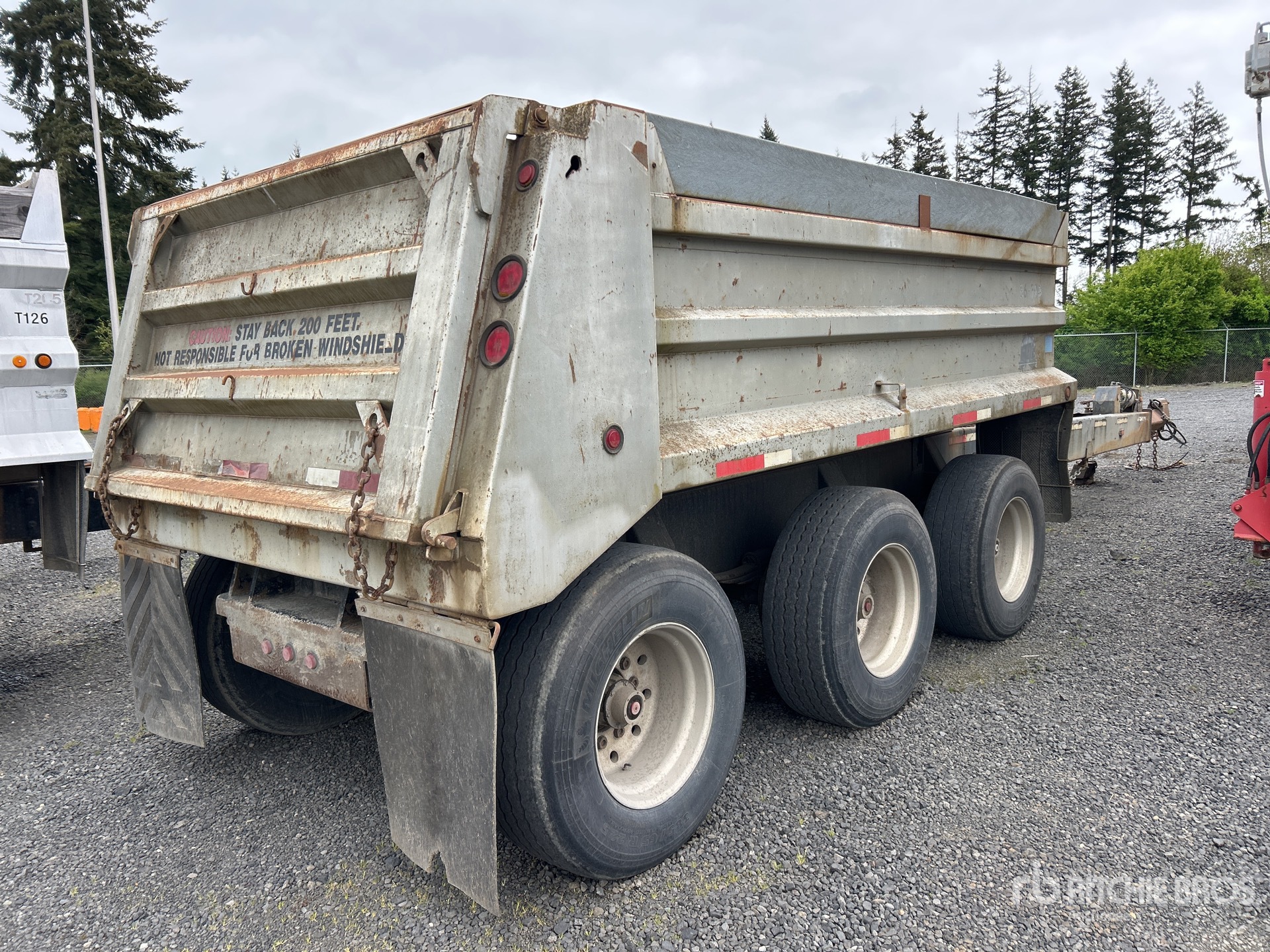 Lunette Ring Hitch, Spring Suspension, 15 ft 4 in Body, 36 in Side Walls, Steel Body, Aluminum Wheels, 385/65R22.5 Super Single Tires, 45000 lb GVWR