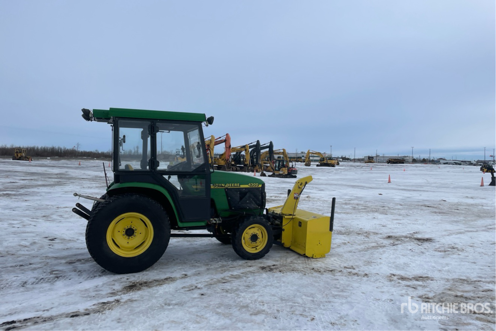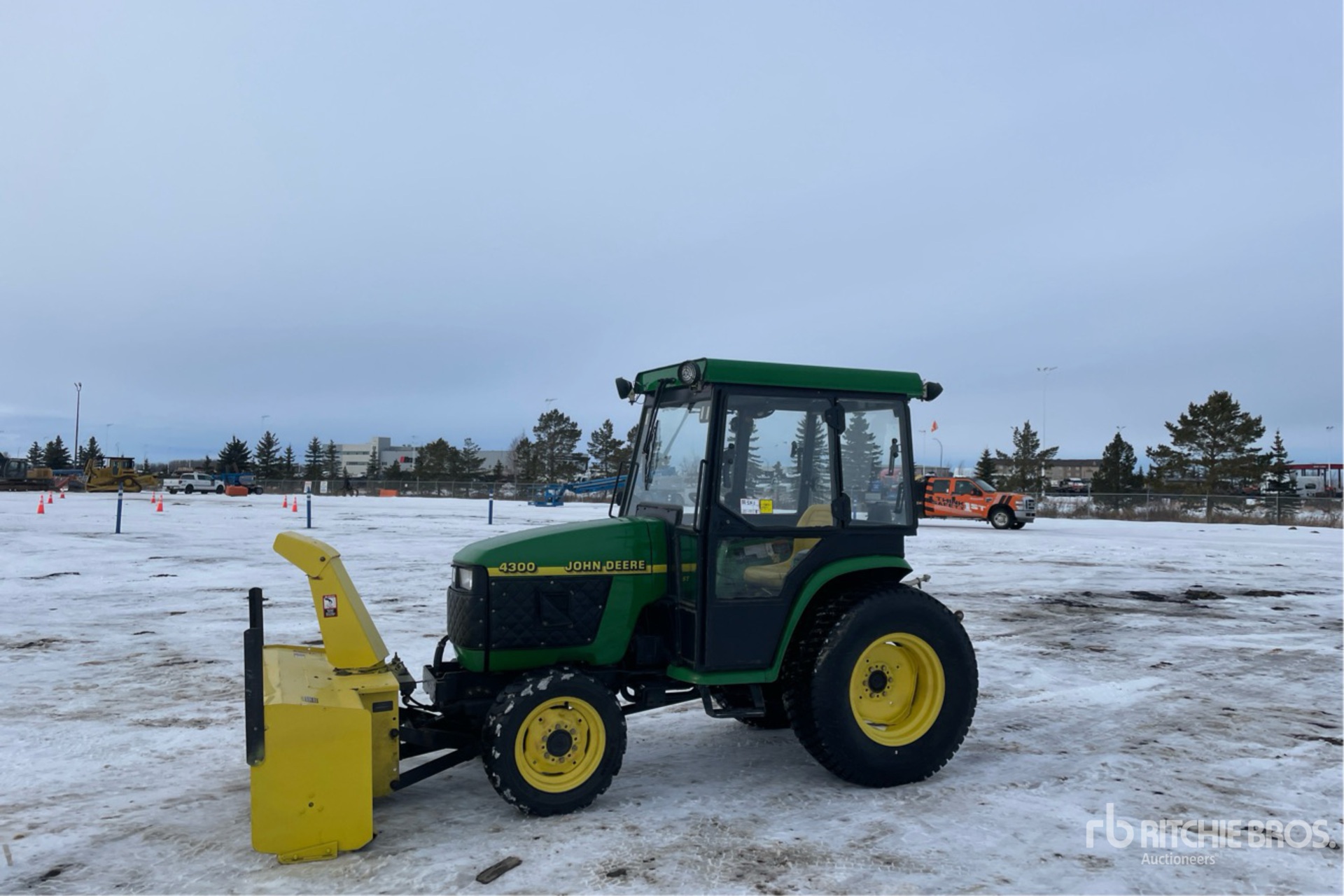 Enclosed Cab, Air Conditioner, Hydrostatic Drive, John Deere Snow Blower, 540 PTO, 3-Point Hitch, 27x8.50-15 Front Tires, 41x14.00-20 Rear Tires