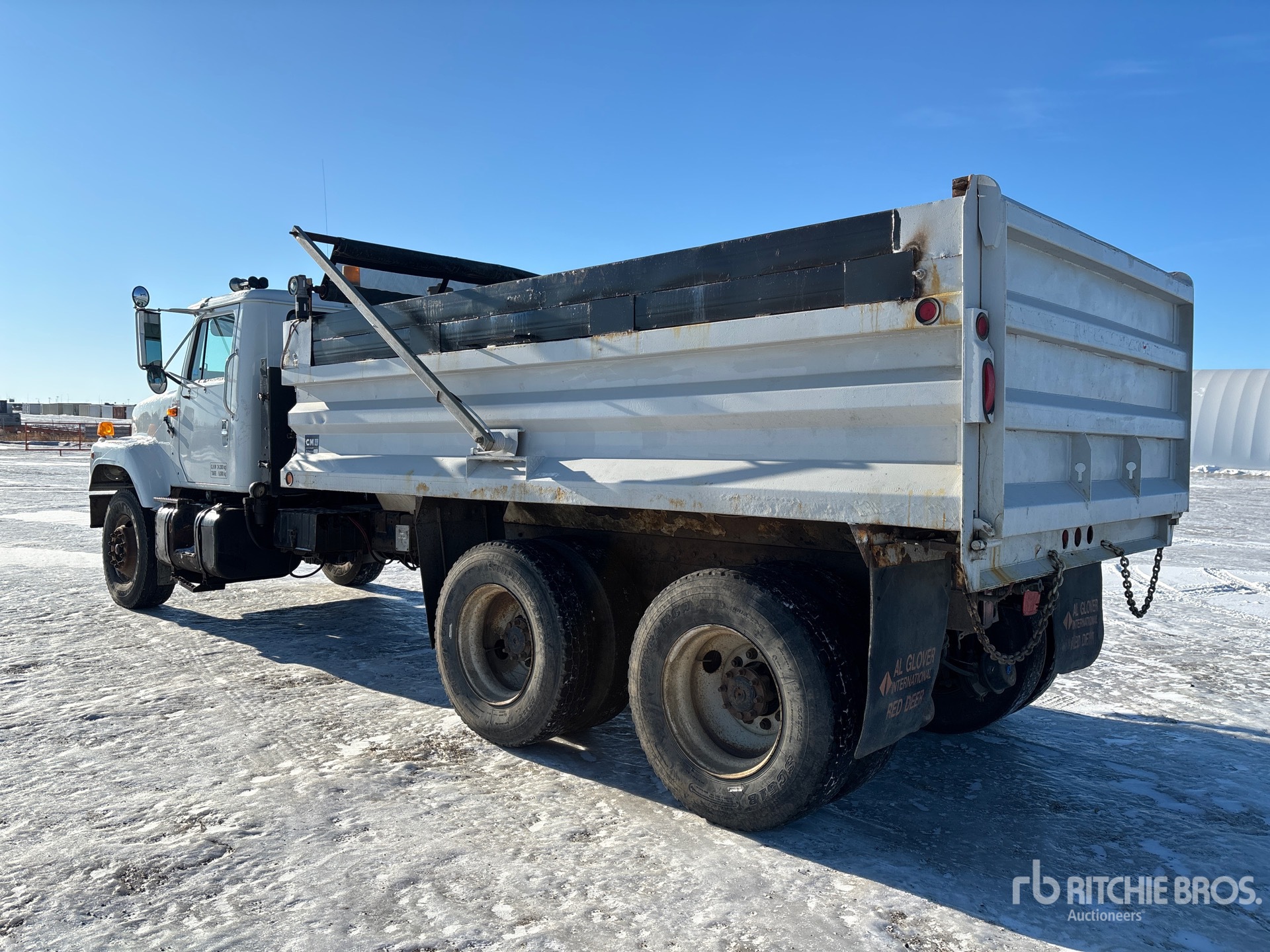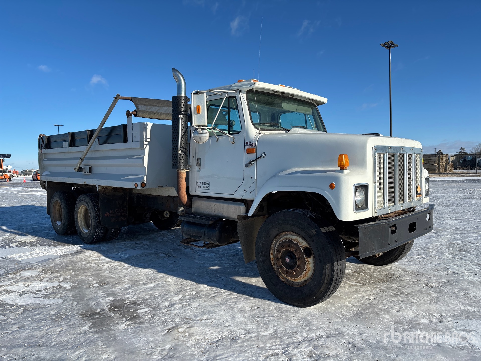 International DT530 6 Cylinder 8.6 L Diesel Engine, Engine Brake, Allison 6-Speed Automatic Transmission, 315/80R22.5 Front Tires, 11R22.5 Rear Tires, Rubber Suspension, 228 in Wheelbase, PTO, 15 ft Long x 3 ft 6 in High Steel Body, Electric Roll Tarp, Rear Hydraulics