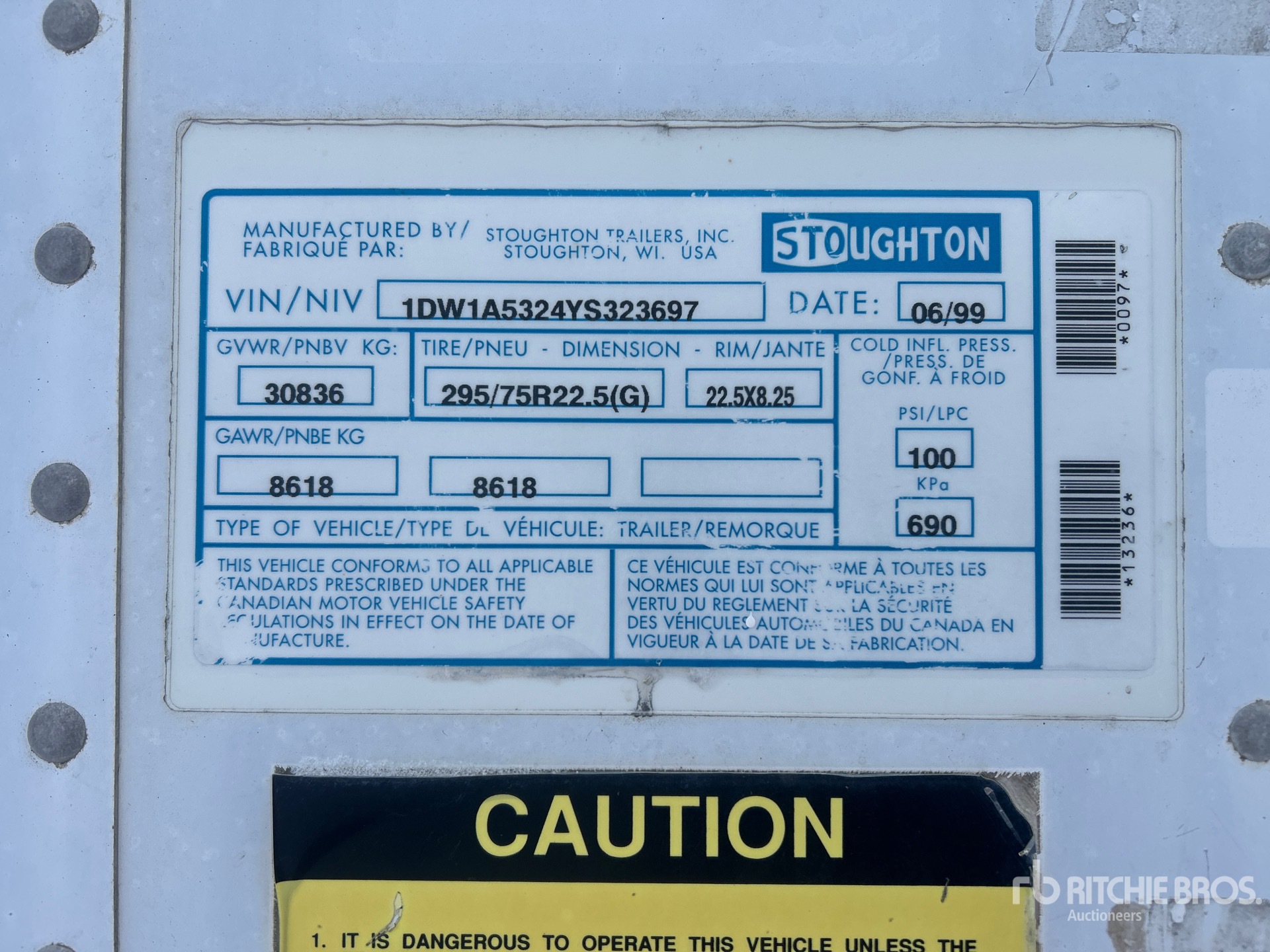 Air Ride Sliding Suspension, Hardwood Floor, Swing Door, 295/75R22.5 Tires 30836 kg GVWR