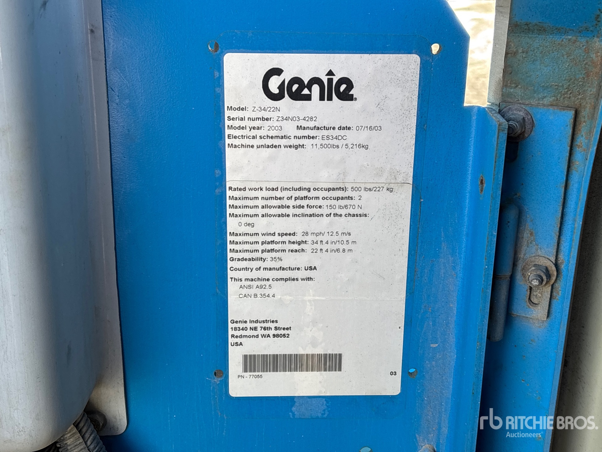 34 ft 4 in Max Platform Height, 500 lb Max Weight Capacity, Jib, Power to Platform, 22 x 7 x 17 3/4 Tires