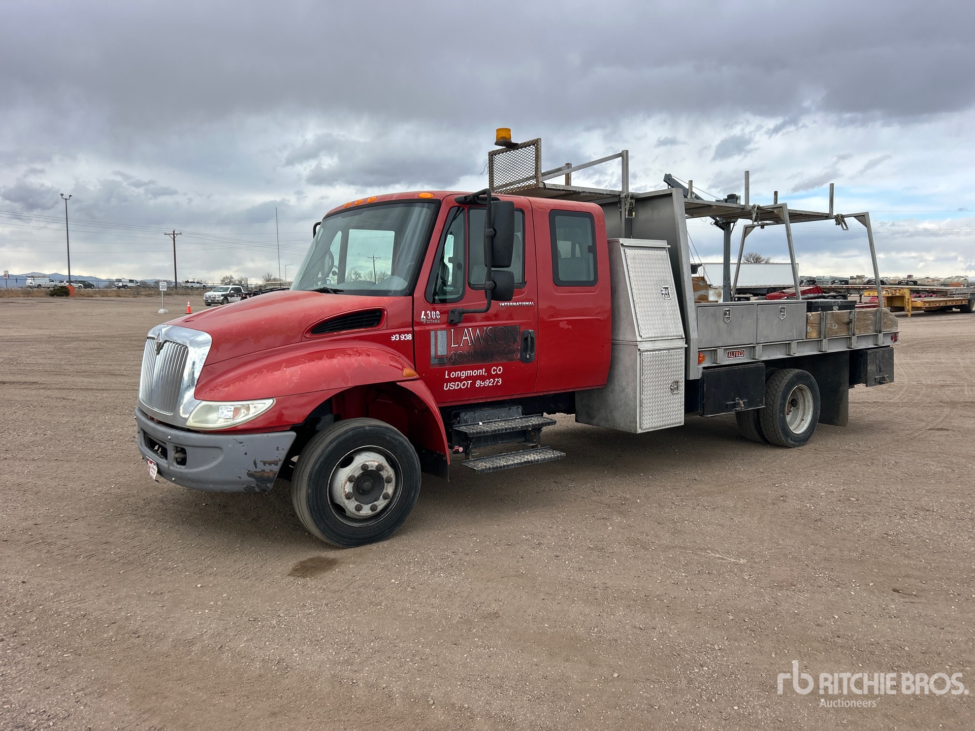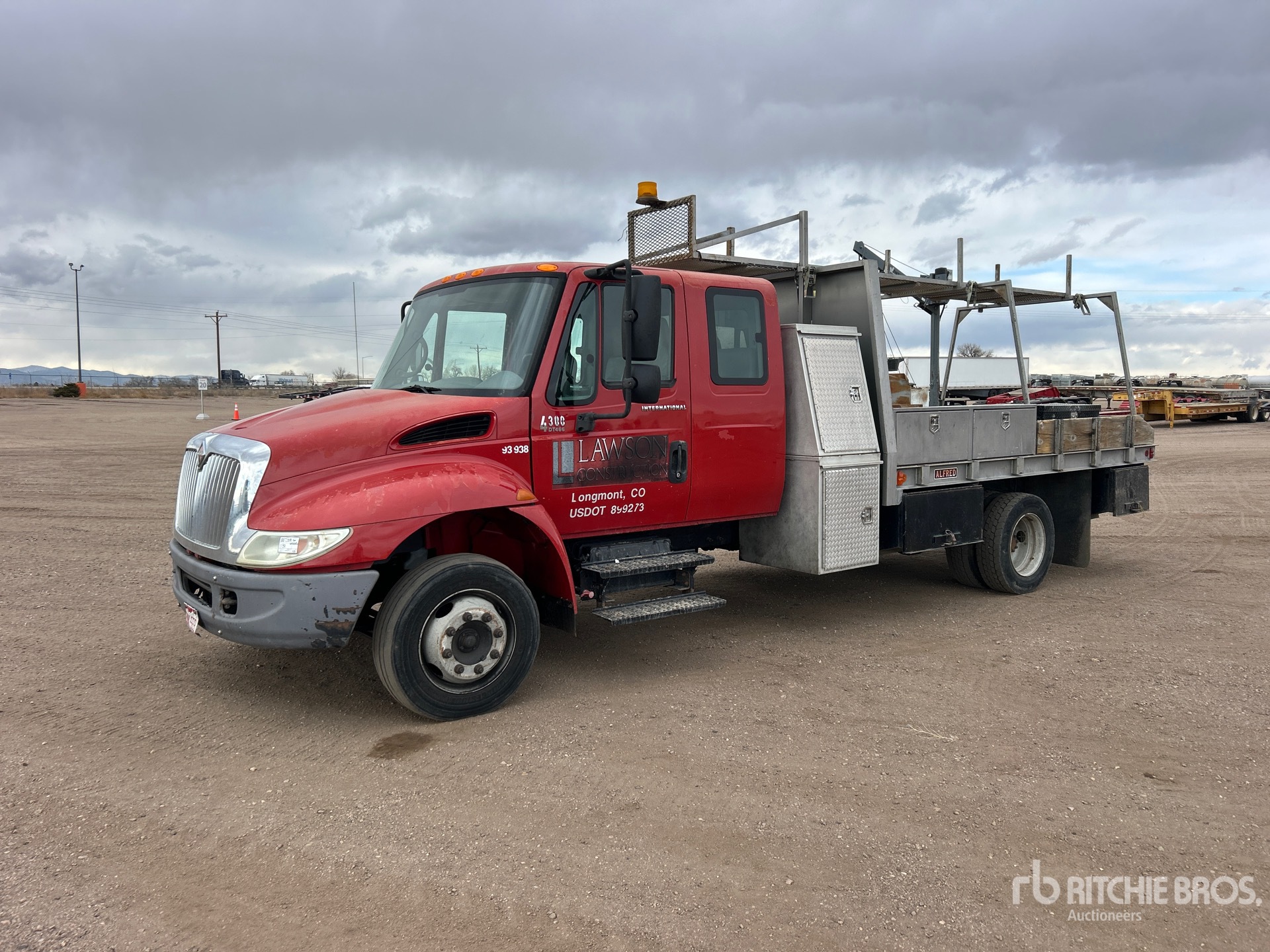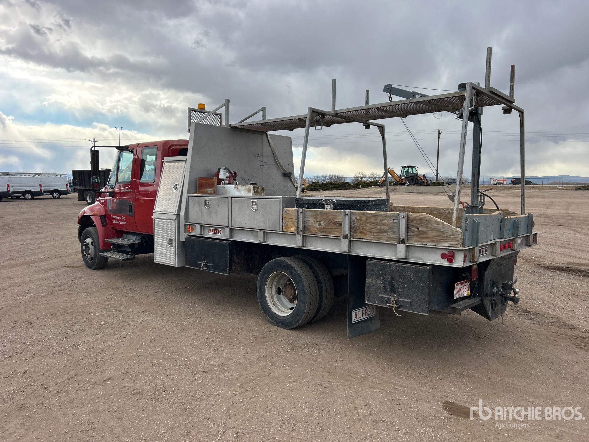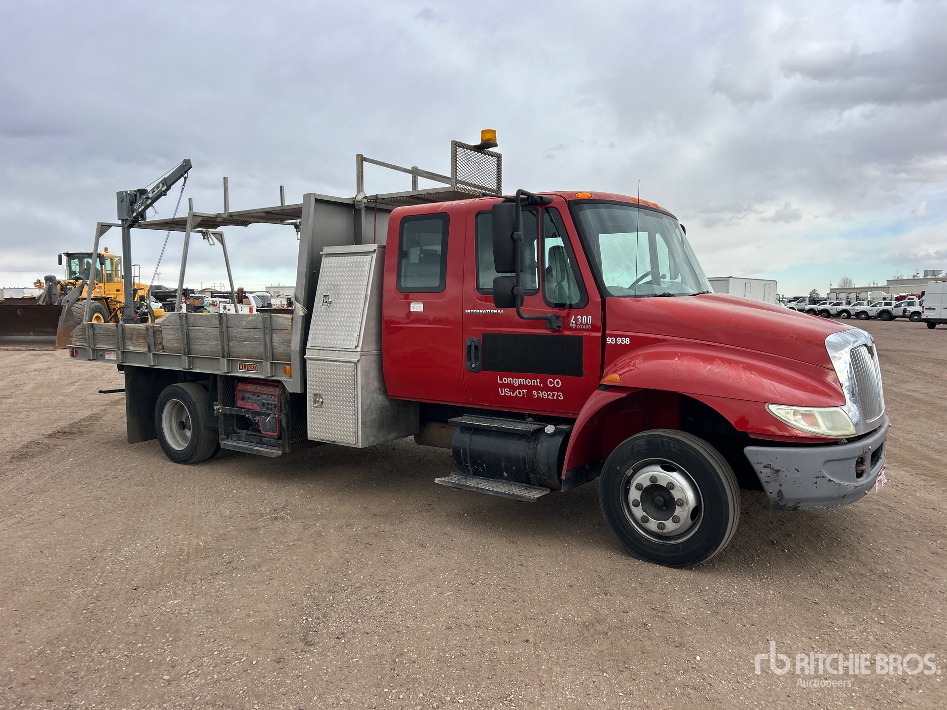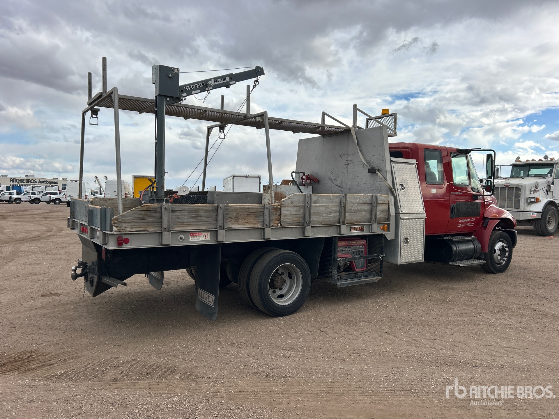 Located in Lane 14 Spot 7, International DT466 6 Cylinder 7.6 L Diesel Engine, 6034 Engine hrs, Eaton Fuller Manual Transmission, 245/70R19.5, Spring Suspension, 198 in Wheelbase, Venturo CT2003FB 2000 lb 2 Section Electric Crane, 12 ft 0 in x 96 in Bed, Delta Consolidated 57 Fuel Tank /w Pump, Pintle Hitch