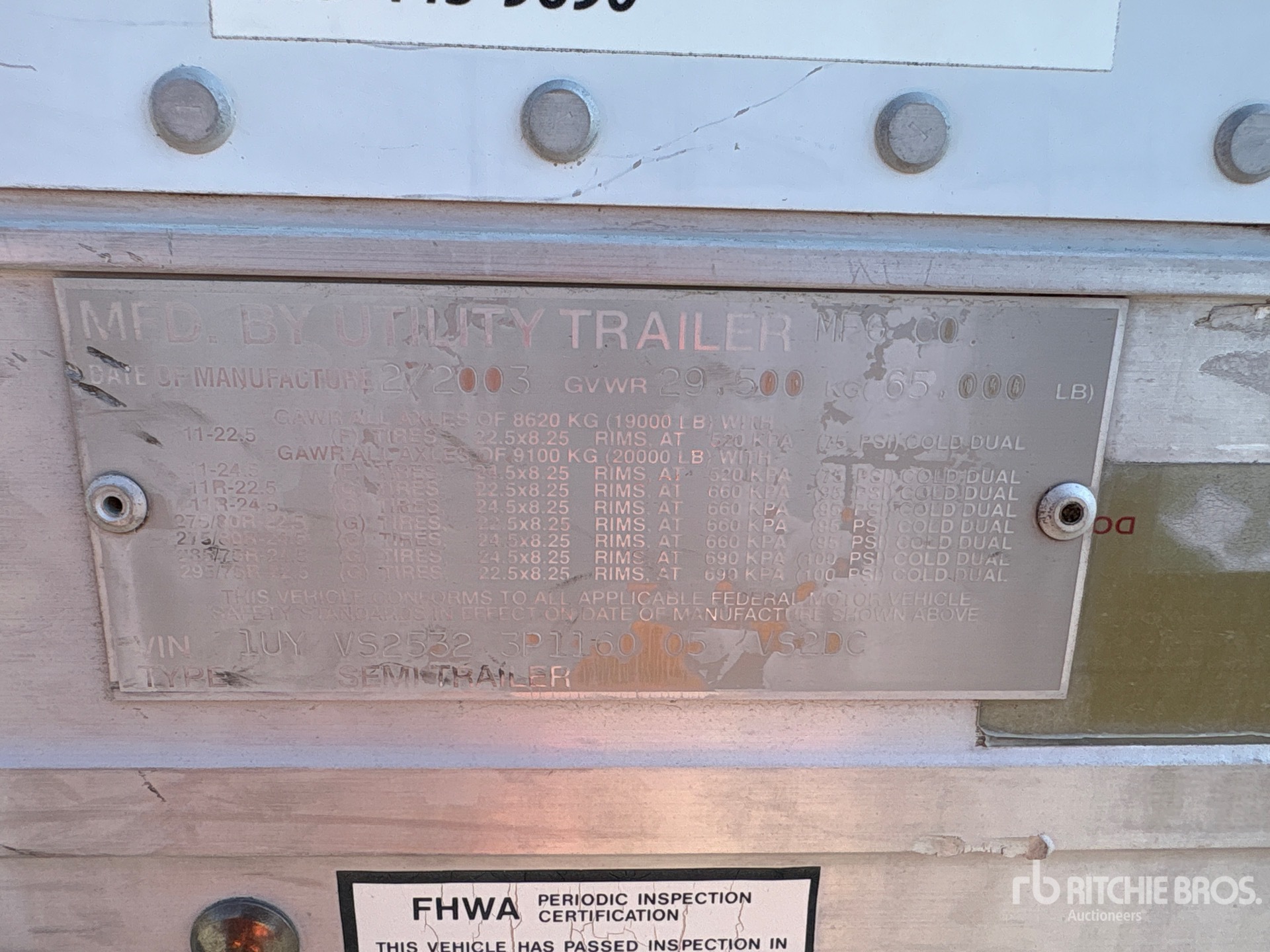 Located in Lane 15 Spot 3, Aluminum/Steel Combination Frame, Air Ride Sliding Suspension, Hardwood Floor, Swing Door, 295/75R22.5 Tires 65000 lb GVWR