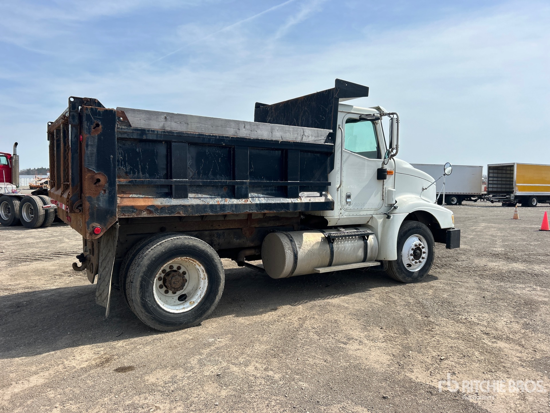 Cat C-12 6 Cylinder 11.9 L Diesel 425 hp Engine, 2003 US EPA Label, 19420 Engine hrs, Eaton Fuller 10-Speed Manual Transmission, 12000 lb Front Axle, 20000 lb Rears, 32000 lb GVWR, 275/80R22.5 Front Tires, 11R22.5 Rear Tires, Air Ride Suspension, 169 in Wheelbase, PTO, Godwin 10 ft Long x 3 ft High Steel Body, Pintle Hitch