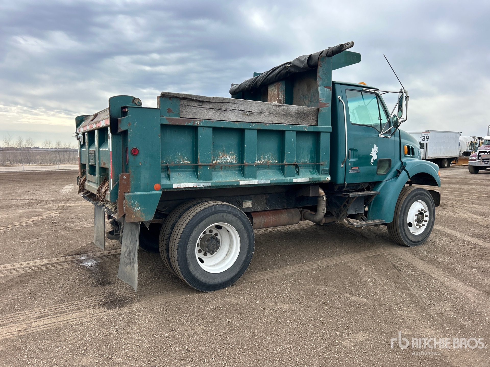 Located in Lane 9 Spot 6, Cat 6 Cylinder Diesel Engine, Eaton Fuller Manual Transmission, 12000 lb Front Axle, 21000 lb Rears, 33000 lb GVWR, 11R22.5, Spring Suspension, 154 in Wheelbase, PTO, Beau-Roc 10 ft Long x 2 ft 11 in High Steel Body, Manual Roll Tarp, Pintle Hitch