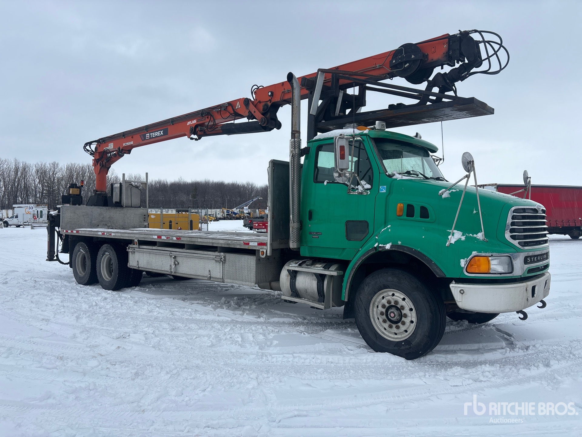 Mercedes-Benz OM460LA 6 Cylinder 12.8 L 450 hp Engine, 2006 US EPA Label, 11844 Engine hrs, Engine Brake, Eaton Fuller 18-Speed Transmission, Differential Lock, 18000 lb Front Axle, 46000 lb Rears, Air Ride Cab, Aluminum Wheels, 315/80R22.5 Front Tires, 11R22.5 Rear Tires, Dual Steering Boxes, Airliner Air Ride Suspension, 304 in Wheelbase, 21 ft - 50 ft 4 Section Boom, Out and Down Outriggers, Rear Outriggers, Cordless Remote Control, 25 ft x 96 in Bed, Aluminum Frame, Drywall Forks