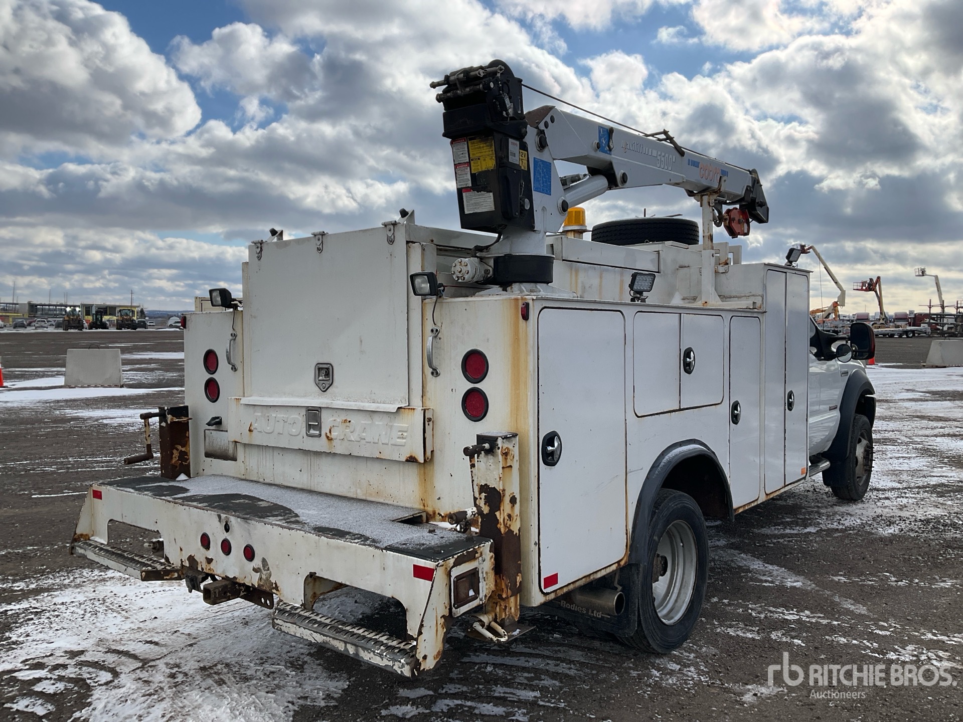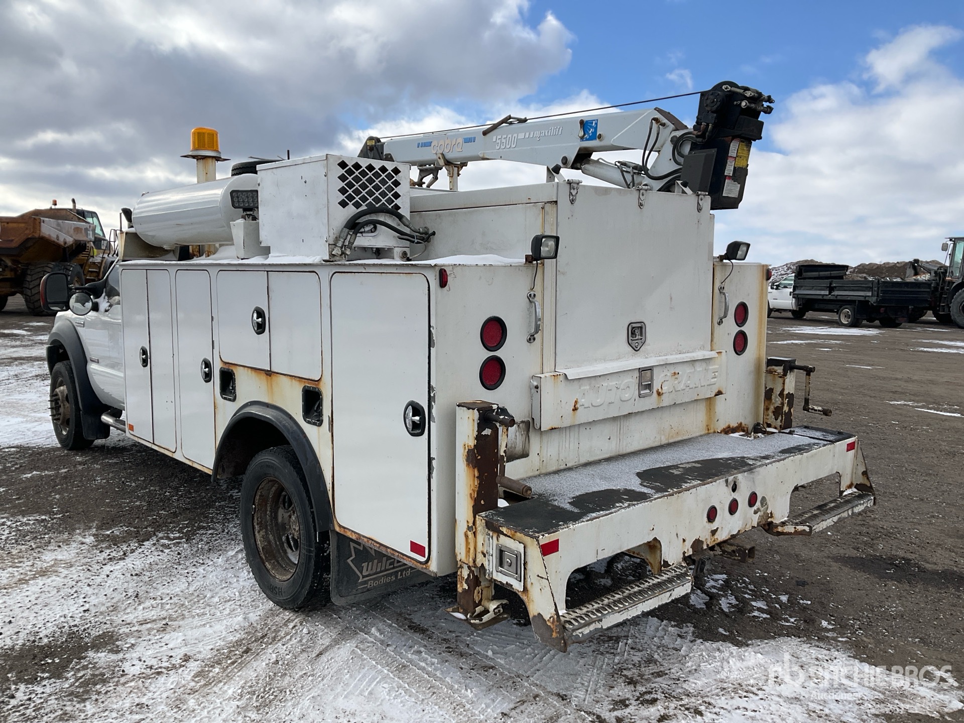 V8 Diesel Engine, Automatic Transmission, 7000 lb Front Axle, 13660 lb Rears, 19000 lb GVWR, 225/70R19.5, Spring Suspension, 165 in Wheelbase, 11 ft Body, Hydraulic Stabilizers, Cobra Maxilift 5500 5100 lb 3 Section Hydraulic Crane, Hydraulic Air Compressor