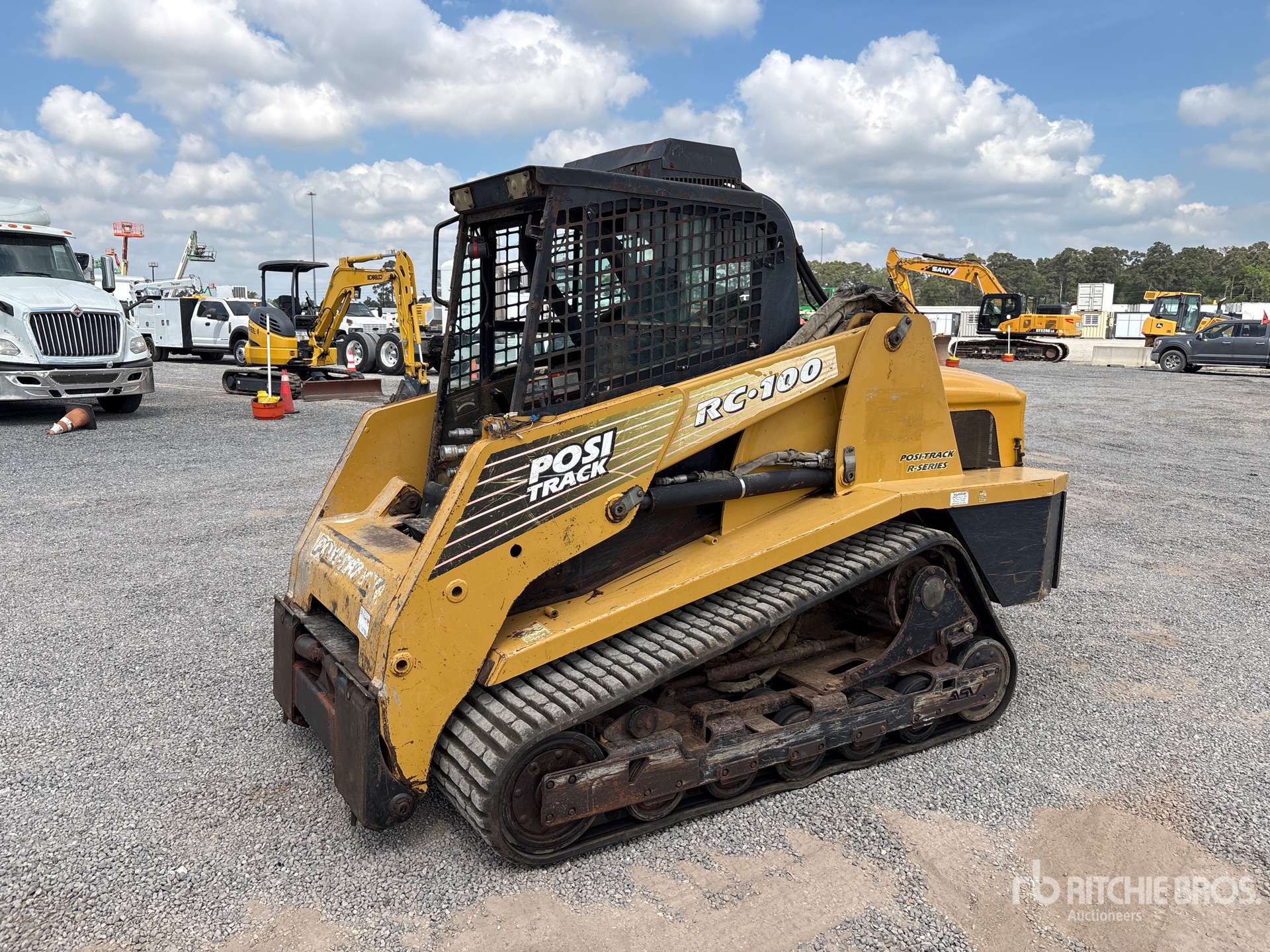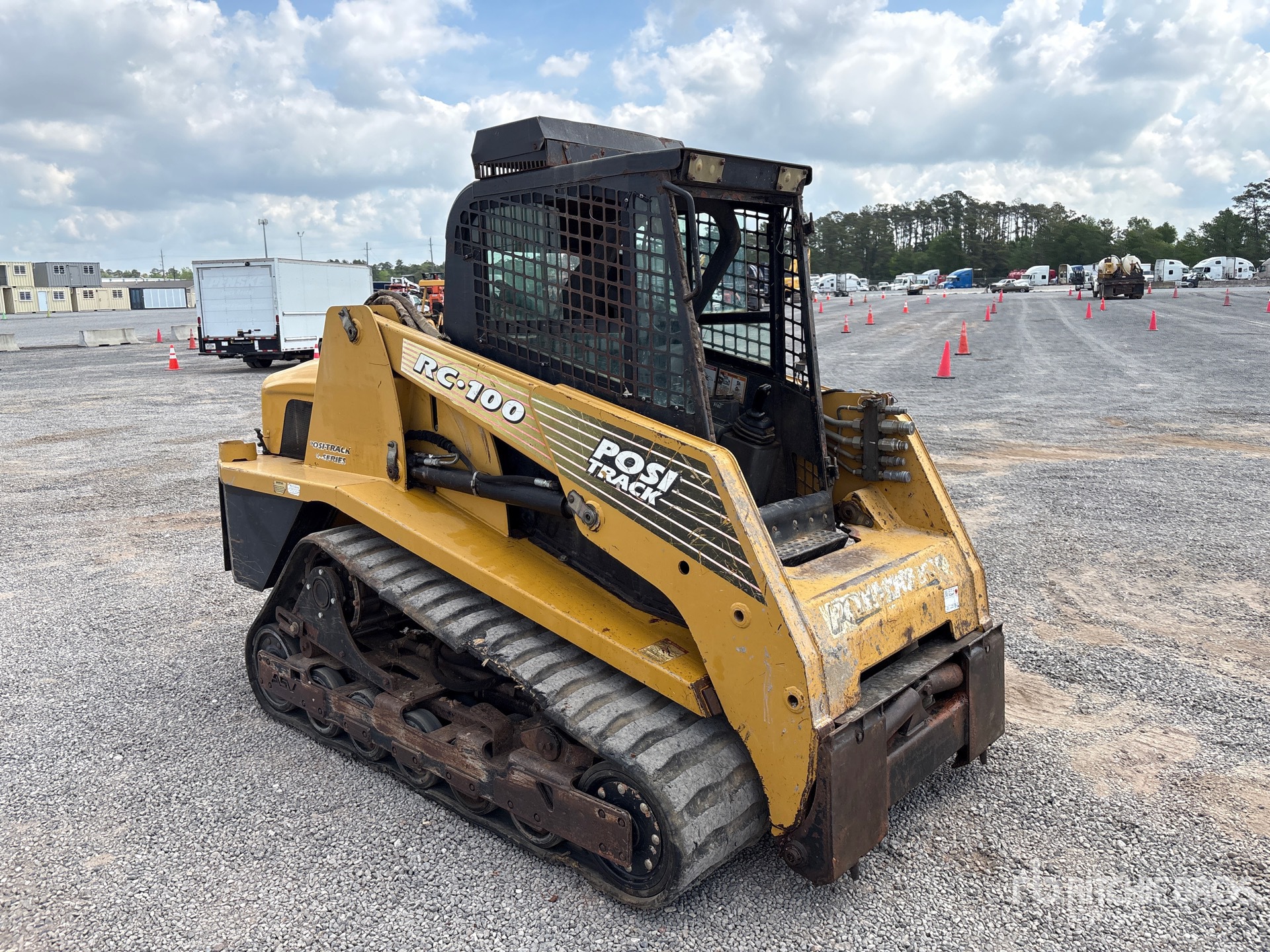 Located in Lane 5 Spot 8, Enclosed Cab (Door missing), Air Conditioner, Joystick Steering, 18 in Track Belts, 8 Pin Electric Kit