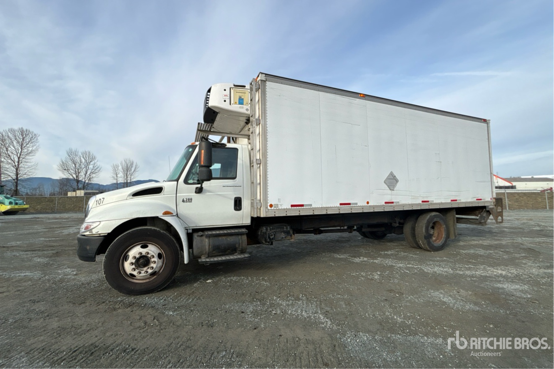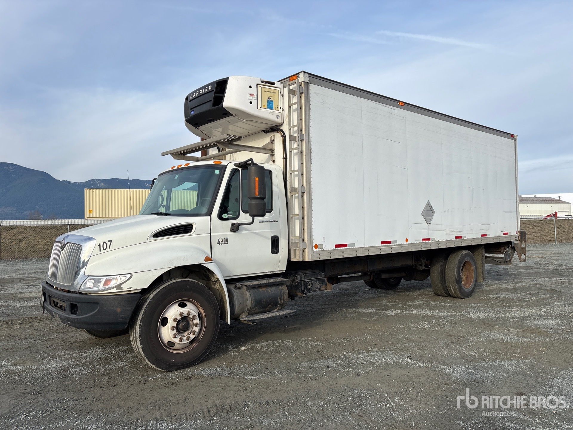 Diesel Engine, 13824 Engine hrs, Automatic Transmission, 12000 lb Front Axle, 21000 lb Rears, 33000 lb GVWR, Aluminum Wheels, 11R22.5, Spring Suspension, 260 in Wheelbase, Carrier Reefer Unit, Collins 24 ft x 102 in Wide x 102 in High Body, Liftgate