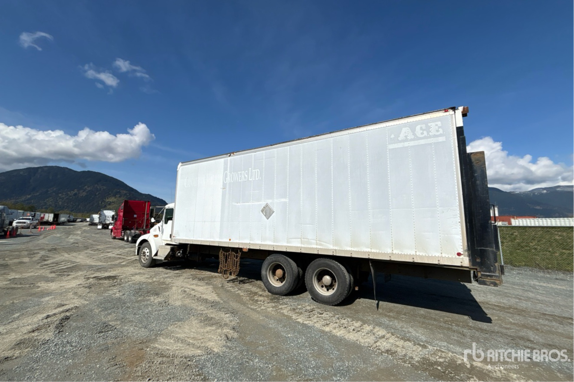 Located in Lane 11 Spot 4, Cummins 6 Cylinder 8.3 L Diesel Engine, Eaton Fuller 10-Speed Manual Transmission, Differential Lock, 4536 kg Front Axle, 18144 kg Rears, 22680 kg GVWR, 11R22.5, Air Ride Suspension, 281 in Wheelbase, Collins 28 ft x x Body, Liftgate