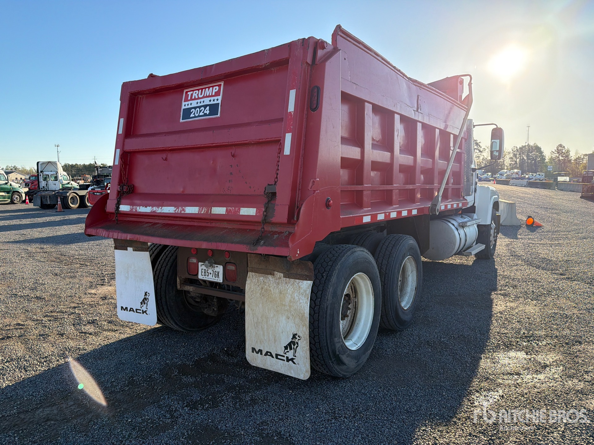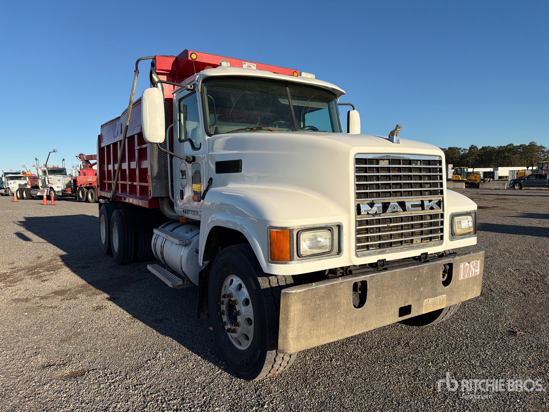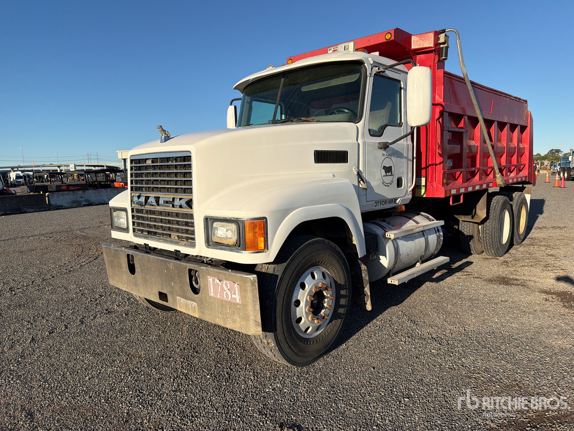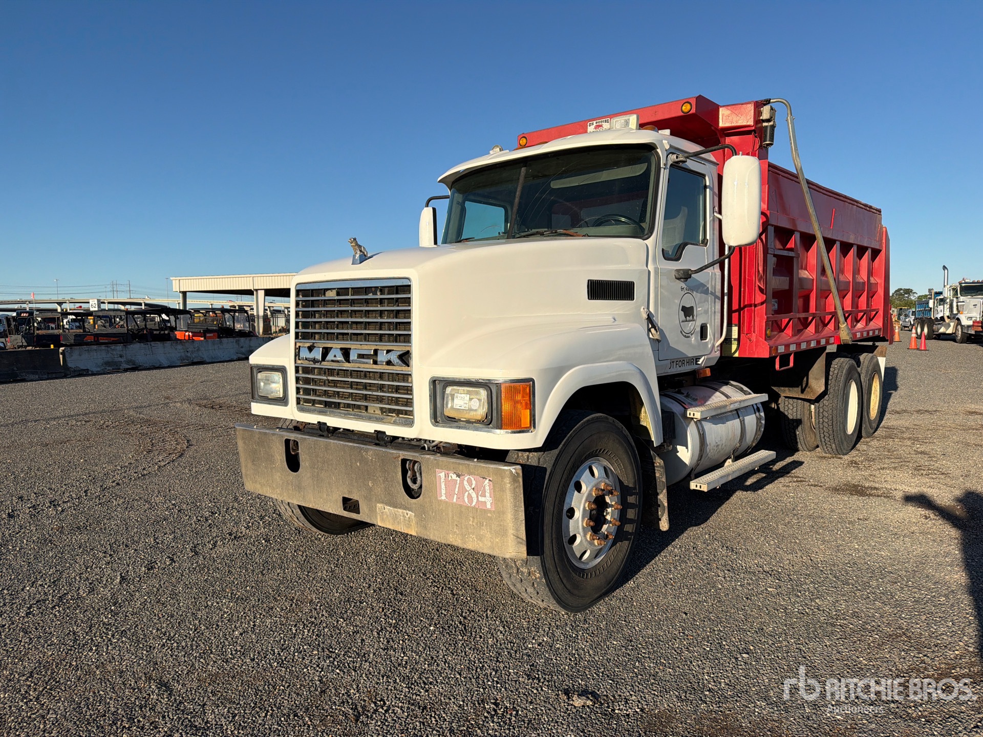 Mack 6 Cylinder Diesel Engine, 22413.0 Engine hrs, Mack 10-Speed Manual Transmission, Differential Lock, 12350 lb Front Axle, 44000 lb Rears, 56350 lb GVWR, Aluminum Front Wheels, 315/80R22.5 Front Tires, 11R22.5 Rear Tires, Spring Suspension, 230 in Wheelbase, Hydraulic System, OX Bodies 15 ft 0 in Long x 5 ft 0 in High Body, Electric Roll Tarp