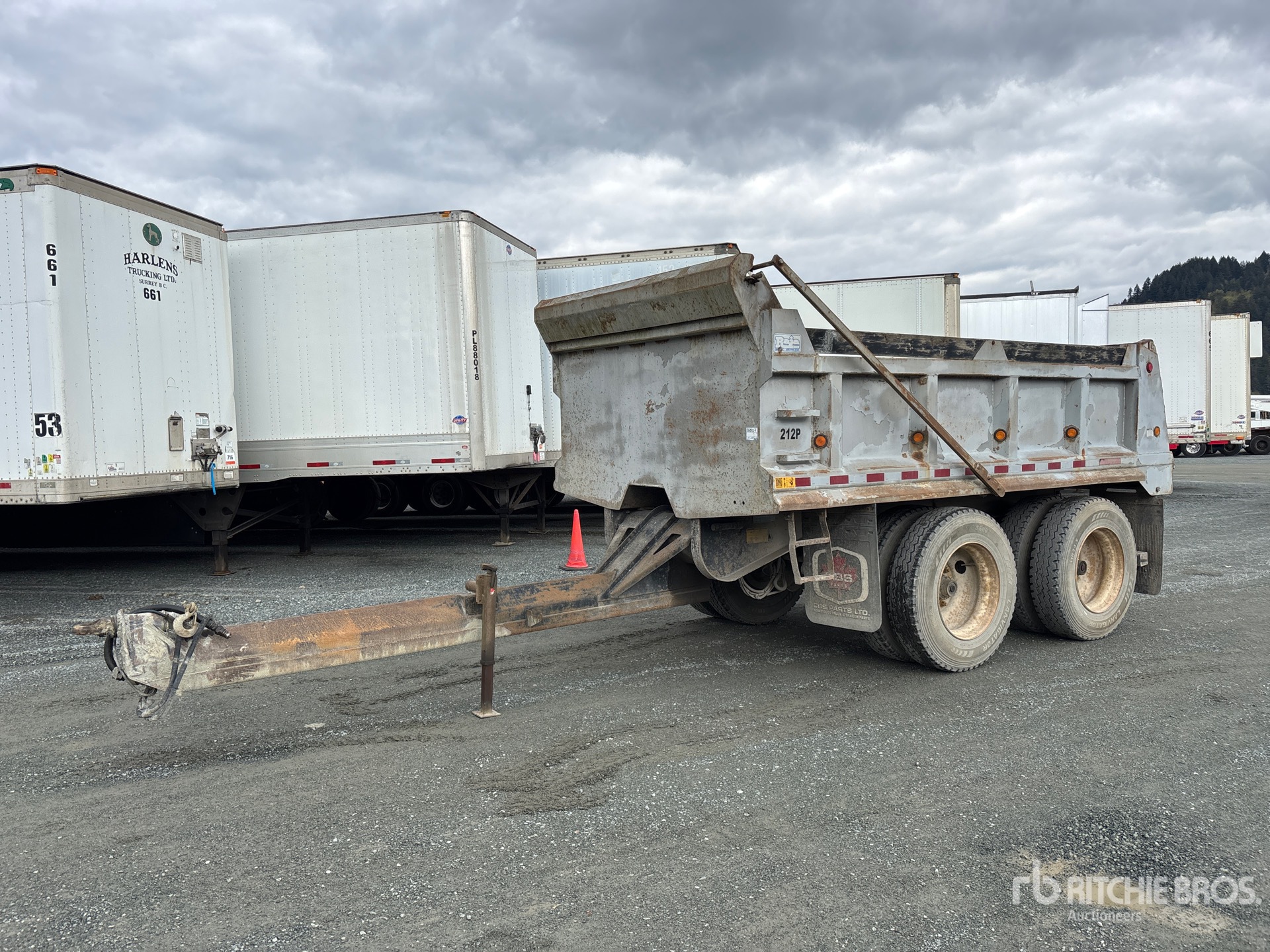 Lunette Ring Hitch, Spring Suspension, 14 ft Body, 36 in Side Walls, Steel Body, Air Powered Roll Tarp, 11R24.5 Tires, 17000 kg GVWR