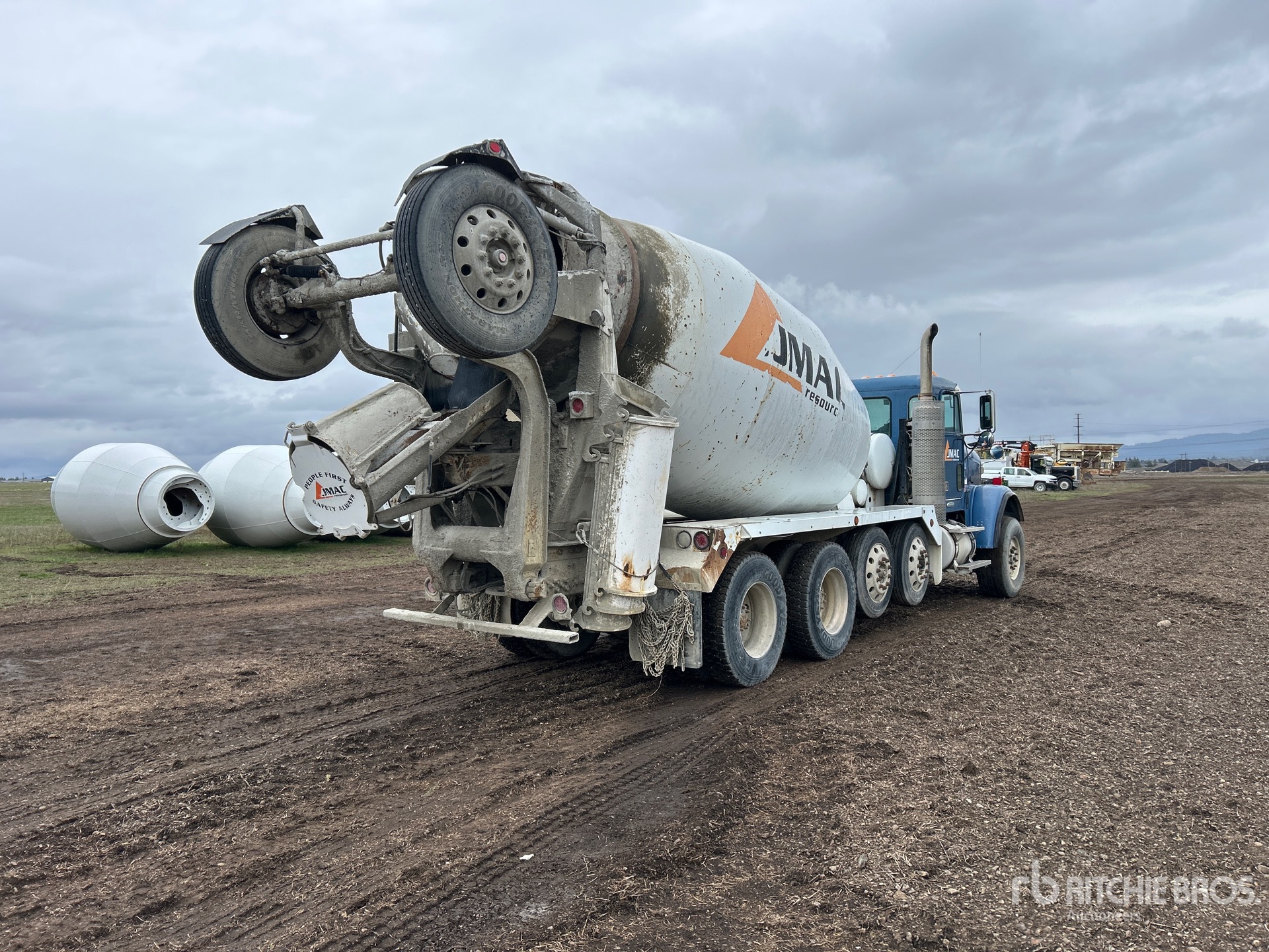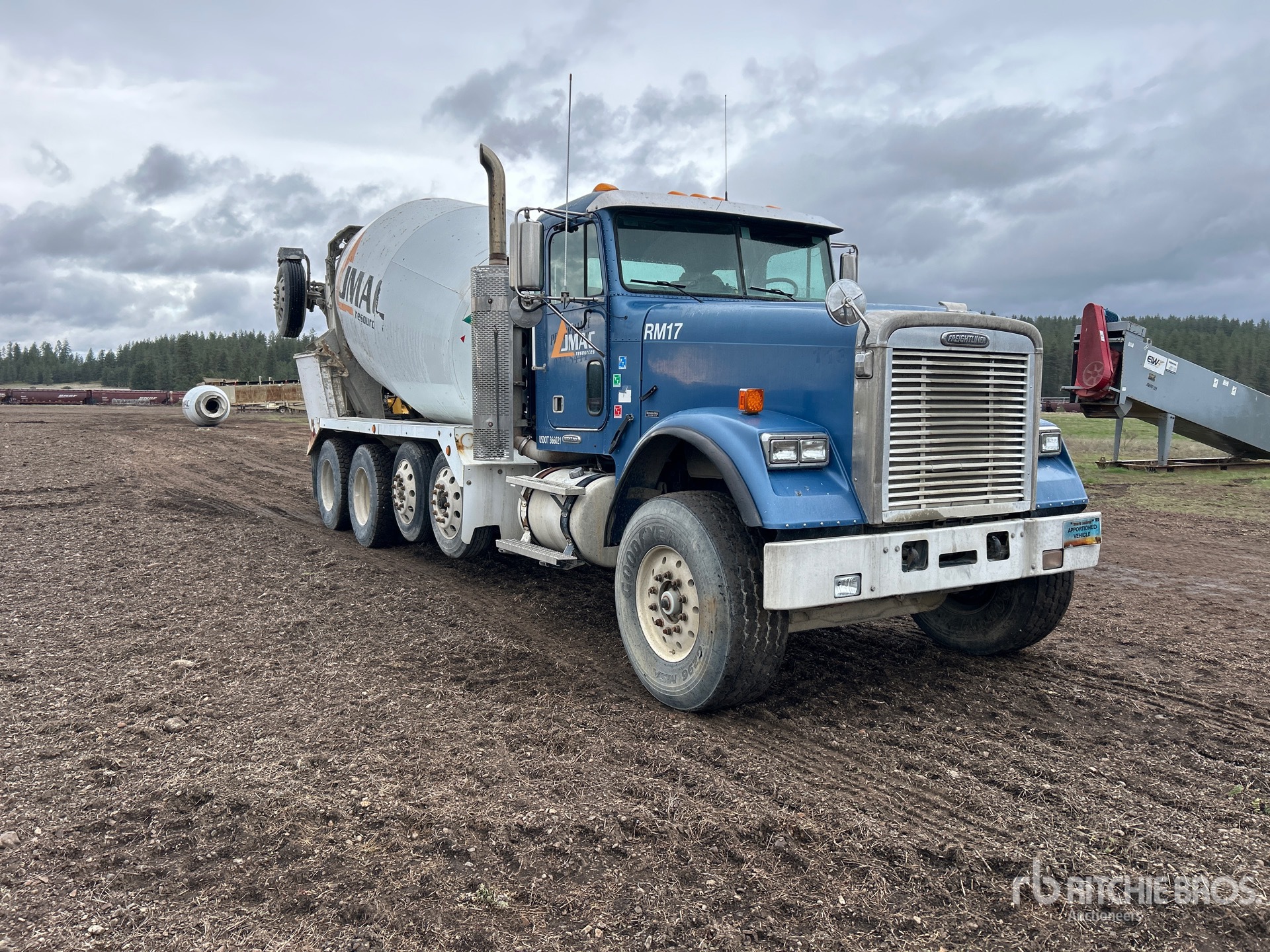 Mercedes OM 460 6 Cylinder 781 cid Diesel 458 hp Engine, 2007 US EPA Label, 8820 Engine hrs, Engine Brake, Eaton Fuller 9LL Manual Transmission, Double Differential Locks, 20000 lb Front Axle, 46000 lb Rears, 75500 lb GVWR, Aluminum Wheels, 425/65R22.5 Front Tires, 11R22.5 Rear Tires, Trailing Tag Axle, Dual Steering Boxes, Rubber over Walking Beam Suspension, 248 in Wheelbase, Stetter STM 12 12 cyd Mixer Unit, 3 Removable Chutes, Equipment-from-JMAC-Resources
