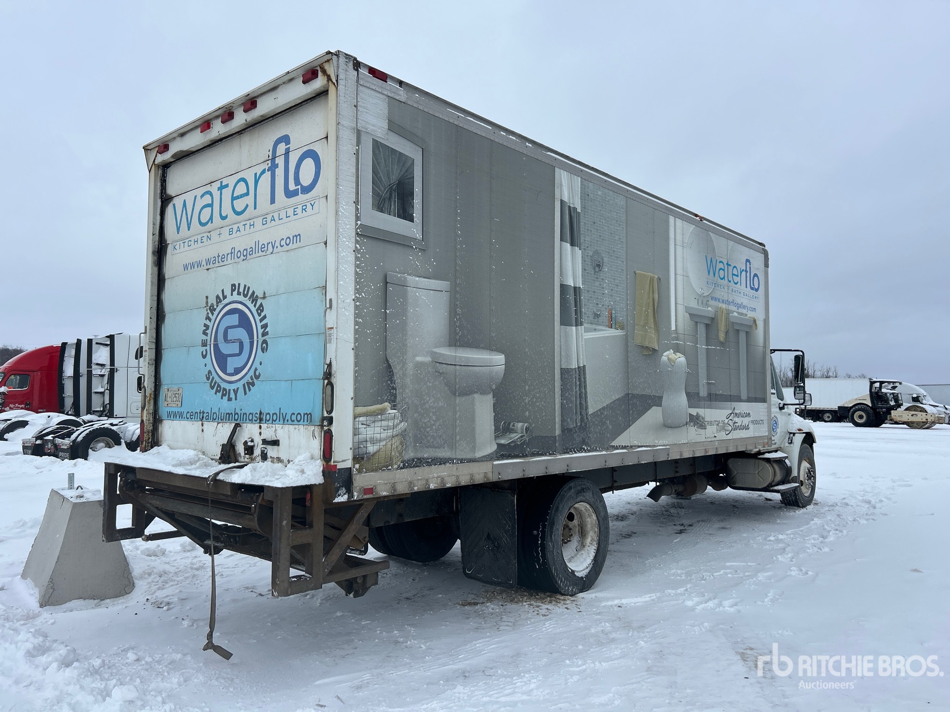 International GTD225S 7.6 L 225 hp Engine, 2008 US EPA Label, Requires Diesel Exhaust Fluid, 15971 Engine hrs, Eaton Fuller Manual Transmission, 12000 lb Front Axle, 21000 lb Rears, 33000 lb GVWR, Steel, 11R22.5, Spring Suspension, 253 in Wheelbase, Morgan 24 ft x 102 in Wide x 104 in High Body, Liftgate