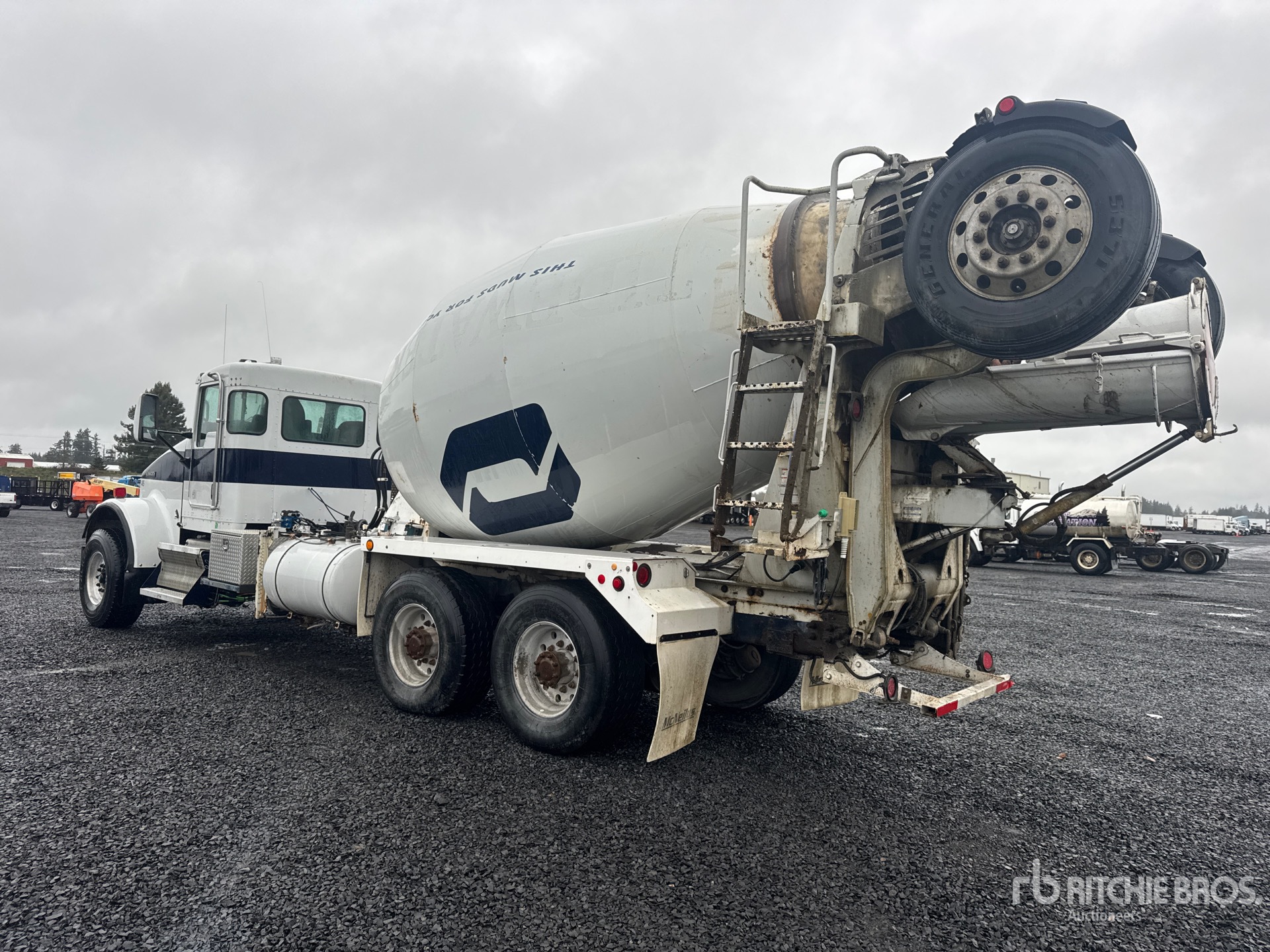 Located in Lane 17 Spot 15, Cummins ISM 320 6 Cylinder 10.8 L Diesel Engine, 12663 Engine hrs, Allison 4500 Automated Transmission, Double Differential Locks, 20000 lb Front Axle, 45600 lb Rears, Dana D46-170HPW Drive Axles, 5.38:1 Axle Ratio, 78600 lb GVWR, Aluminum Wheels, 425/65R22.5, Trailing Tag Axle, Dual Steering Boxes, Rubber over Walking Beam Suspension, 244 in Wheelbase, PTO, McNeilus Mixer Unit, 3 Removable Chutes, Remote Control w/Cord
