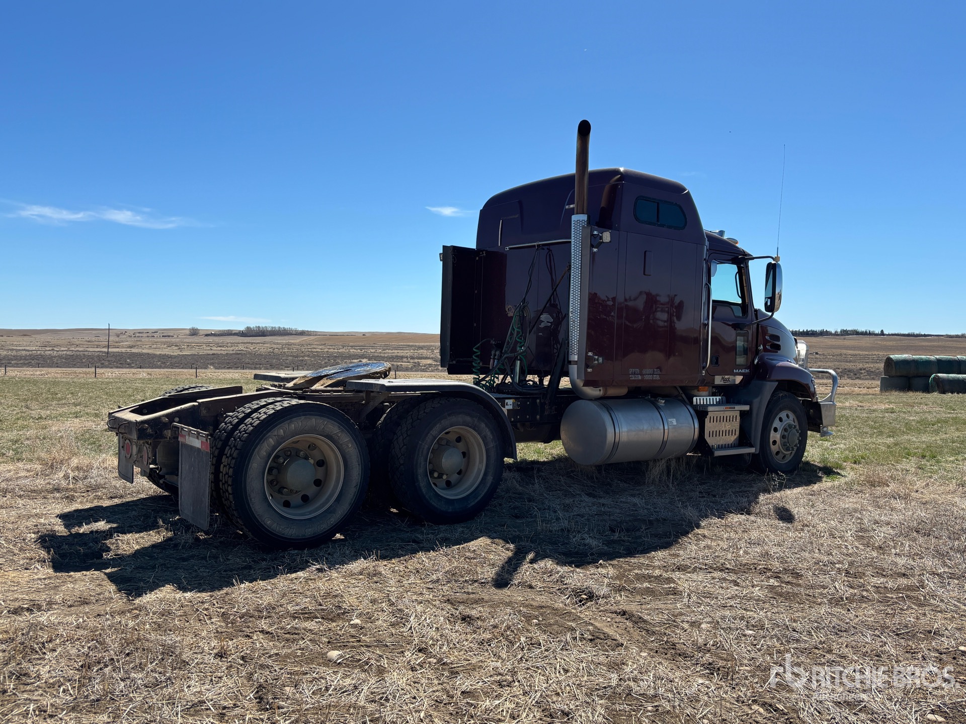 Mack MP8 338 hp Engine, Eaton Fuller 18-Speed Manual Transmission, 5443 kg Front Axle, 18144 kg Rears, 56 in Mid Roof Sleeper Cab, 220 in Wheelbase, Air Suspension, Aluminum Wheels, 11R24.5 Front Tires, 11R22.5 Rear Tires, Air Sliding 5th Wheel, Dual Fuel Tanks
