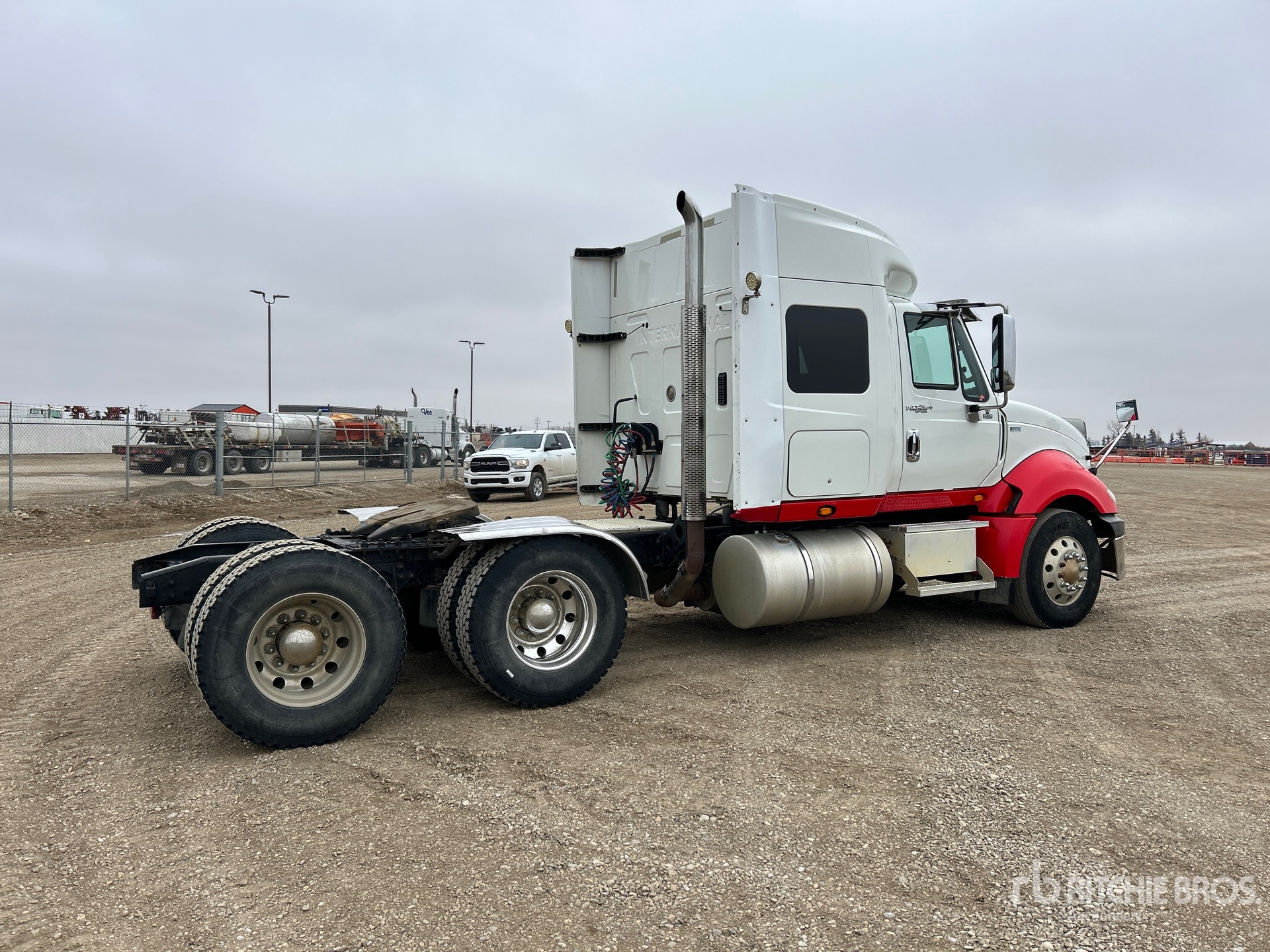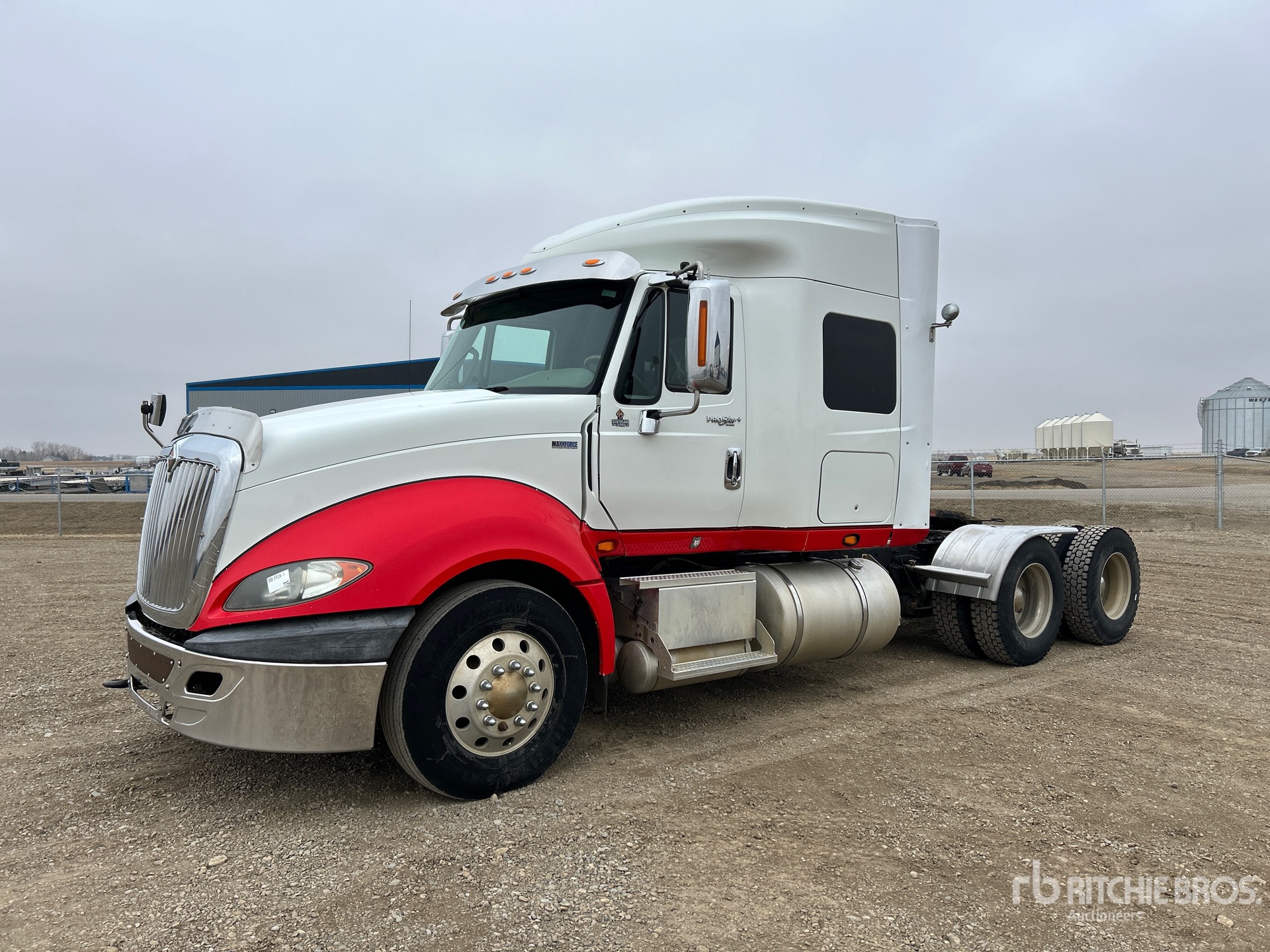 International Maxxforce 500 hp Engine, 2011 US EPA Label, 11018 Engine hrs, Eaton Fuller 18-Speed Manual Transmission, 13200 lb Front Axle, 40000 lb Rears, 53200 lb GVWR, Differential Lock, 51 in Mid Roof Sleeper Cab, 216 in Wheelbase, Air Suspension, Aluminum Wheels, 12R22.5, Air Sliding 5th Wheel, Dual Fuel Tanks