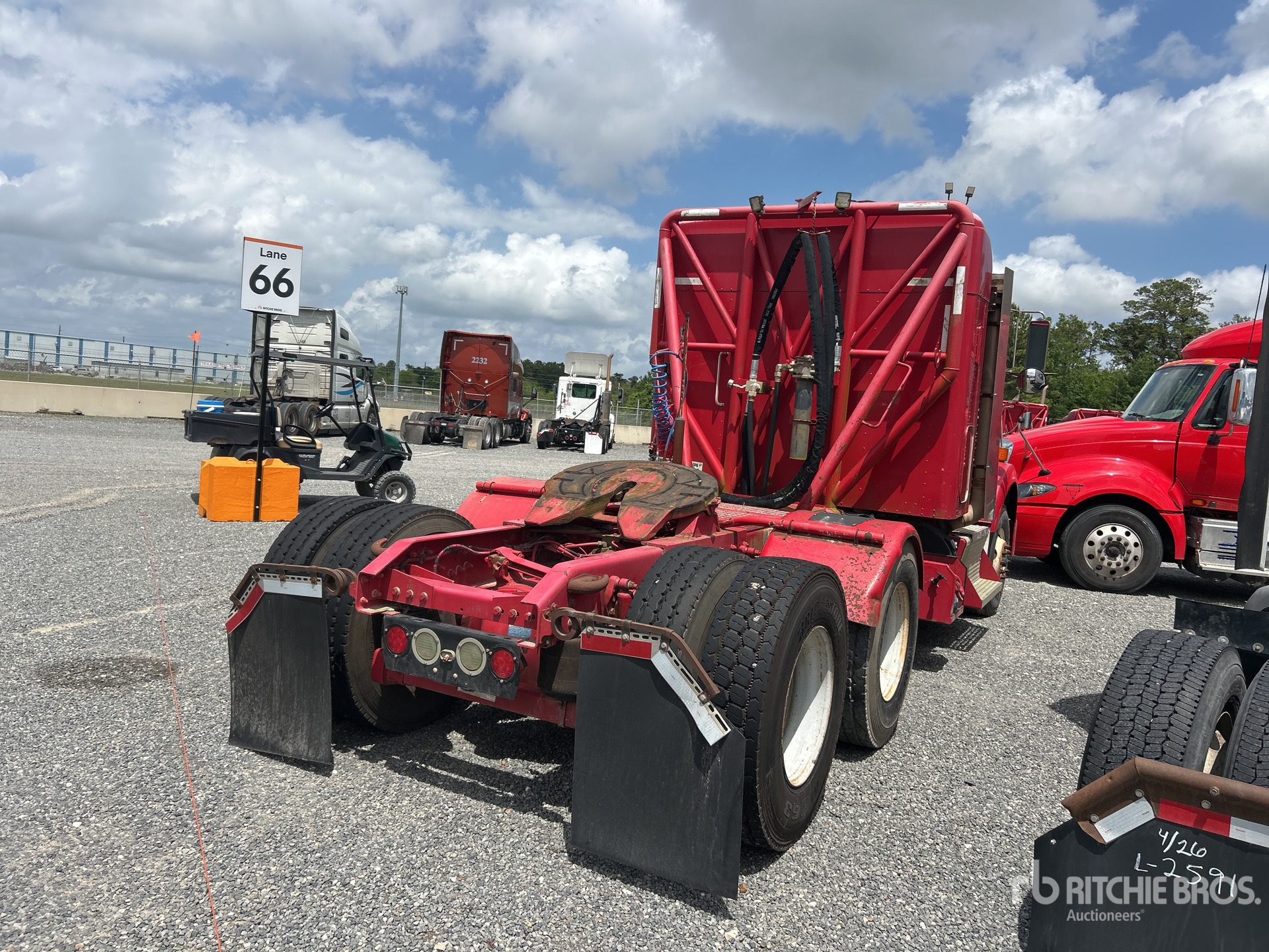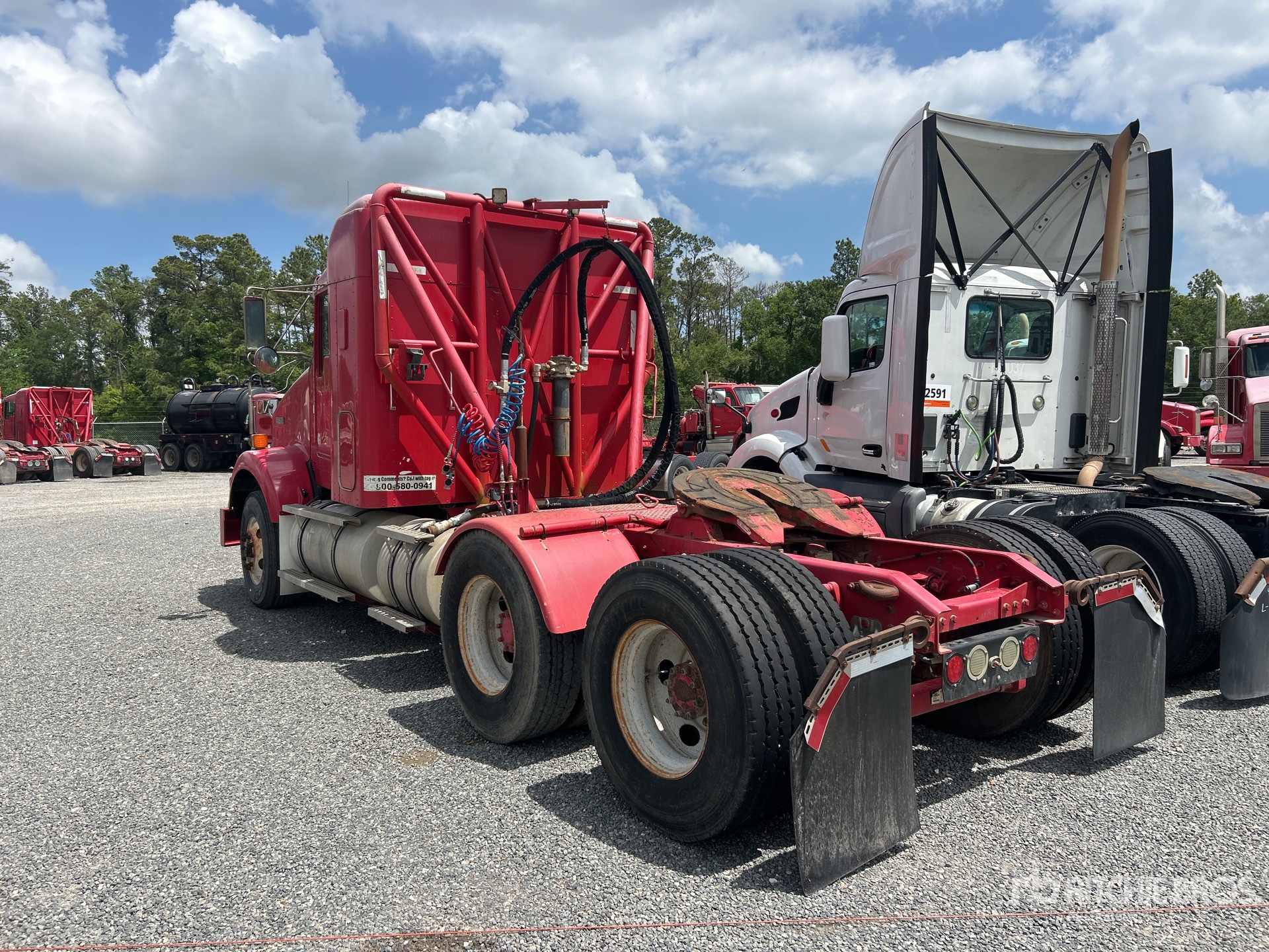 Cummins ISX11 350 hp Engine, 2011 US EPA Label, Eaton Fuller FRO-14210C 10-Speed Manual, 12000 lb Front Axle, 45000 lb Rears, 57000 lb GVWR, Engine Brake, Double Differential Locks, 28 in Mid Roof Sleeper Cab, 201 in Wheelbase, Air Suspension, 11R22.5, Wet Kit, Headache Rack
