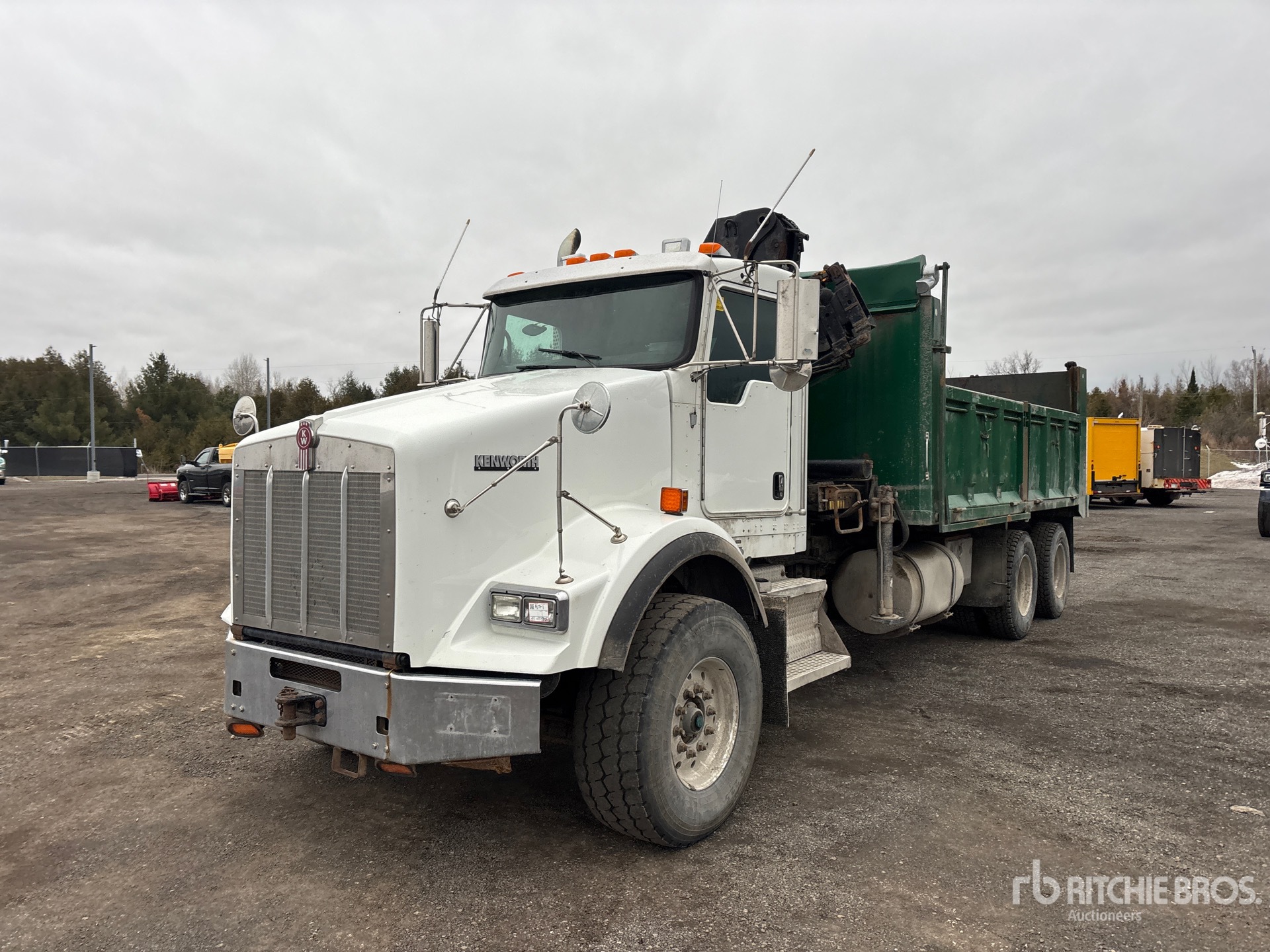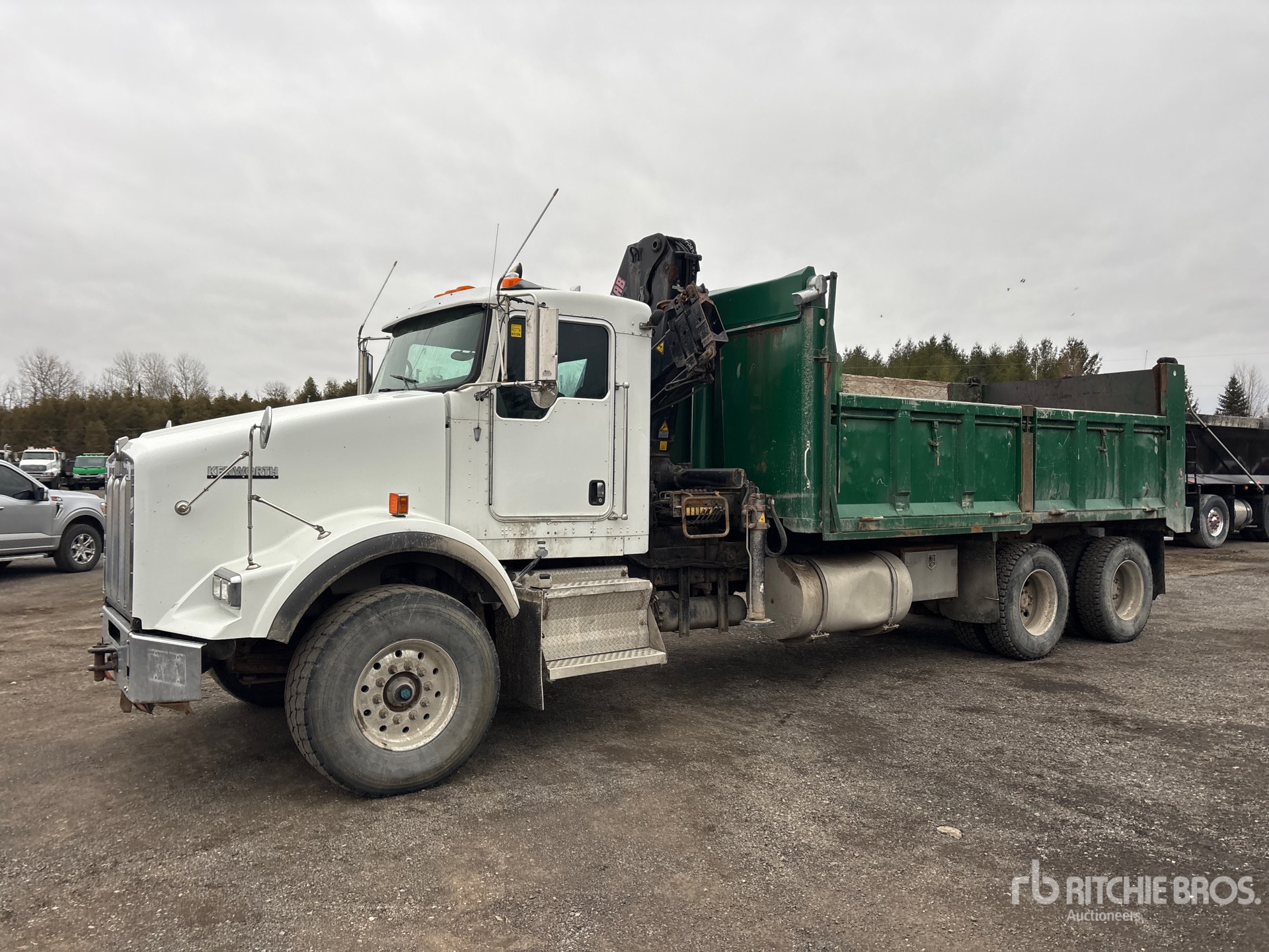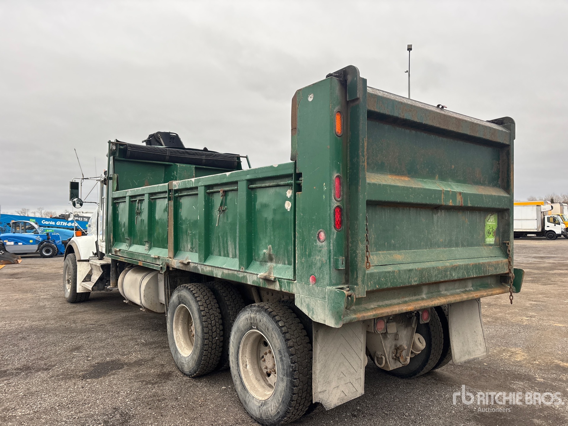 Cummins ISX15 6 Cylinder 15 L Diesel 485 hp Engine, 2011 US EPA Label, CARB Compliant, Requires Diesel Exhaust Fluid, 17371 Engine hrs, Engine Brake, Eaton Fuller RTLO-18918B 18-Speed Manual Transmission, Double Differential Locks, 9163 kg Front Axle, 20866 kg Rears, 4.10:1 Axle Ratio, 30028 kg GVWR, 425/65R22.5 Front Tires, 11R22.5 Rear Tires, Double Frame, Rubber over Walking Beam Suspension, 266 in Wheelbase, PTO, 17 ft 10 in Long x 3 ft 4 in High Steel Body, Air Powered Roll Tarp, Pintle Hitch