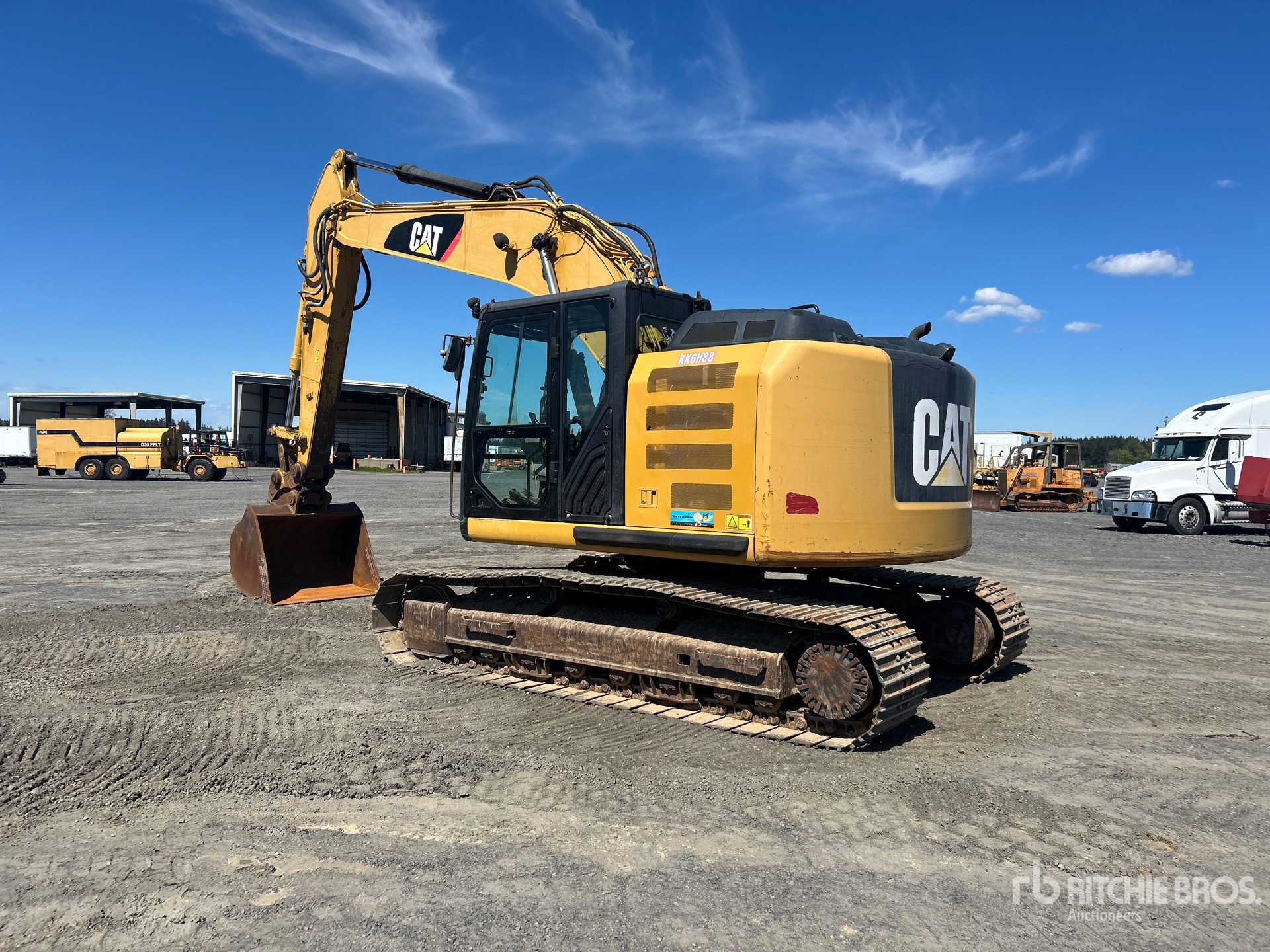 Located in Lane 3 Spot 14, Straight Travel Pedal, Rear View Camera, 11 ft Stick, Auxiliary Hydraulic Plumbing, 27 in Triple Grouser Track Shoes, Hydraulic Quick Coupler, 55 in Cleanup Bucket