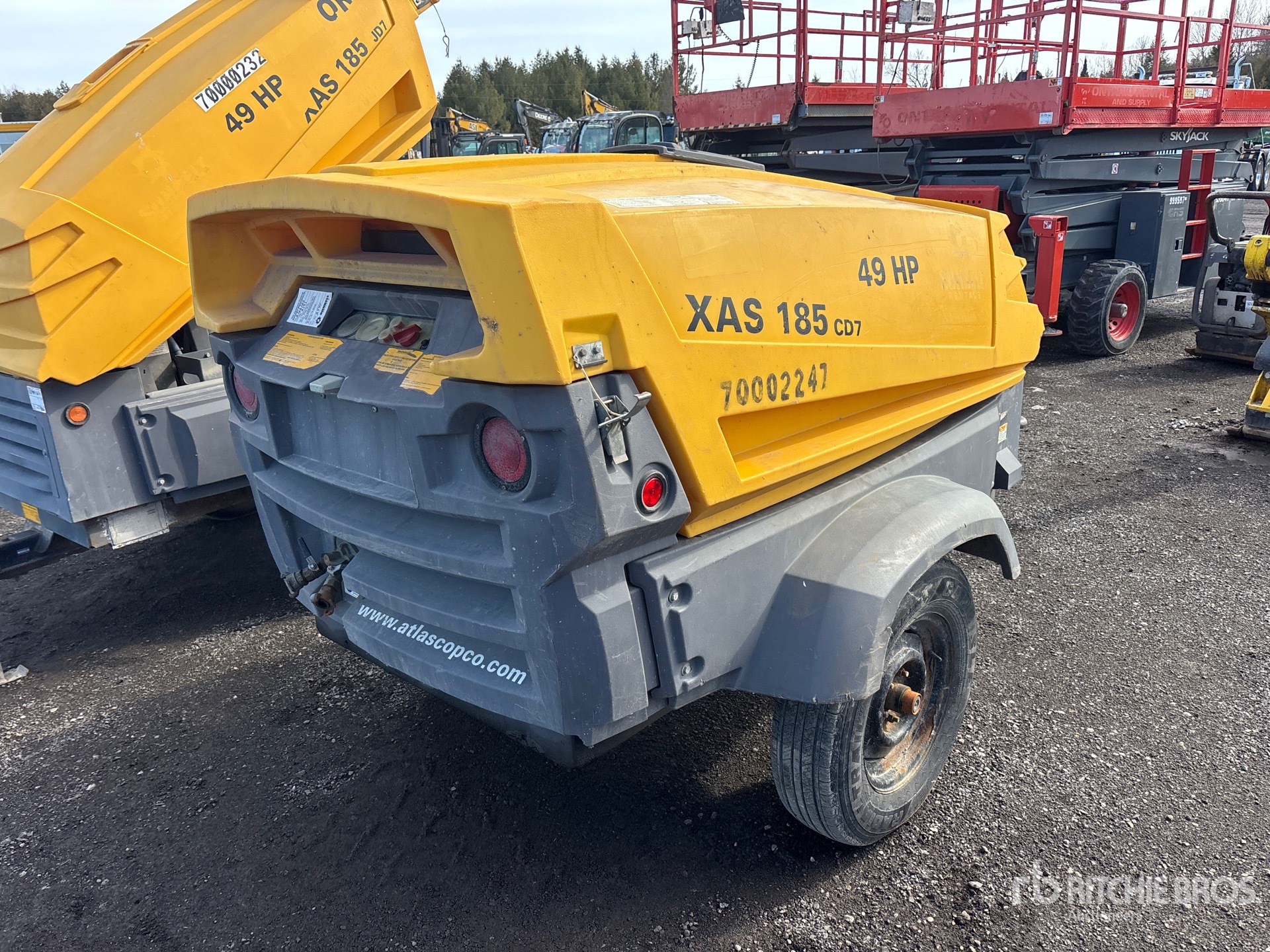 160 psi Working Pressure, US EPA Label, CARB Compliant, Cat 4 Cylinder 49 hp 2.216 L Diesel Engine, Lunette Ring Carrier Trailer