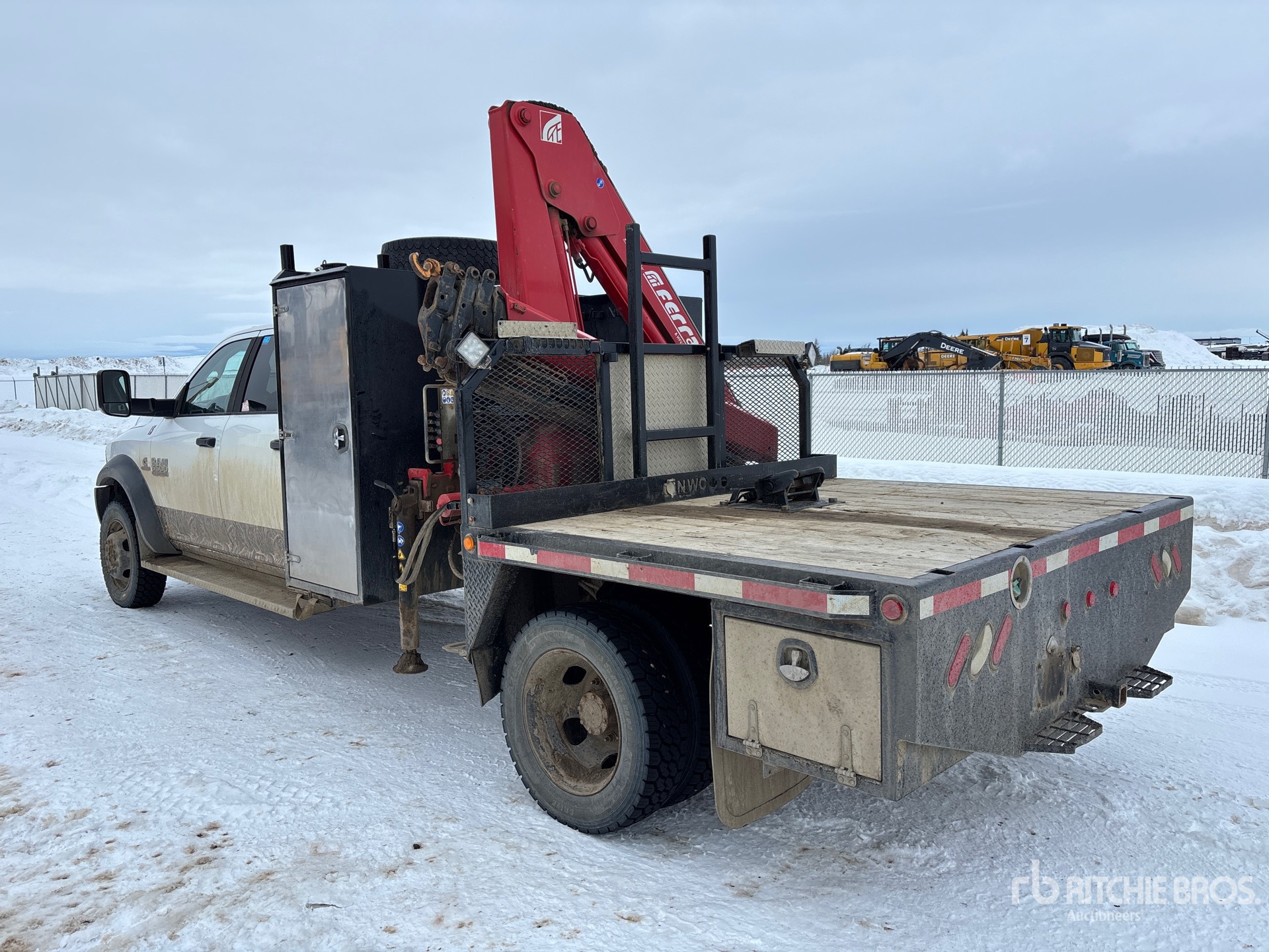 6 Cylinder 6.7 L Diesel Engine, Positive Air Shutoff, 9443 Engine hrs, Exhaust Brake, Automatic Transmission, 7000 lb Front Axle, 13500 lb Rears, 19500 lb GVWR, 225/70R19.5, 197 in Wheelbase, PTO, 2.55 m - 10.45 m Boom, Out and Down Outriggers, Ferrari Crane, 6 ft x 94 in Bed, 5th Wheel