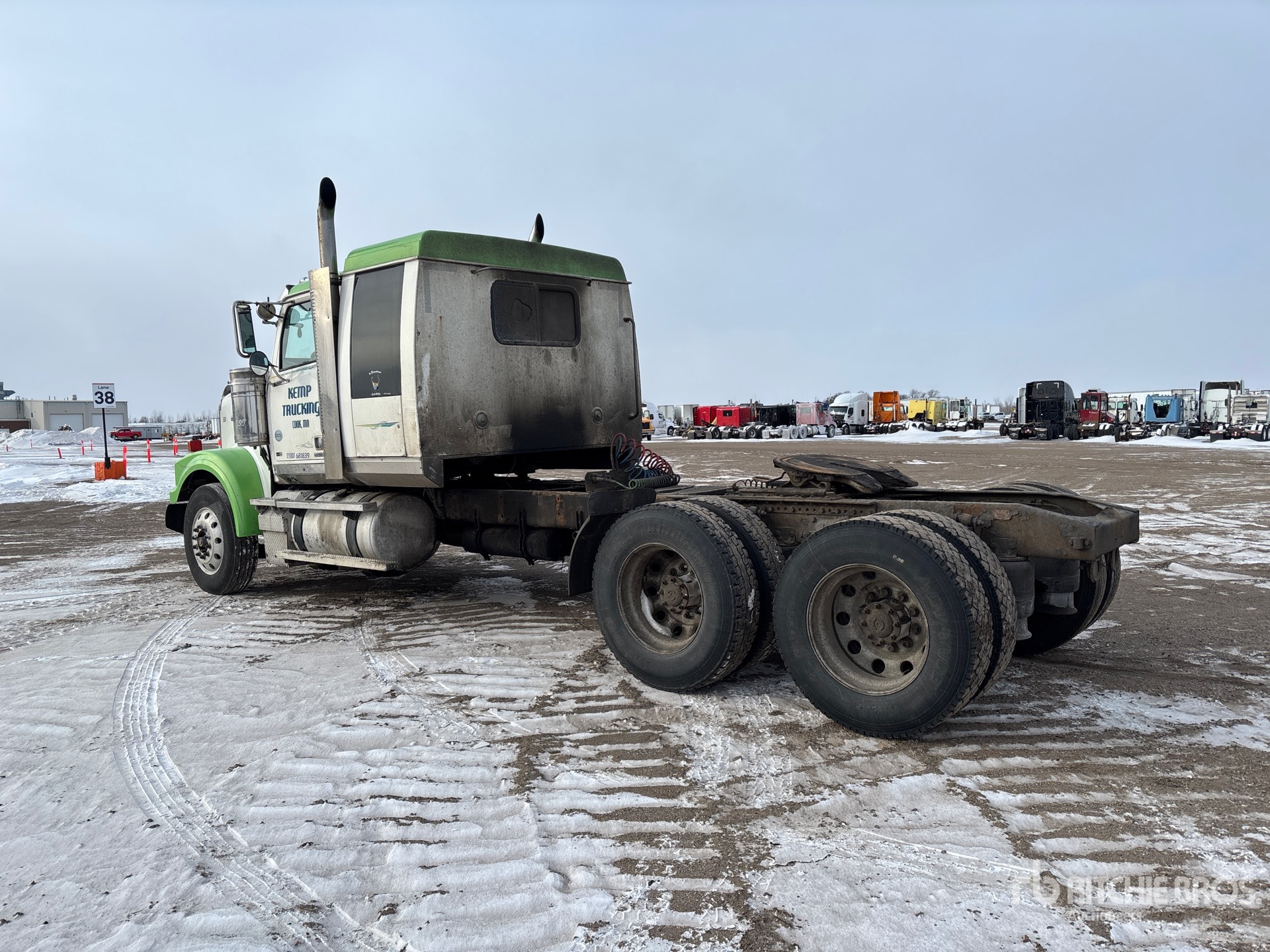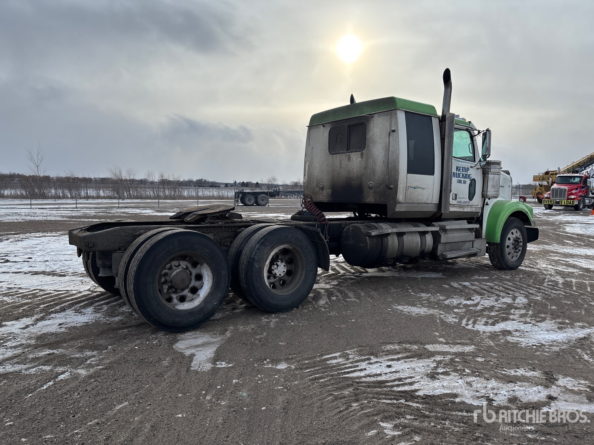 Detroit DD13 Engine, Manual Transmission, 13220 lb Front Axle, 40000 lb Rears, 53220 lb GVWR, Engine Brake, Differential Lock, 48 in Flat Top Sleeper Cab, 230 in Wheelbase, Air Suspension, Aluminum Wheels, 11R24.5, Air Sliding 5th Wheel, Dual Fuel Tanks