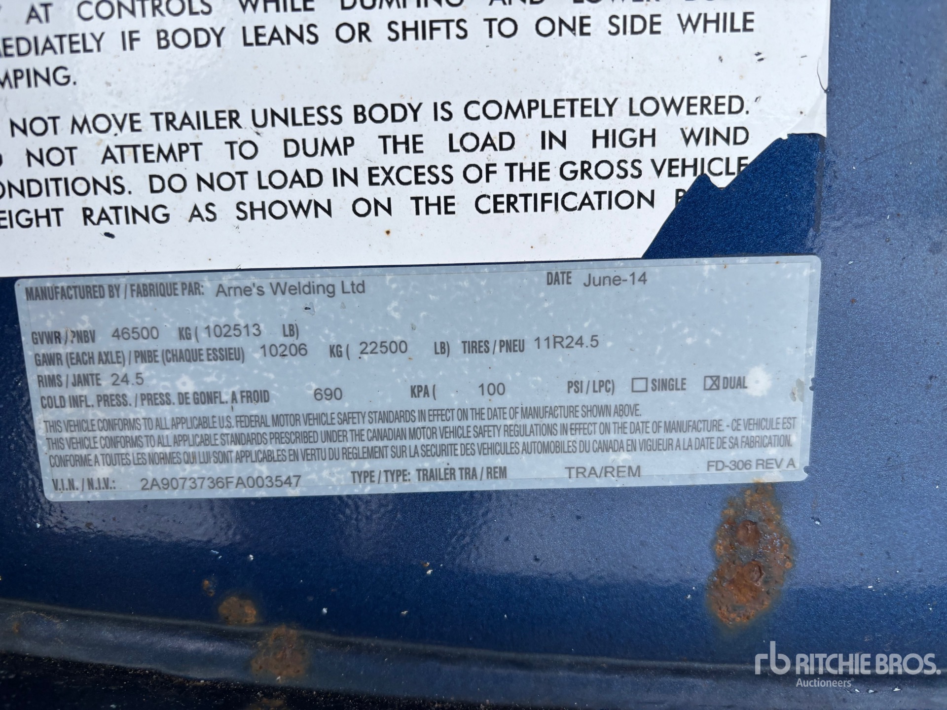 El informe detallado del equipo está limitado en su alcance y Ritchie Bros. Auctioneers no ha inspeccionado ningún aspecto o componente del equipo además de los que se especifican expresamente aquí. A menos que se diga expresamente, no efectuamos declaraciones ni otorgamos garantías, expresas o implícitas, concernientes al equipo o sus componentes, incluidas sin limitación cualesquiera declaraciones o garantías concernientes a la funcionalidad, la conformidad o el cumplimiento de cualquier estándar de seguridad o requerimiento de cualquier autoridad correspondiente u organismo normativo, adecuación para cualquier propósito en particular, o comercialización. Se le recomienda muy especialmente que realice su propia inspección detallada del equipo antes de ofertar.