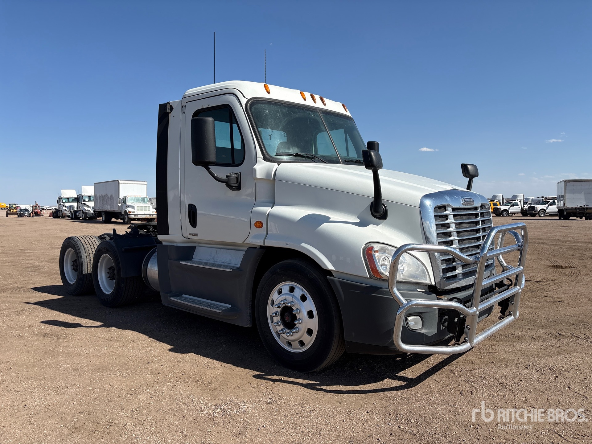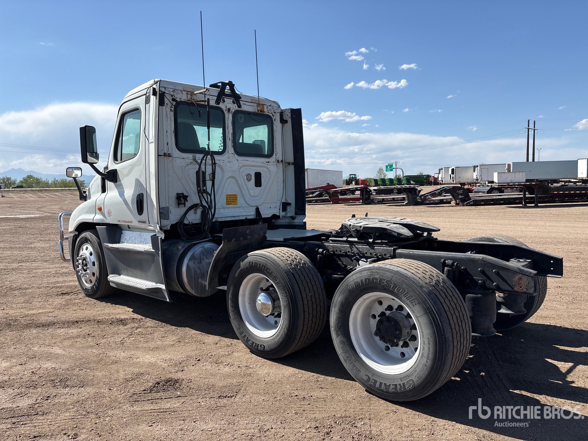 Located in Lane 9 Spot 21, Detroit DD15 Engine, 2014 US EPA Label, 5882.33 Engine hrs, Eaton Fuller 10-Speed Manual Transmission, 12000 lb Front Axle, 40000 lb Rears, 52000 lb GVWR, Engine Brake, Air Suspension, Aluminum Front Wheels, 285/75R24.5 Front Tires, 445/50R22.5 Super Singles Rear Tires, Air Sliding 5th Wheel, Dual Fuel Tanks