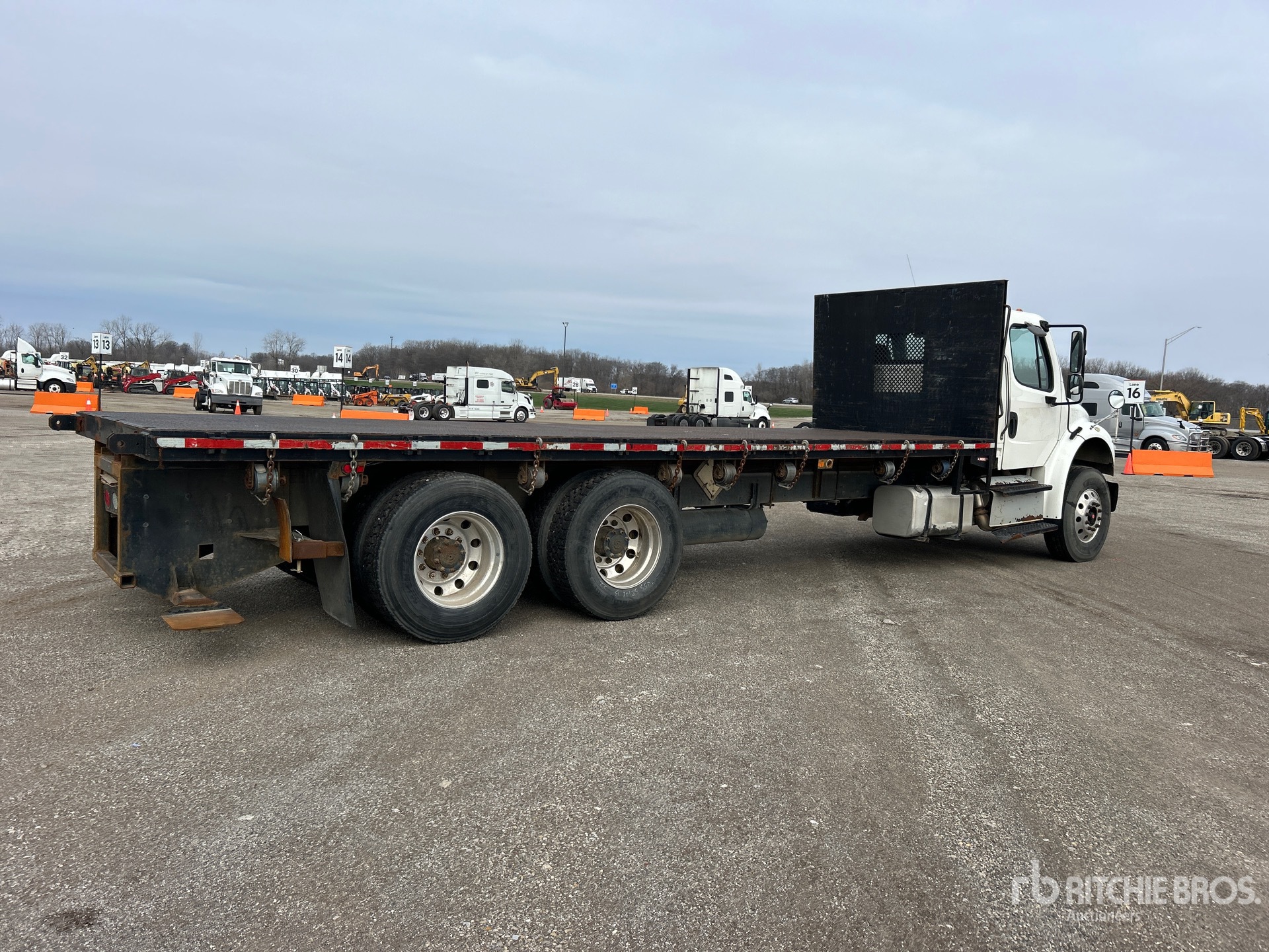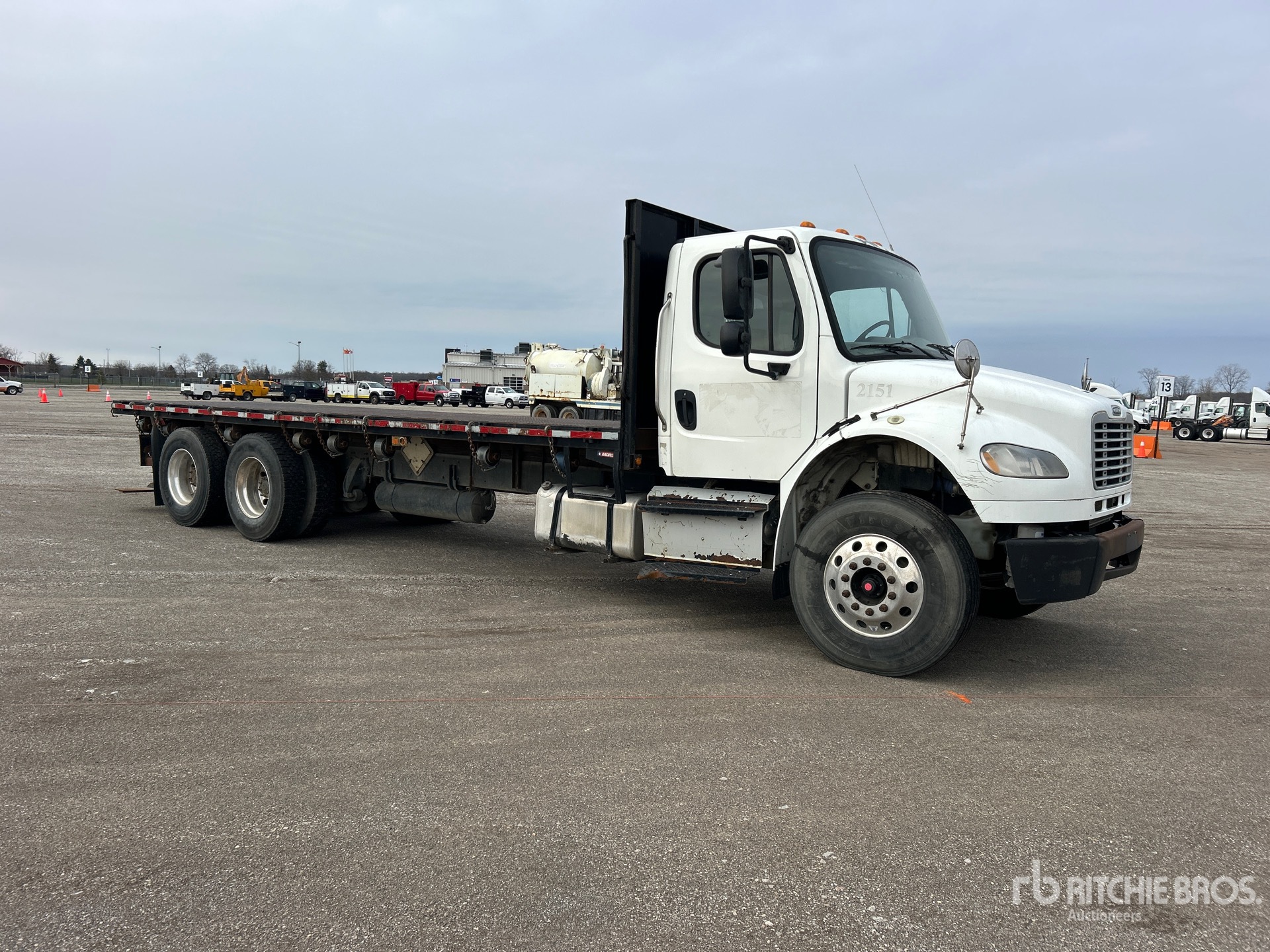 Cummins ISL 6 Cylinder Diesel 350 hp Engine, 2015 US EPA Label, Requires Diesel Exhaust Fluid, 8724 Engine hrs, Eaton Fuller FRO-11210B 10-Speed Manual Transmission, 14600 lb Front Axle, 40000 lb Rears, 4.11:1 Axle Ratio, 54600 lb GVWR, Air Ride Cab, Aluminum Outer Wheels, 12R22.5 Front Tires, 11R22.5 Rear Tires, Double Frame, Airliner Air Ride Suspension, 224 in Wheelbase, 24 ft x 91 in Bed, Forklift Mount Kit