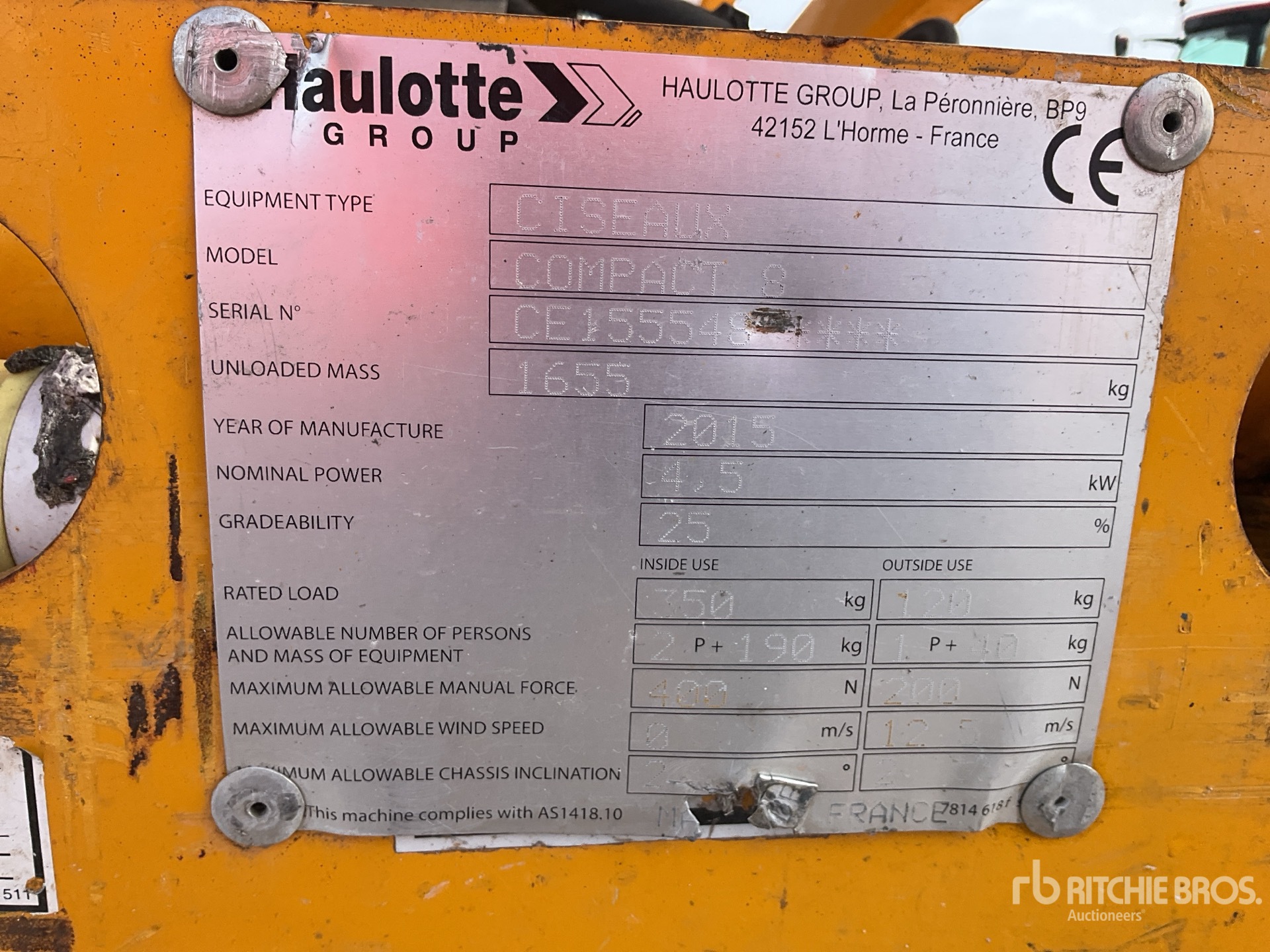2015 Haulotte Compact 8 Electric Elevador de tijera
