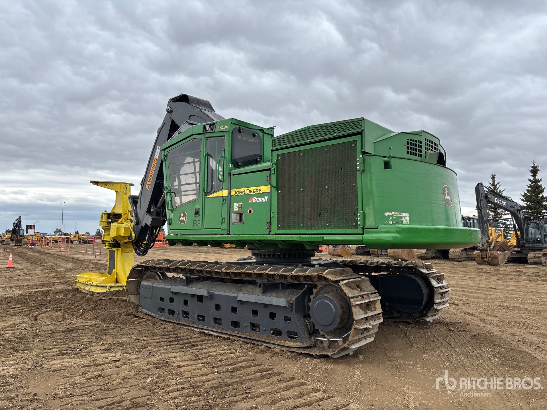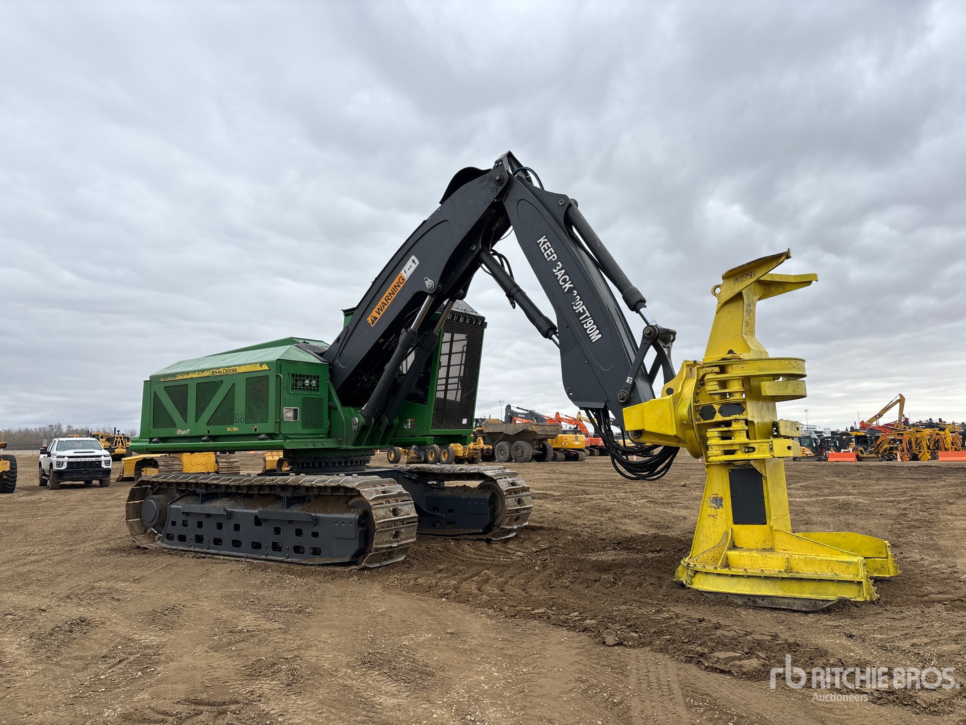 Air Conditioner, Cab Screens, Fire Suppression System, Engine Coolant Heater, 28 in Single Grouser Track Shoes, Rock Guards, John Deere FR22B 22 in Feller Buncher, High-Rotation Wrist, Counterweight Additional Fuel Tank, Catwalks