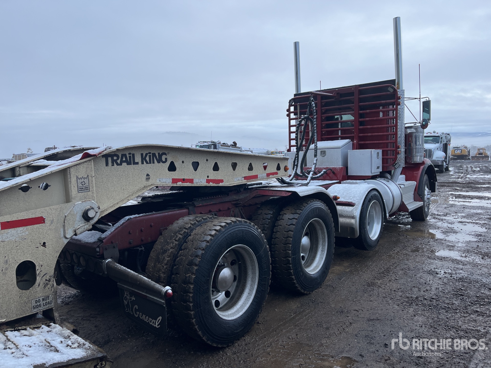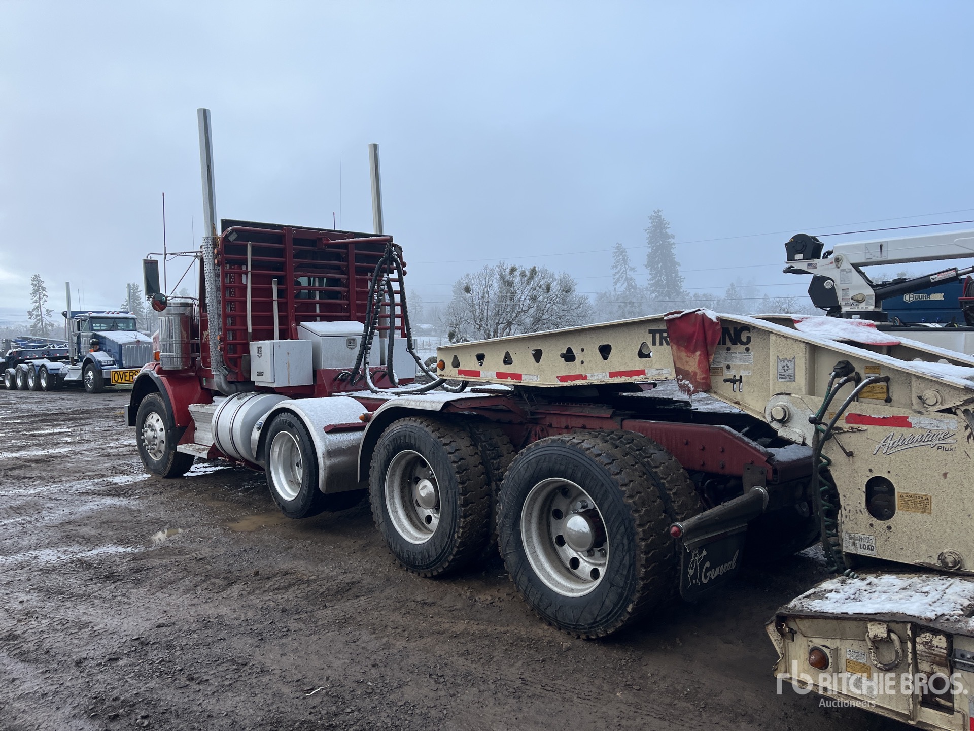 Cummins ISX 550 hp Engine, 7297 Engine hrs, Eaton Fuller RTLO-20918B 18-Speed Manual, 20000 lb Front Axle, Dana D52-190 Drive Axles, 4.56:1 Axle Ratio, 52000 lb Rears, Air Lift Pusher Axle, Aluminum Wheels, Air Sliding 5th Wheel, Dual Fuel Tanks, Headache Rack