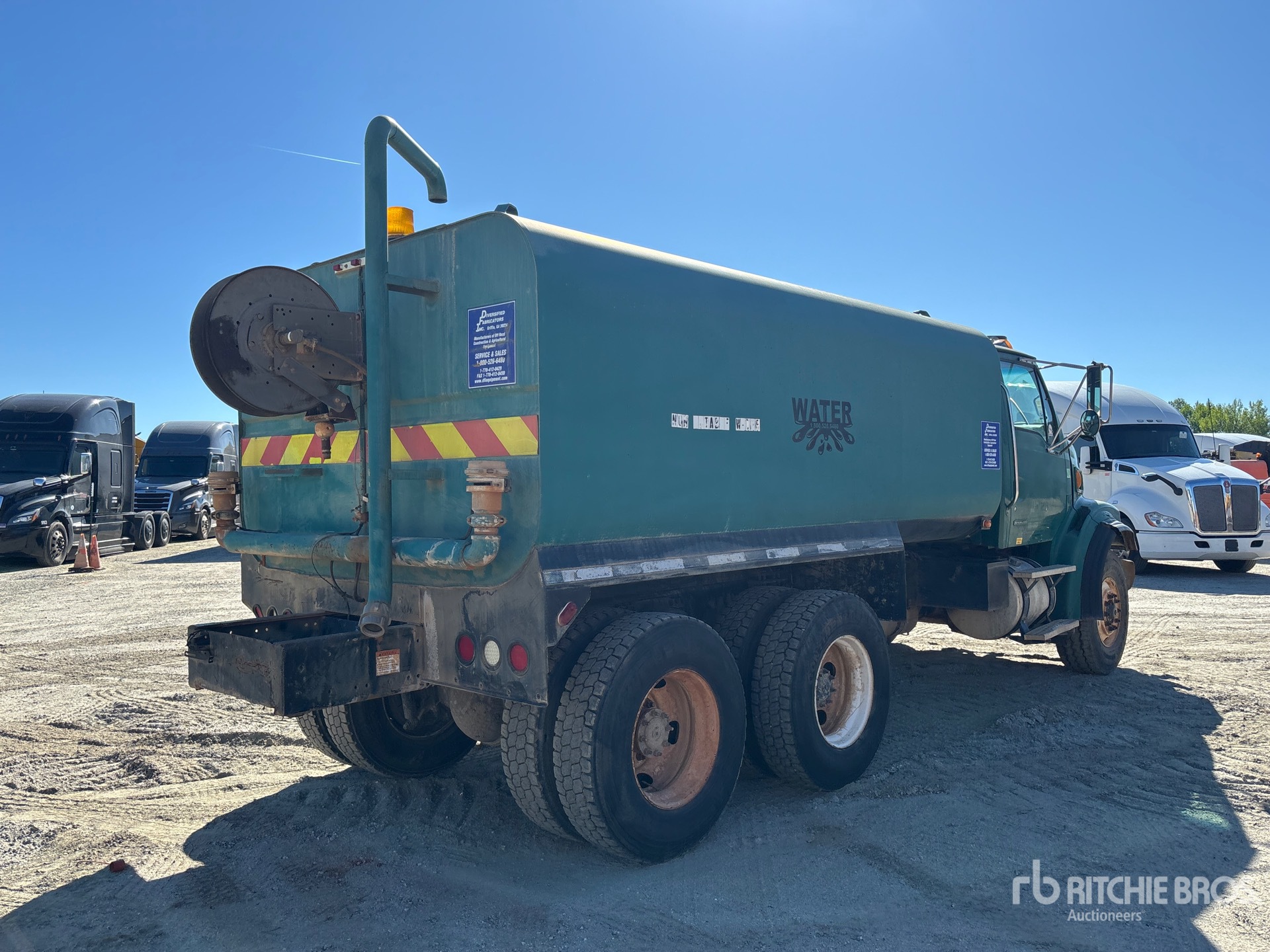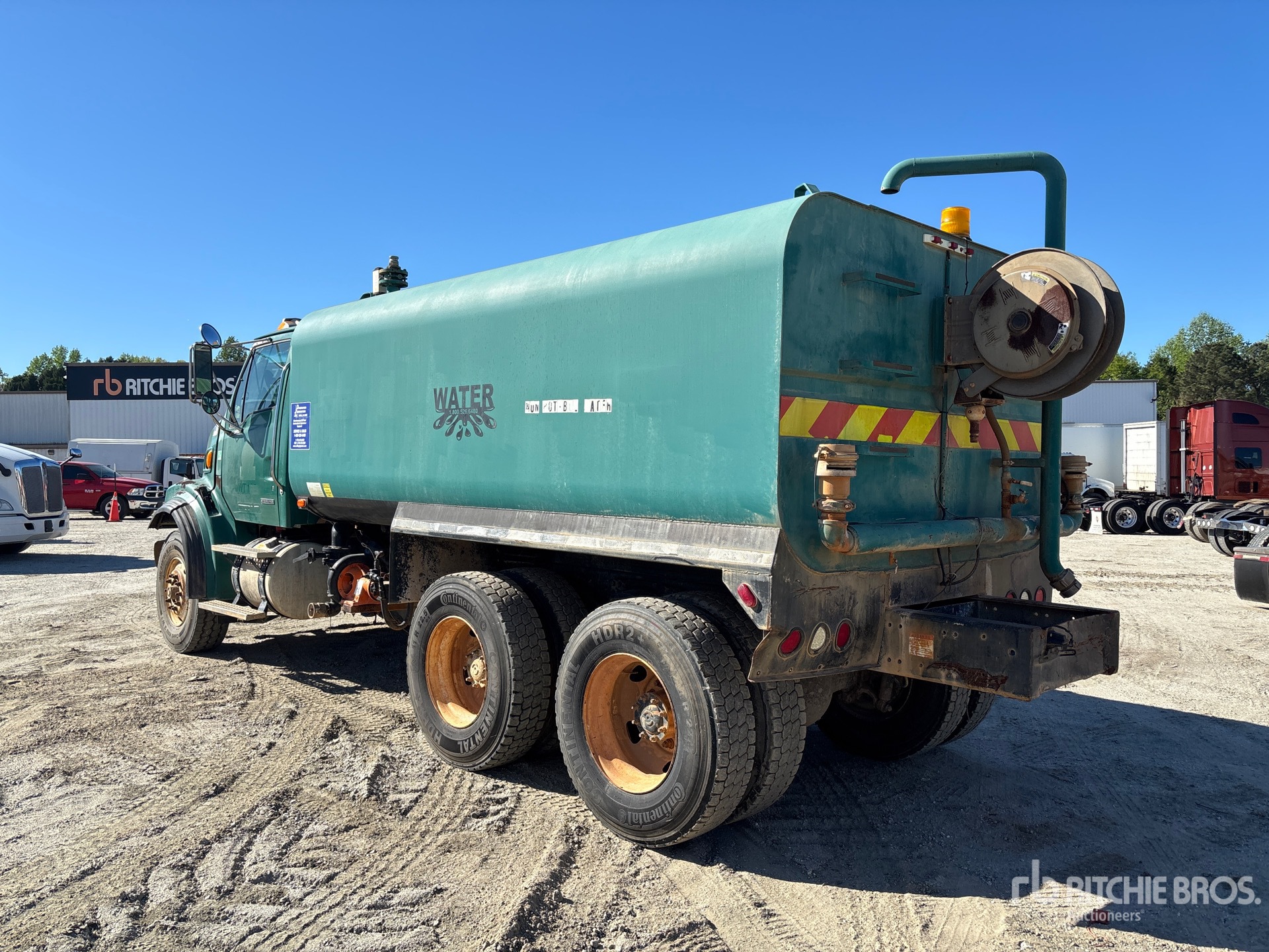 Cummins ISC 300 6 Cylinder 8.3 L Diesel 300 hp Engine, 2007 US EPA Label, 13568.3 Engine hrs, 8LL Manual Transmission, 18000 lb Front Axle, 38072 lb Rears, 56072 lb GVWR, Air Ride Cab, 315/80R22.5 Front Tires, 11R22.5 Rear Tires, Dual Steering Boxes, Double Frame, TufTrac Rubber Suspension, 198 in Wheelbase, PTO, Steel Tank, BERKELEY Hydraulic Driven Pump, 7 ft, Spray Bar, Hose Reel, In-Cab Remote Controlled Water Cannon, Front Spray, Rear Spray