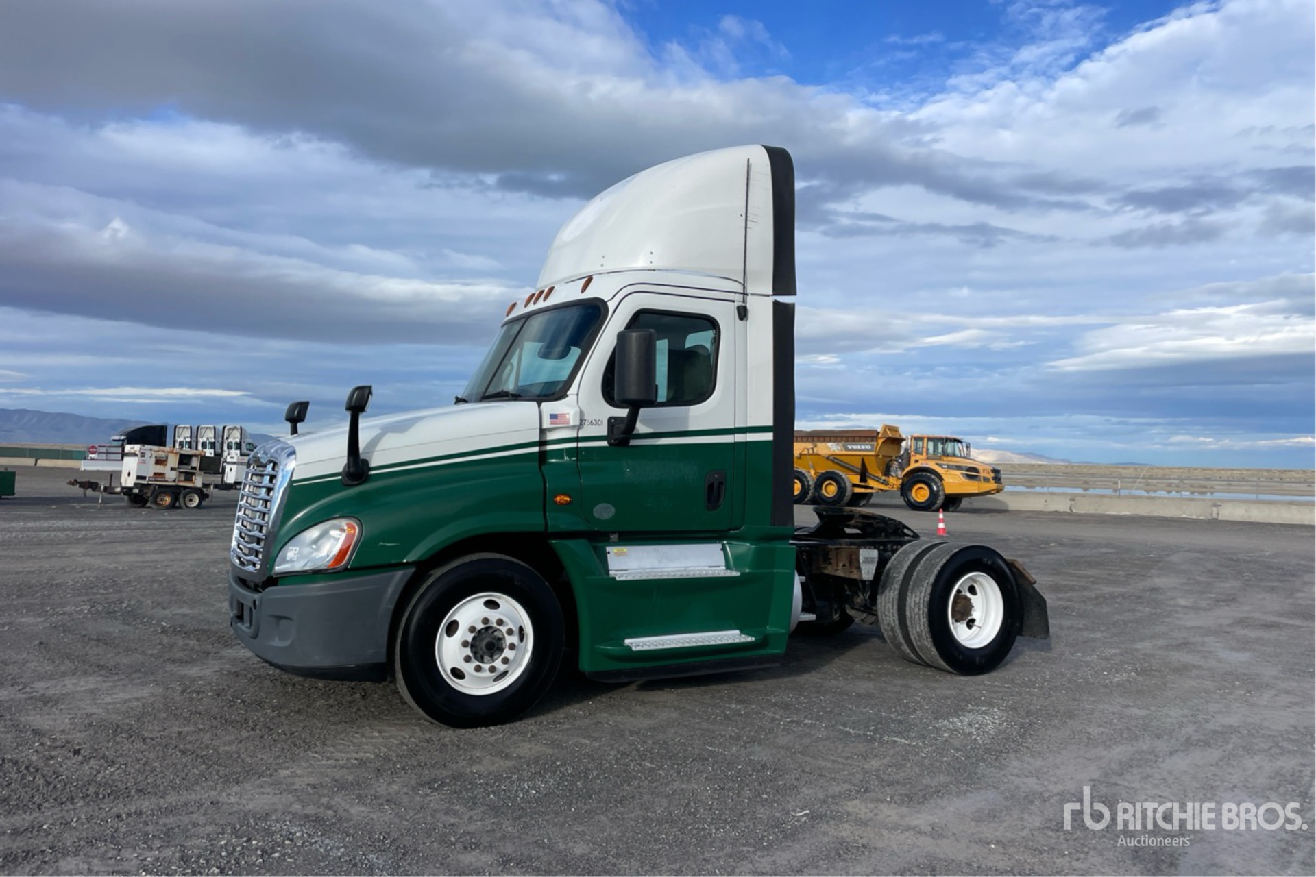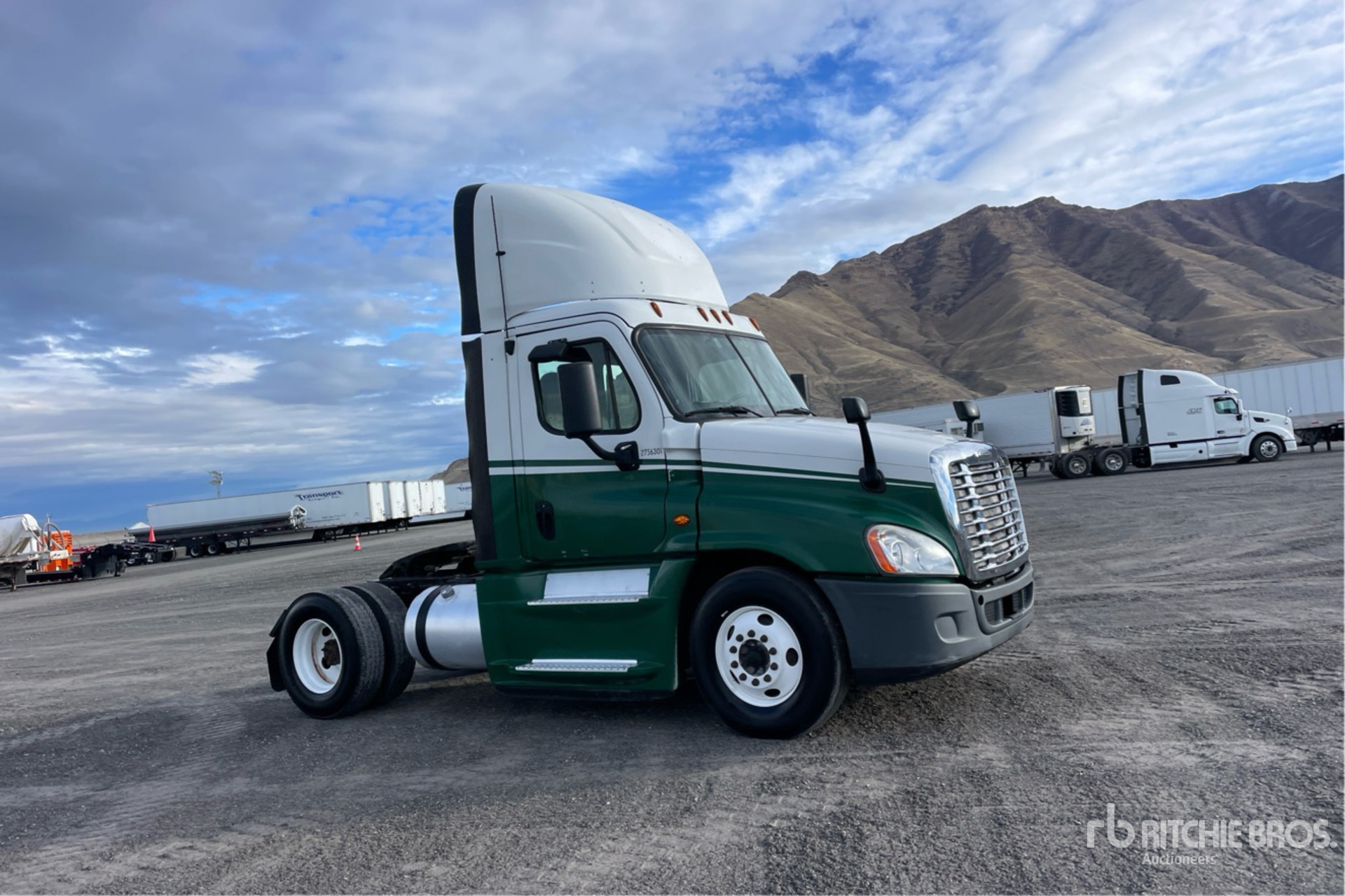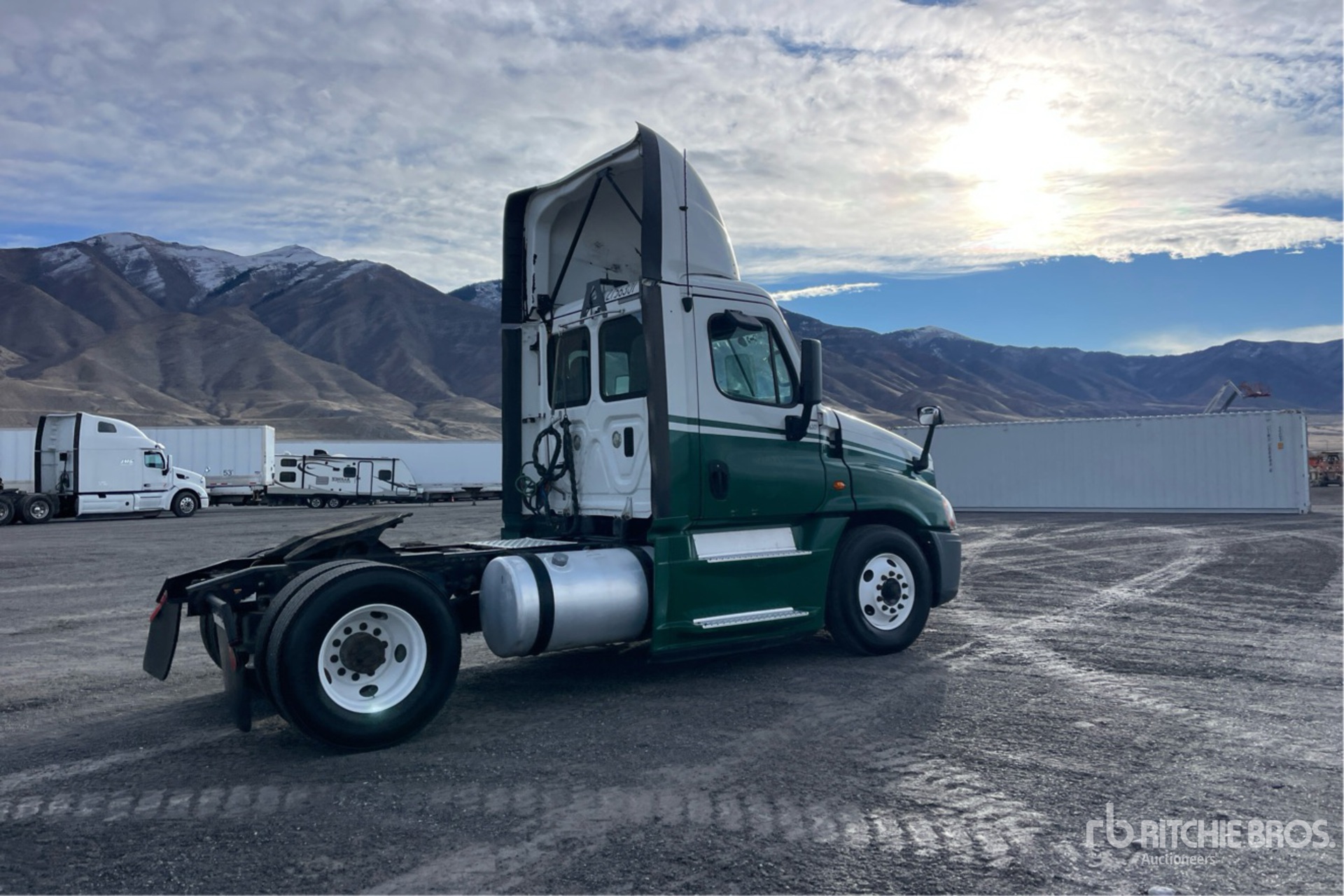 Detroit DD15 455 hp Engine, 15594 Engine hrs, Eaton Fuller FRO-15210C 10-Speed Manual Transmission, 12000 lb Front Axle, 21000 lb Rears, 33000 lb GVWR, 158 in Wheelbase, Air Suspension, 11R22.5
