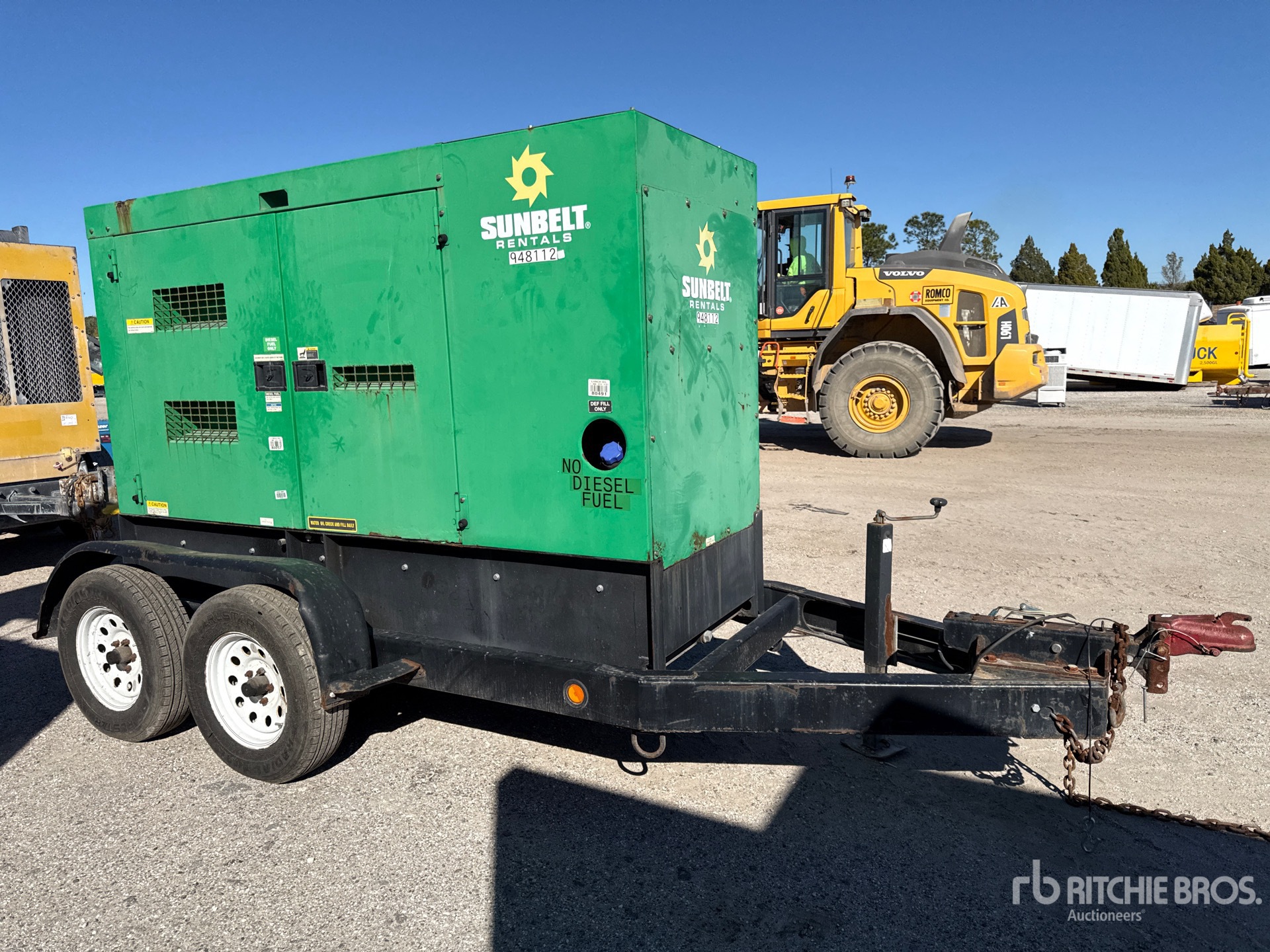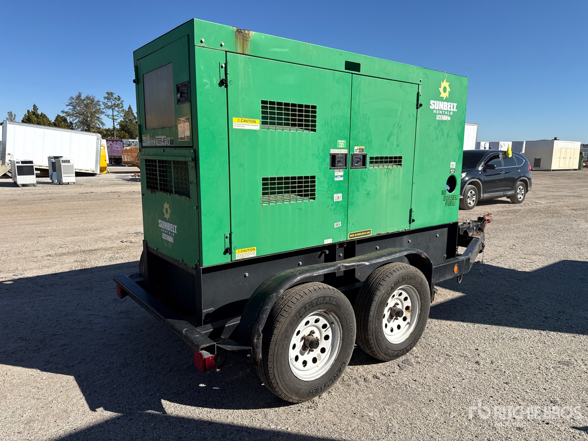 2016 US EPA Label, Isuzu BR-4JJ1X 4 Cylinder 56 kW 3.0 L Diesel Engine, 70 kVA/56 kW Rated 3 Phase Output, 480 V / 240 V Rated Voltage, 40 kVA,/40 kW, Rated Single Phase Output, 240 V / 120 V Rated Voltage, 240 V & 120 V Receptacles, Sound Attenuated, Bottom Mounted Fuel Tank, Ball Hitch Carrier Trailer, Surge Brakes, Equipment-from-Sunbelt-Rentals