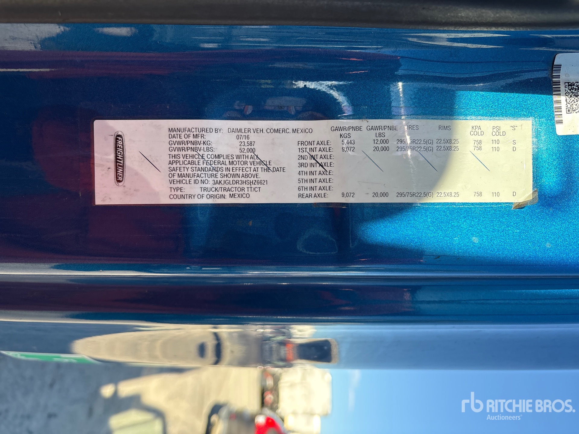 Detroit DD15 6 Cylinder 14.8 L Diesel 455 hp Engine, 2016 US EPA Label, Requires Diesel Exhaust Fluid, Engine Brake, Detroit Dt12-DA-1750 Automated Transmission, 12000 lb Front Axle, 40000 lb Rears, Detroit DA-RT-40.0-4 Drive Axles, 2.41:1 Axle Ratio, 52000 lb GVWR, Air Ride Cab, 70 in Sleeper Cab, Bunk Beds, 295/75R22.5 Front Tires, Mix match Rear Tires, Airliner 6-Rod Suspension, 228 in Wheelbase, Air Sliding 5th Wheel, Dual Fuel Tanks