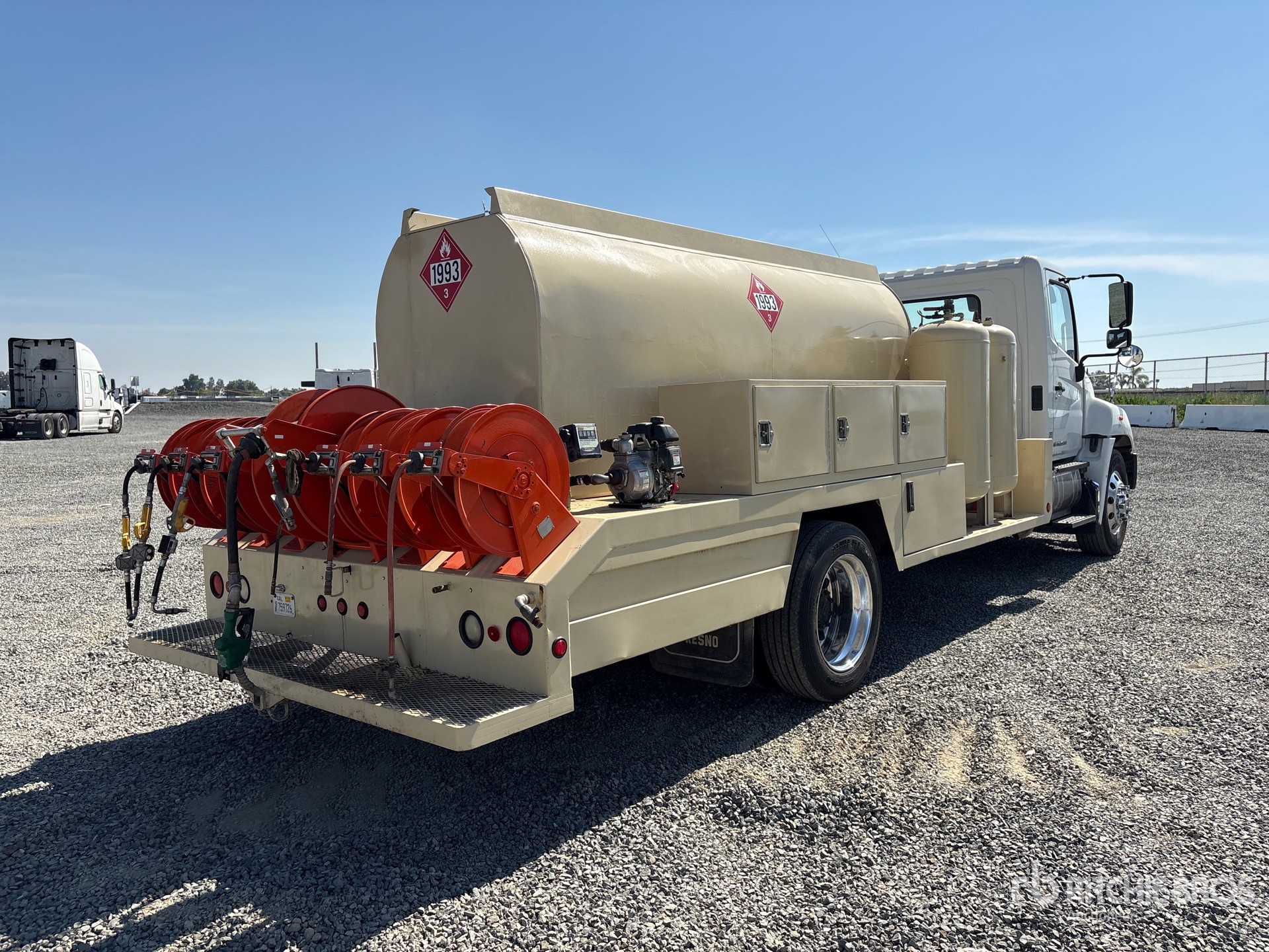 Diesel Engine, 2016 US EPA Label, Requires Diesel Exhaust Fluid, Engine Brake, Automatic Transmission, 12000 lb Front Axle, 21000 lb Rears, 33000 lb GVWR, Aluminum Wheels, 275/80R22.5 Front Tires, 255/70R22.5 Rear Tires, Air Ride Suspension, 210 in Wheelbase, 19 ft Body, ( 7 ) Hose Reels, Grease Barrel, Hydraulic Hose Reel, Rolair Gasoline Air Compressor