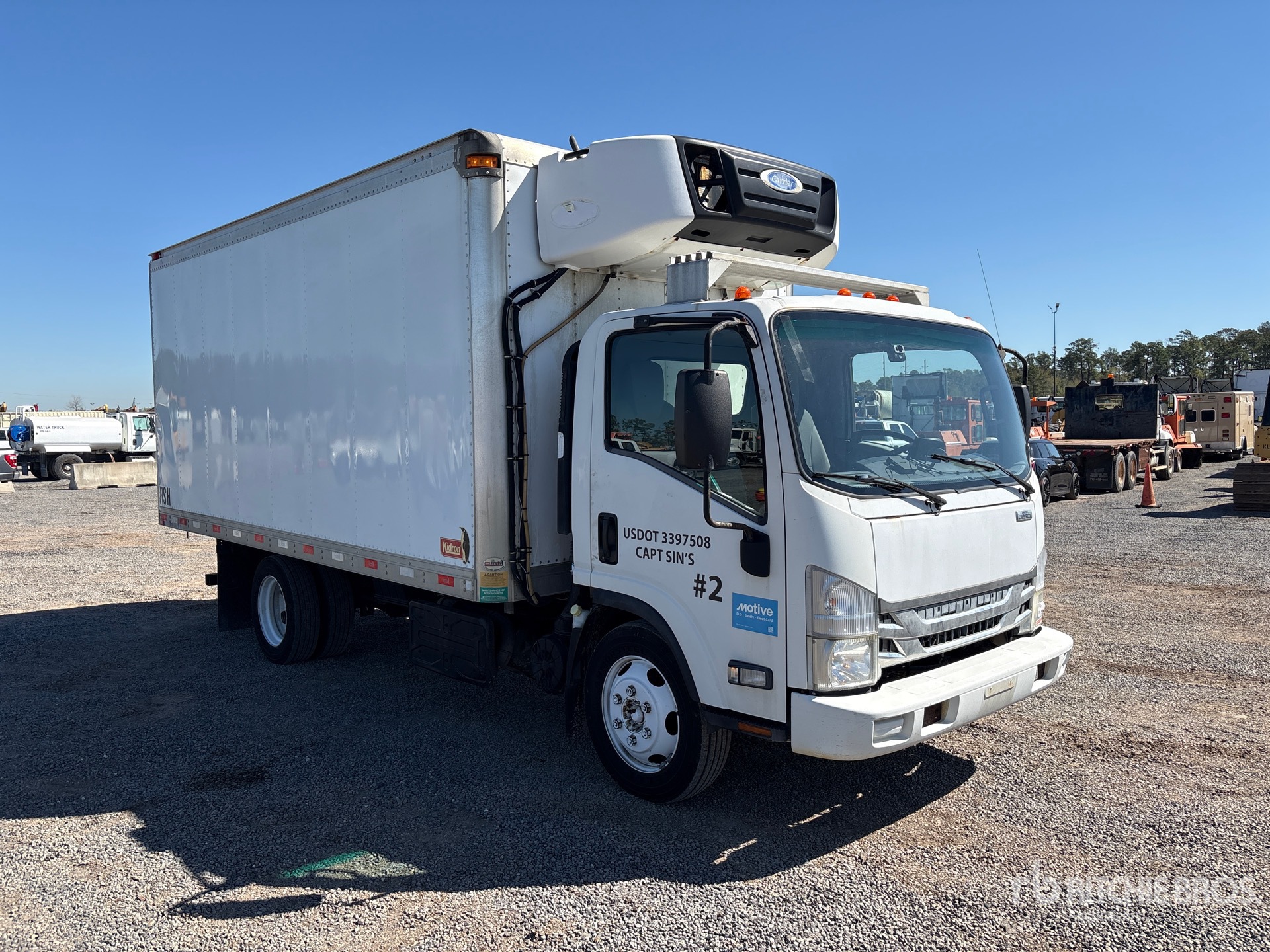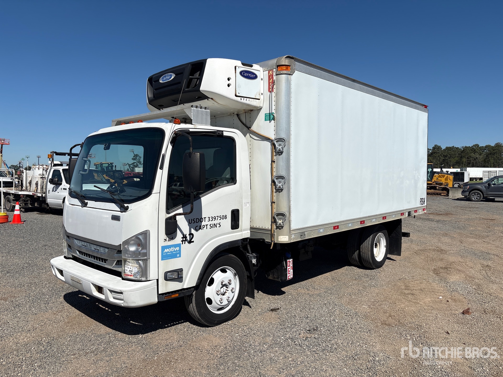 Located in Lane 35 Spot 52, Isuzu 4HK1TC 5.2 L Diesel Engine, 2016 US EPA Label, 6756 Engine hrs, Automatic Transmission, 6830 lb Front Axle, 12980 lb Rears, 17950 lb GVWR, 225/70R19.5, Spring Suspension, 163 in Wheelbase, Carrier Stealth Reefer Unit, Hackney 16 ft x 96 in Wide x 74 in High Body
