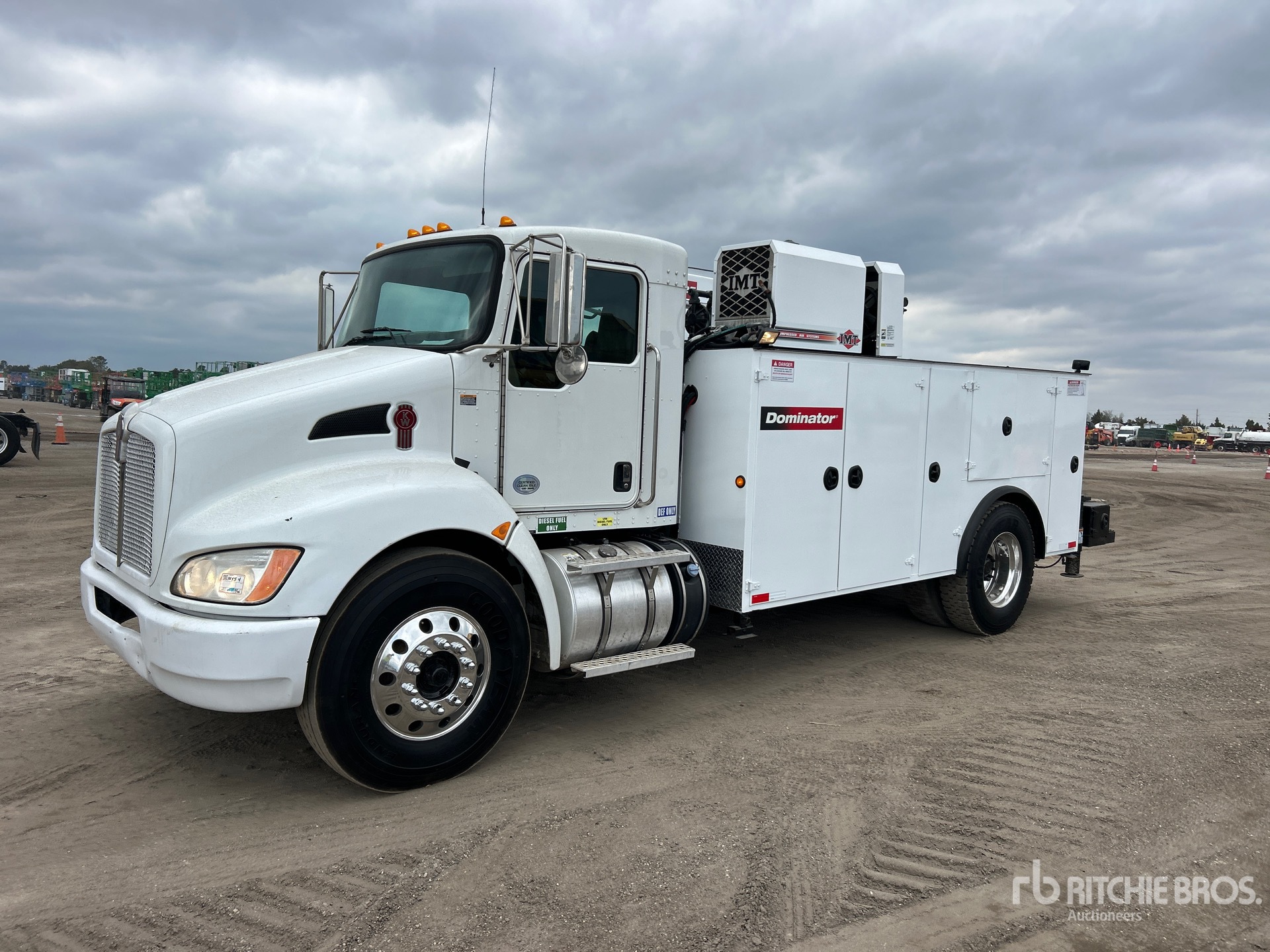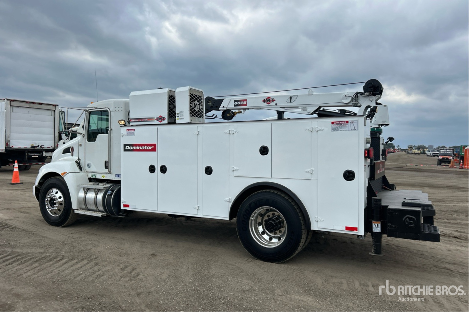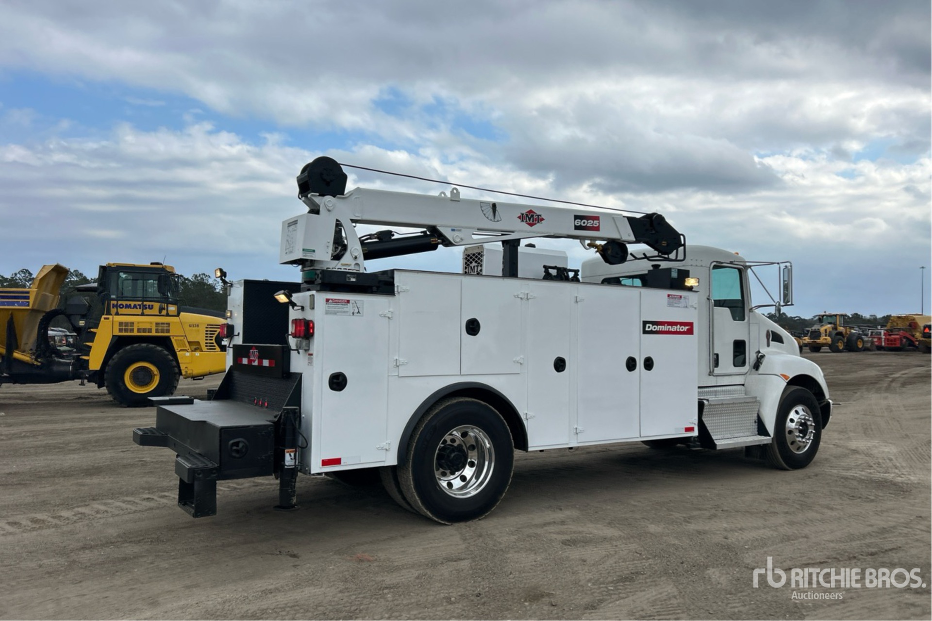 Paccar 6 Cylinder 6.7 L Diesel Engine, 2016 US EPA Label, Requires Diesel Exhaust Fluid, 7266 Engine hrs, Engine Brake, Allison 3500 Automatic Transmission, 14600 lb Front Axle, 21000 lb Rears, 5.57:1 Axle Ratio, 33000 lb GVWR, Air Ride Cab, Aluminum Wheels, 12R22.5 Front Tires, 11R22.5 Rear Tires, Spring Suspension, 188 in Wheelbase, PTO, 2016 Altec Dominator 16 ft 4 in Body, Hydraulic Stabilizers, 2016 IMT 6025 10500 lb 3 Section Hydraulic Crane, Wireless Remote Control, IMT Hydraulic Air Compressor, Air Hose Reel, Lincoln Ranger 225 225 A Diesel Welder