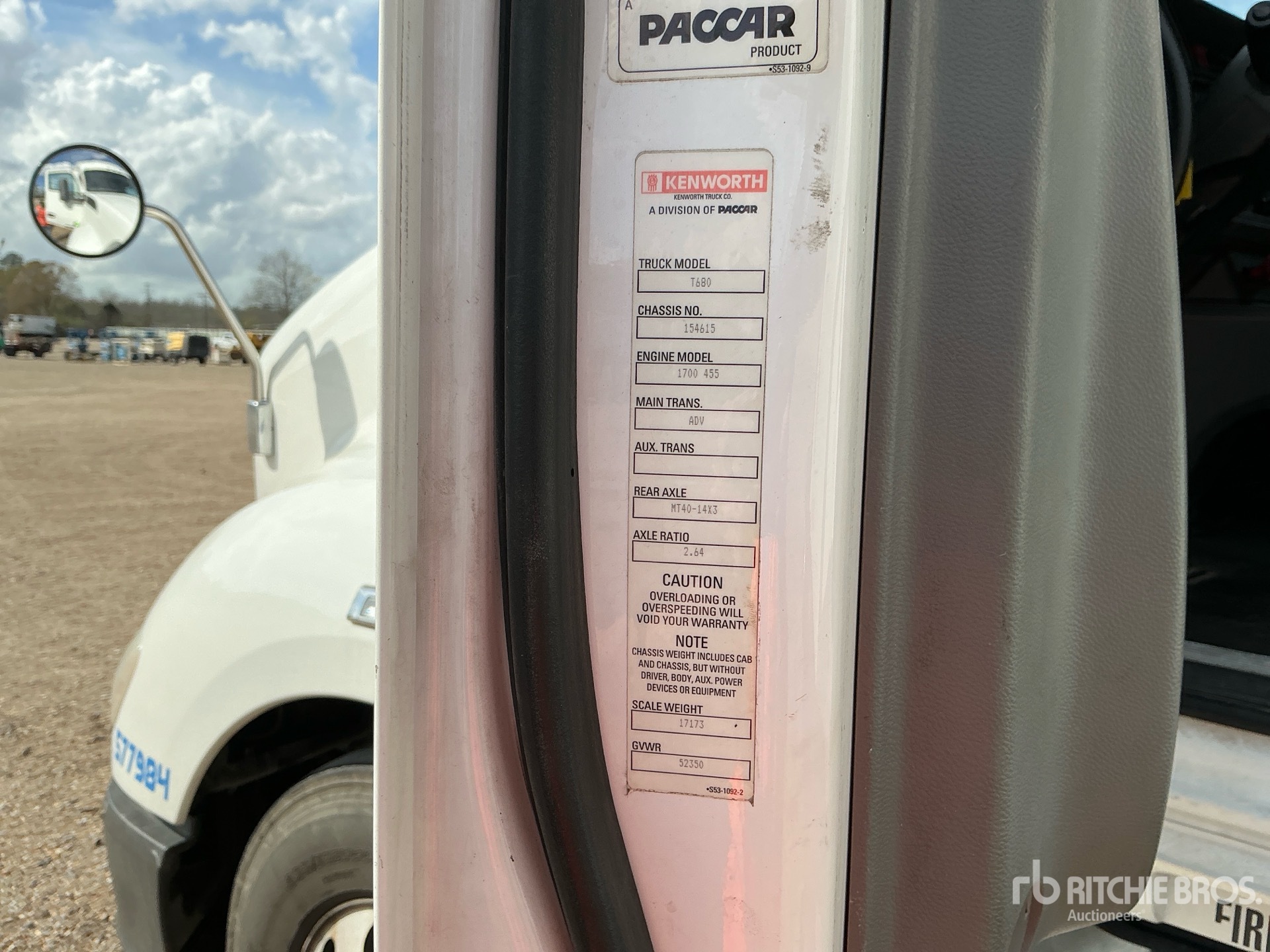 Paccar MX-13 455 kW Engine, 2016 US EPA Label, 20930.2 Engine hrs, 12350 lb Front Axle, 40000 lb Rears, 52350 lb GVWR, 62 in High Rise Sleeper Cab, Auxiliary Power Unit, 234 in Wheelbase, Air Suspension, Aluminum Wheels, 295/75R22.5 Front Tires, 275/80R22.5 Rear Tires, Air Sliding 5th Wheel, Dual Fuel Tanks