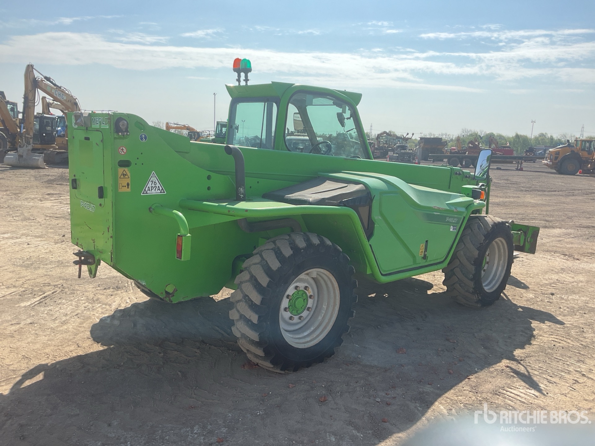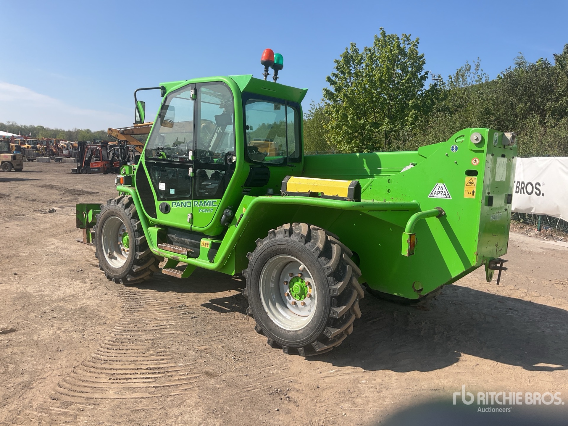 Enclosed Cab, Rear View Camera, Load Moment Indicator, 17 m Max Lift Height, 4000 kg Max Lift Capacity, 2017 US EPA Label, 1200 mm Forks, Manual Coupler, Outriggers, Auxiliary Hydraulic Plumbing, 405/70-24 Tires