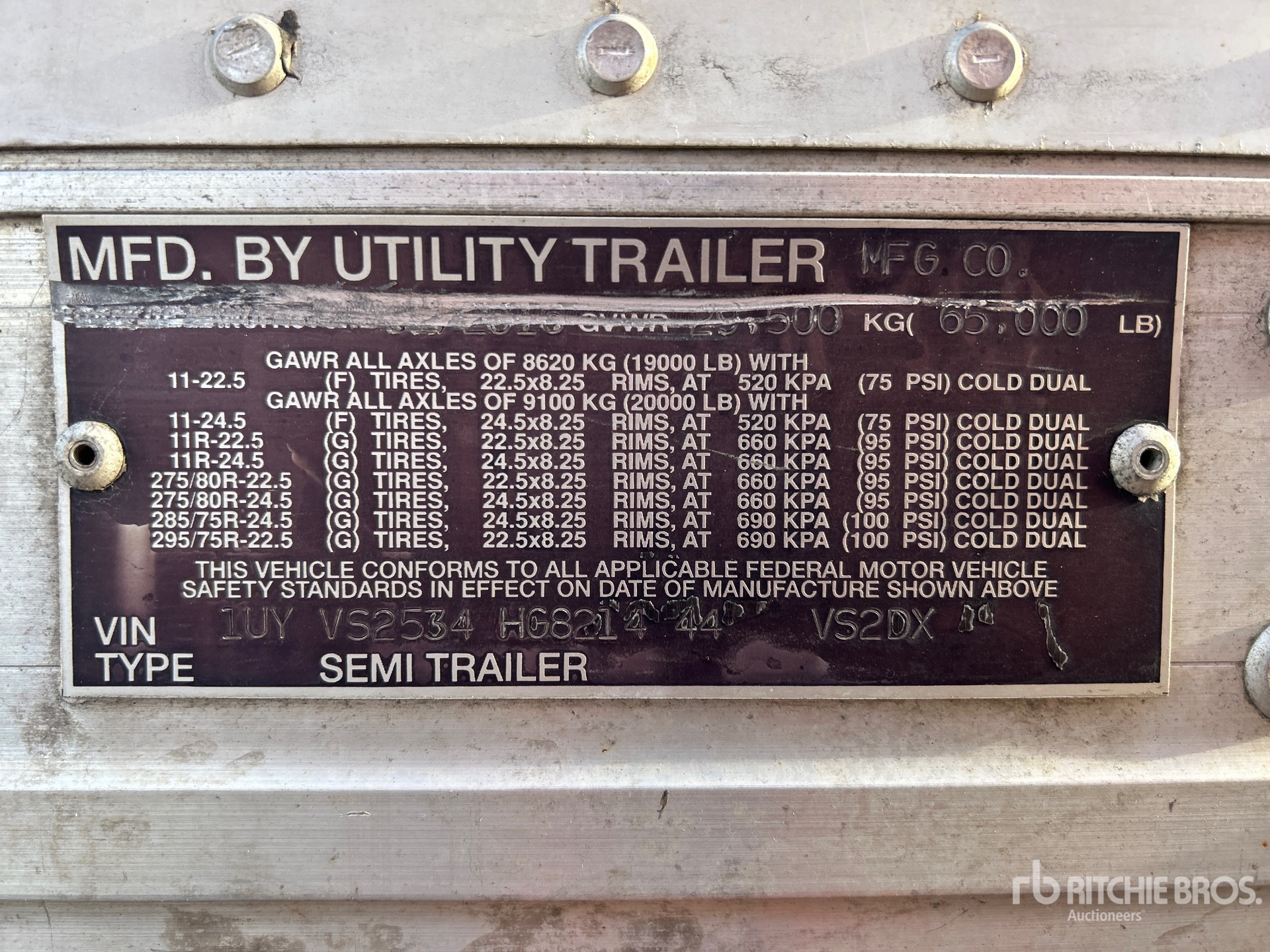 Air Ride Sliding Suspension, Side Skirts, Hardwood Floor, Swing Door, 11R22.5 Tires, 65000 lb GVWR
