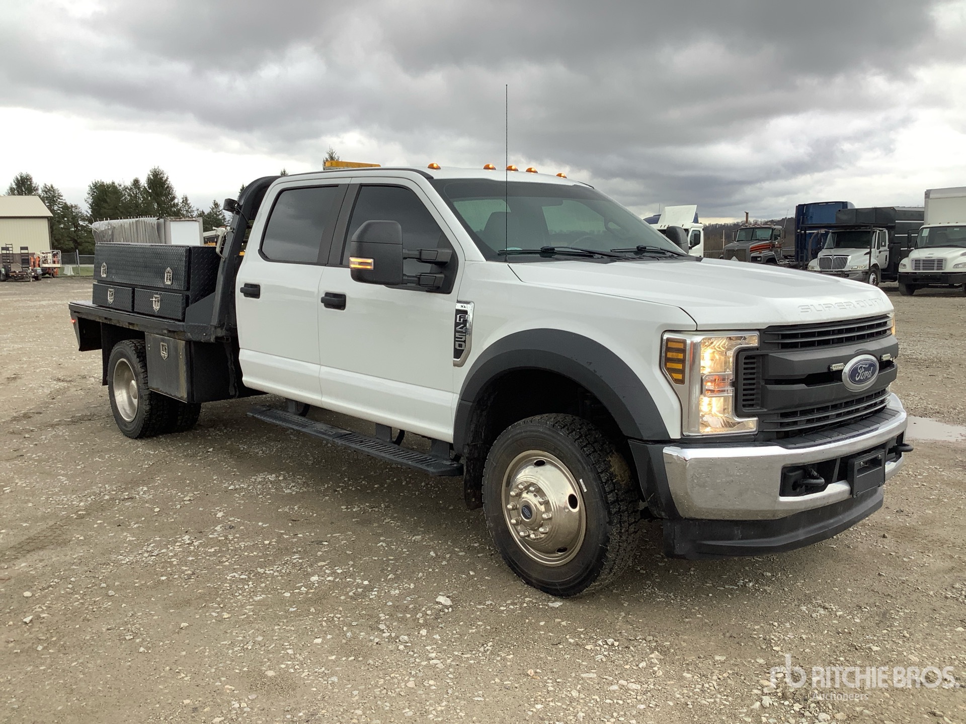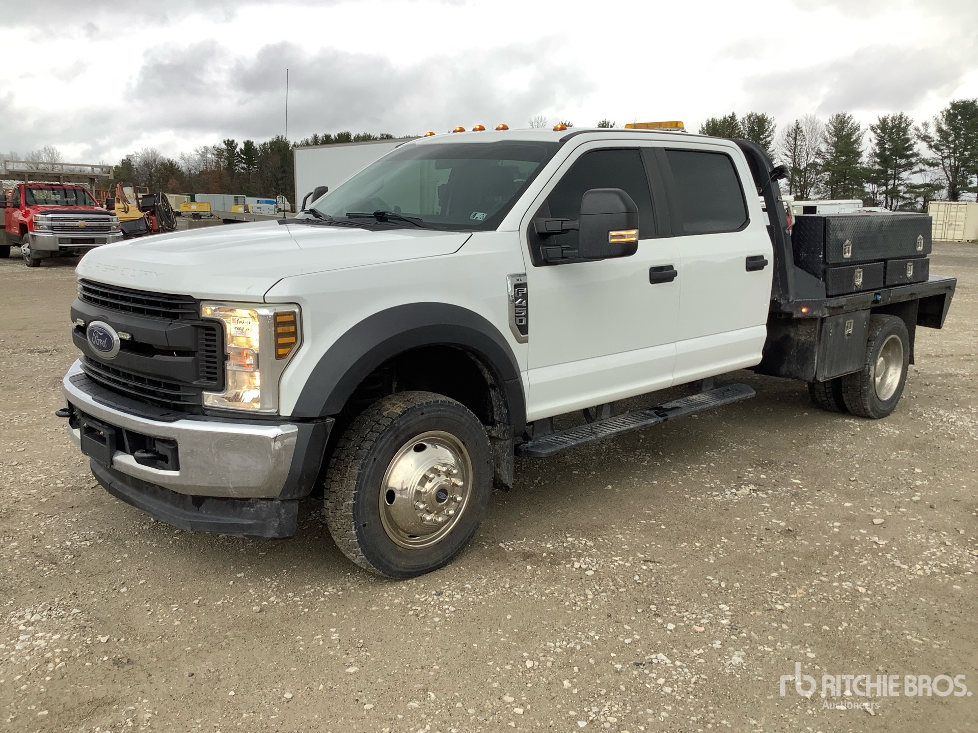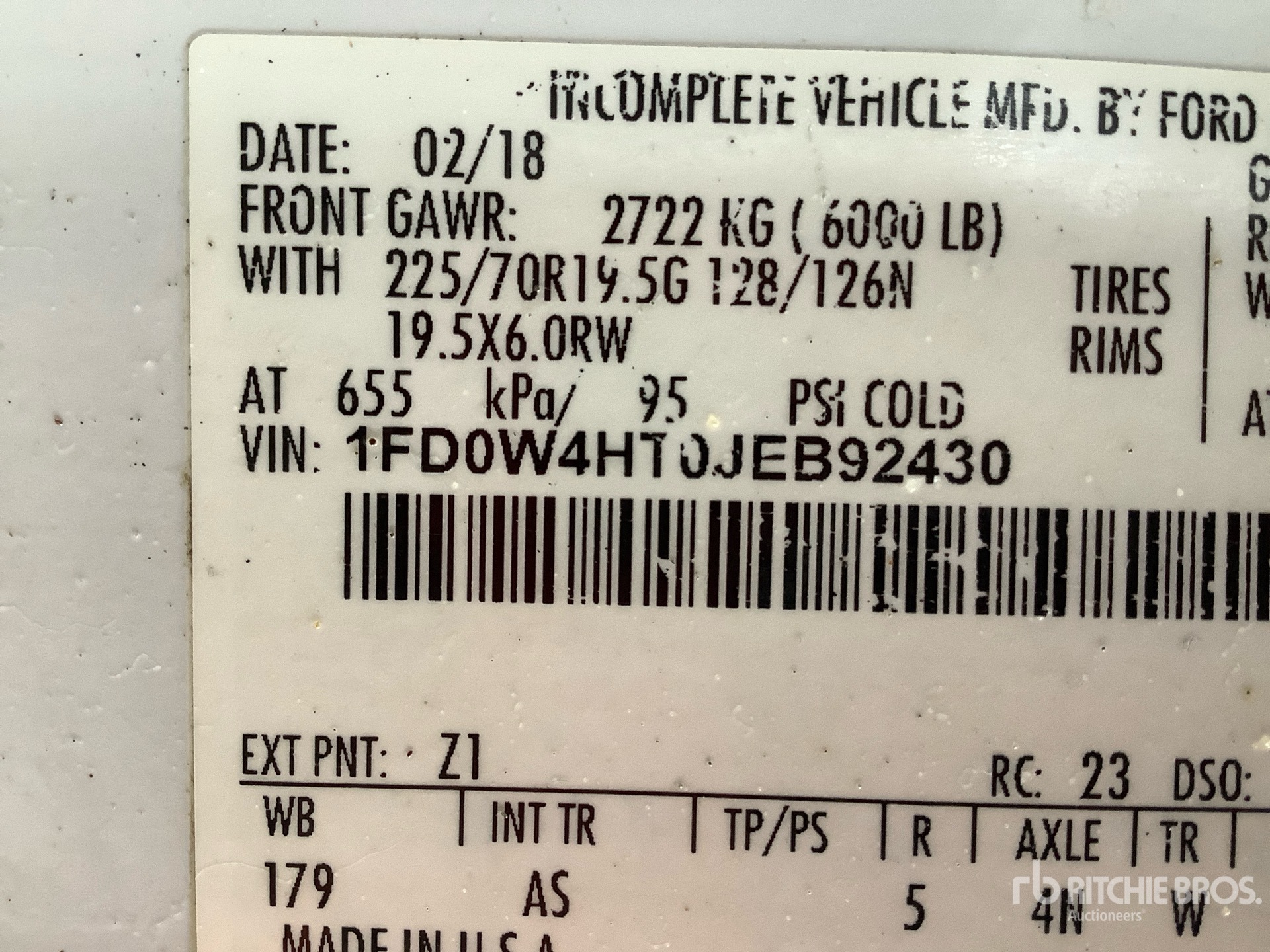Ford Powerstroke V8 6.7 L Diesel 330 hp Engine, 2018 US EPA Label, CARB Compliant, Requires Diesel Exhaust Fluid, 8899 Engine hrs, 6-Speed Automatic Transmission, 6000 lb Front Axle, 12880 lb Rears, 16500 lb GVWR, 225/70R19.5, Spring Suspension, 179 in Wheelbase, 9 ft 5 in x 96 in Bed
