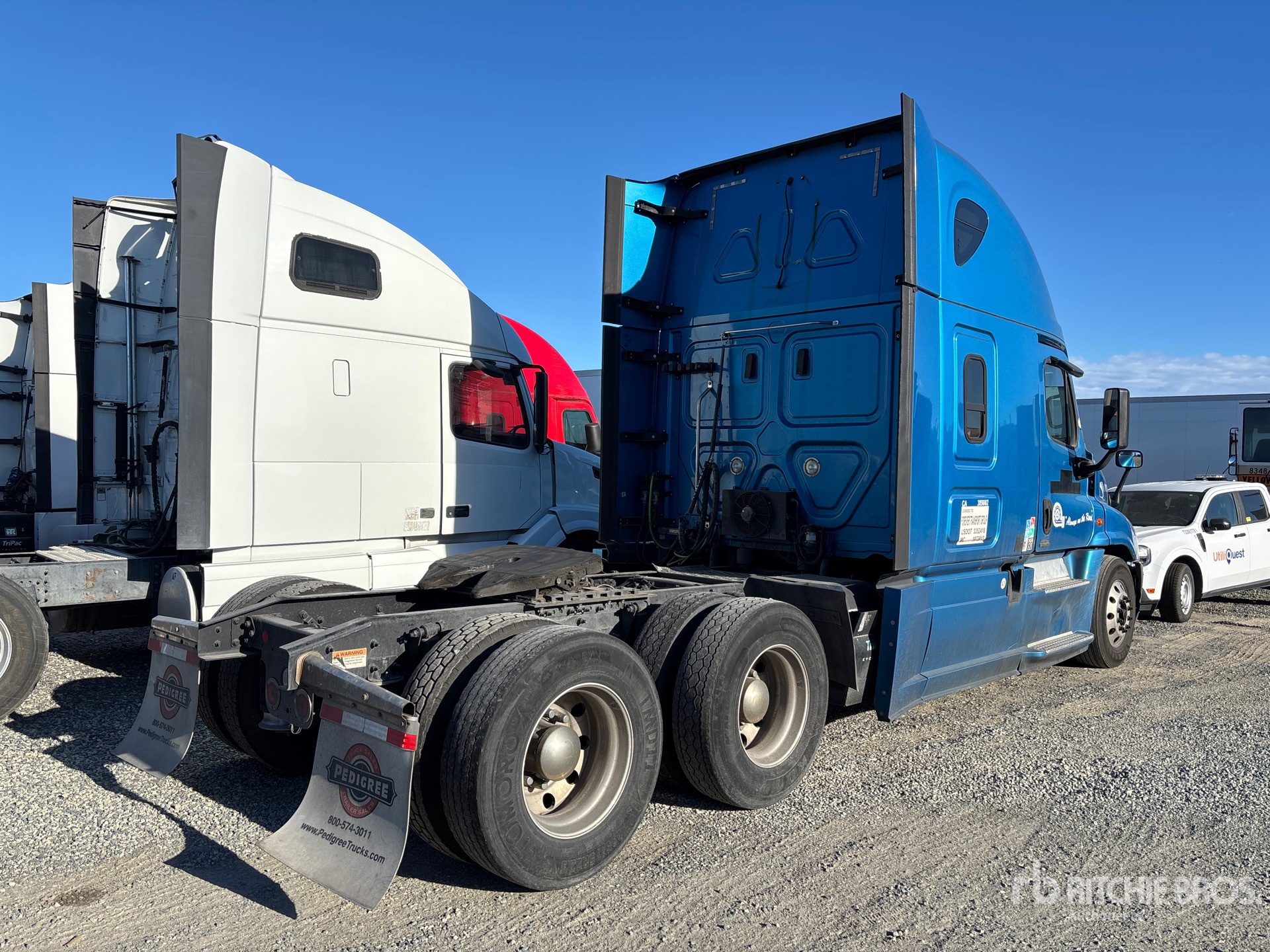 Detroit DD15 400 hp Engine, Detroit DT12-DA-1750-HD 12-Speed Automated Transmission, 12000 lb Front Axle, 40000 lb Rears, 52000 lb GVWR, Engine Brake, 70 in High Rise Sleeper Cab, Bunk Beds, Auxiliary Power Unit, 230 in Wheelbase, Air Suspension, Aluminum Wheels, 295/75R22.5, Air Sliding 5th Wheel, Dual Fuel Tanks