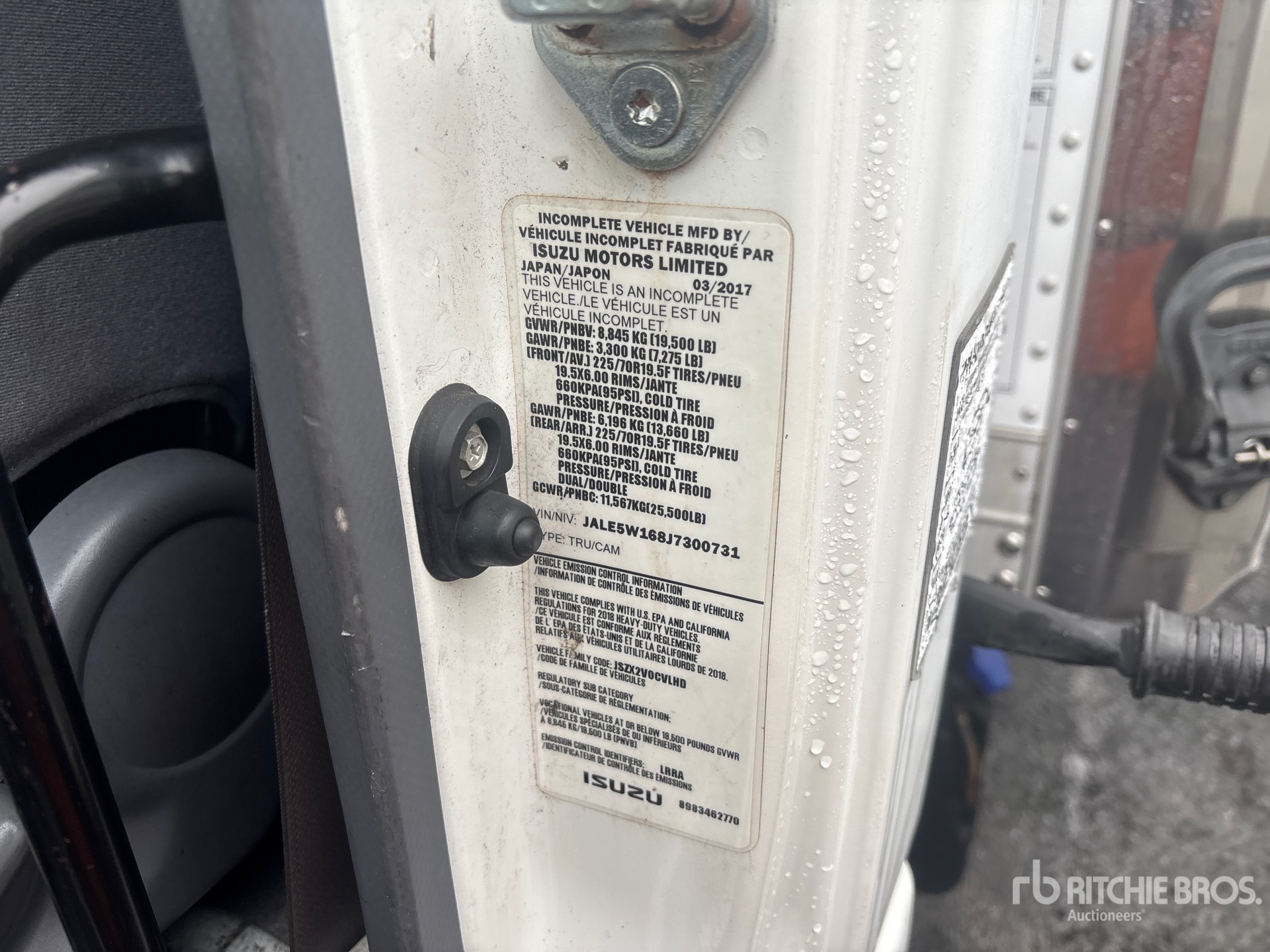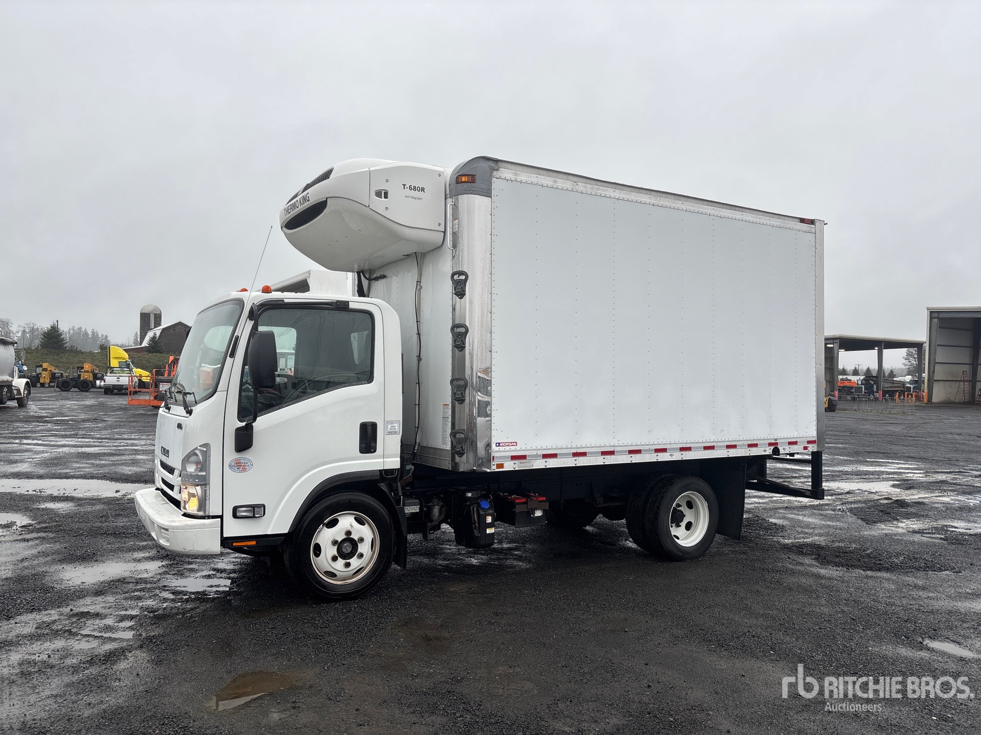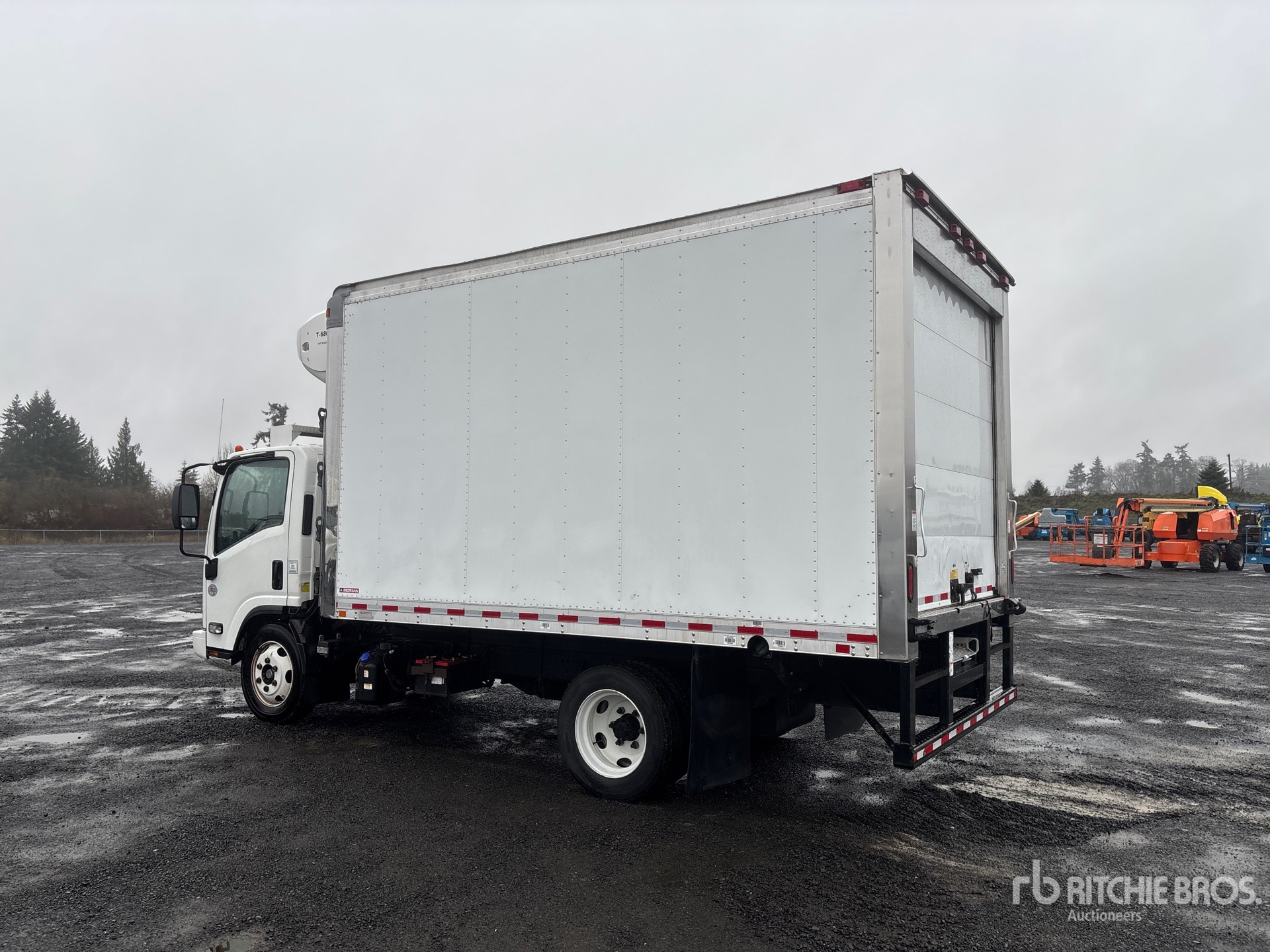 Isuzu 4HK1TC 6 Cylinder 5.23 L Diesel 210 hp Engine, 2017 US EPA Label, Requires Diesel Exhaust Fluid, Automatic Transmission, 7275 lb Front Axle, 13660 lb Rears, 19500 lb GVWR, 225/70R19.5, Spring Suspension, 149 in Wheelbase, Thermo King T-680R Reefer Unit, 5244 Reefer Engine Hours:, 5244 Reefer Total Hours:, Morgan 14 ft x 96 in Wide x 91 in High Body, Walk-Up Ramp