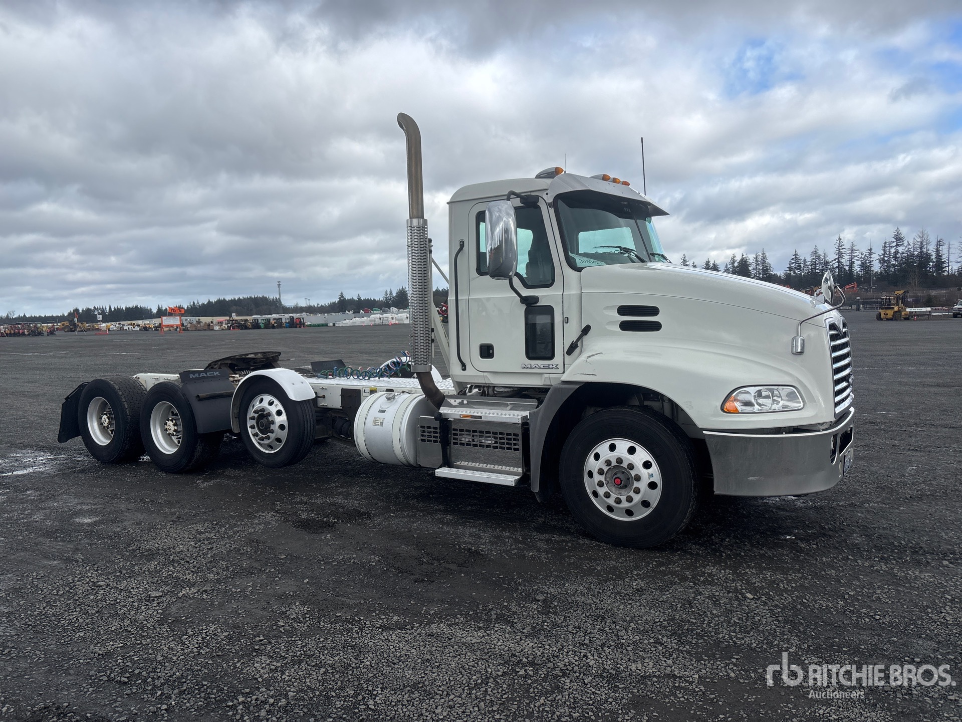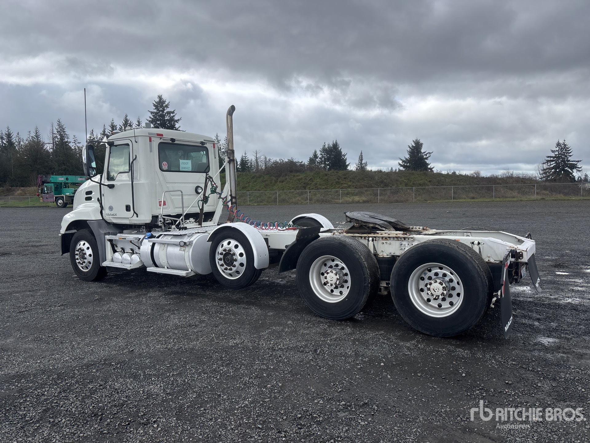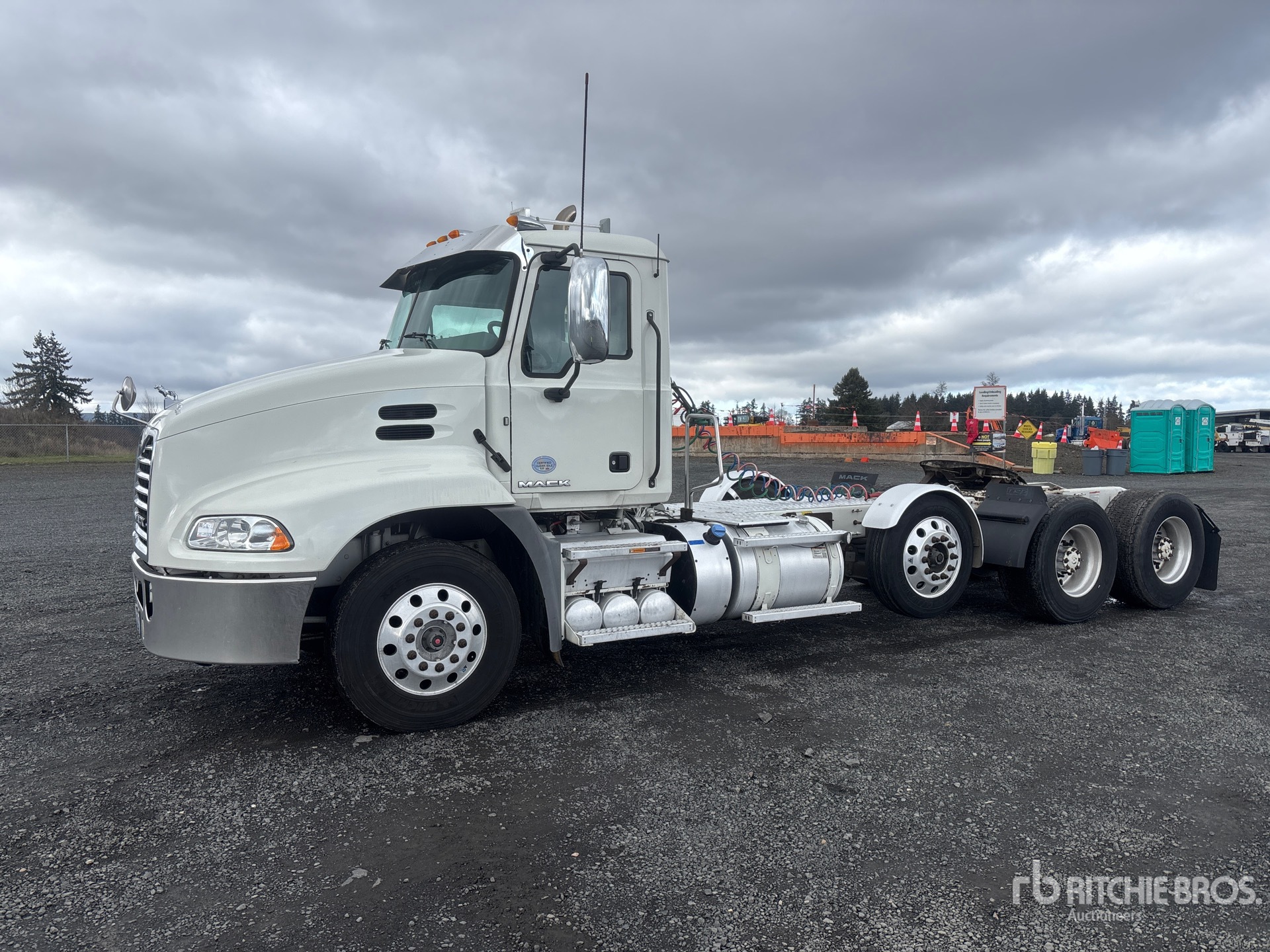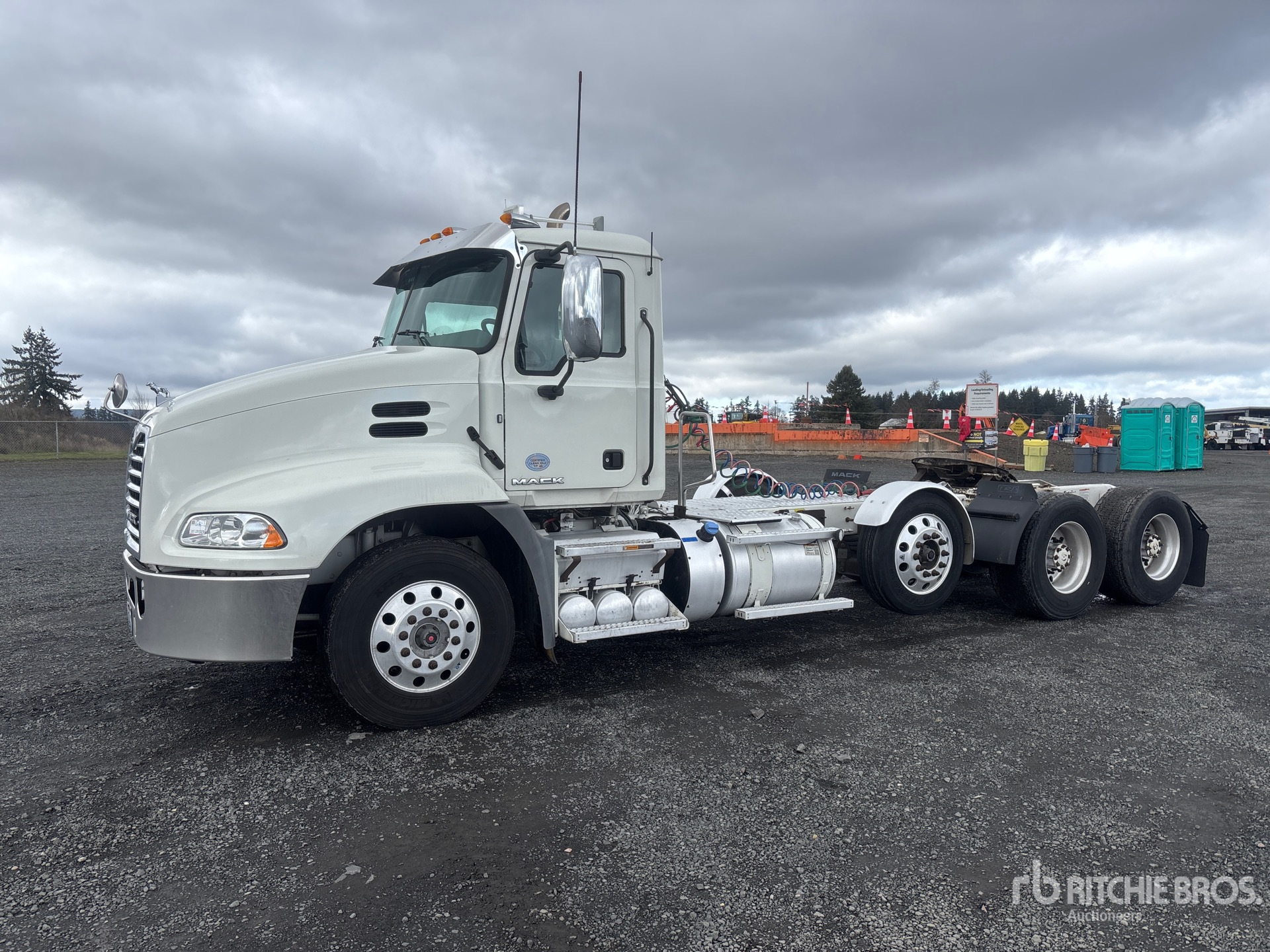 Mack MP8 445 hp Engine, 2017 US EPA Label, Automatic Transmission, 12000 lb Front Axle, 40000 lb Rears, 240 in Wheelbase, Air Suspension, Air Lift Pusher Axle, Aluminum Wheels, 11R22.5 Front Tires, 455/55R22.5 Super Singles Rear Tires, Air Sliding 5th Wheel, Auto Lube