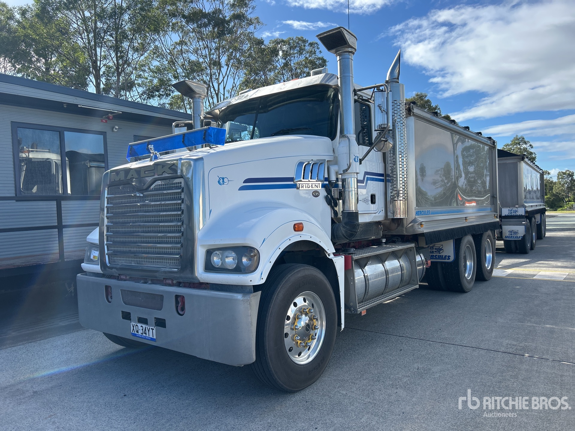 Mack 535 hp Engine, Mack Automatic Transmission, 295/80R22.5 Front Tires, 11R22.5 Rear Tires, Air Ride Suspension, Hercules Aluminium Body, Electric Roll Tarp, Ringfeder, GVM 27.6 t